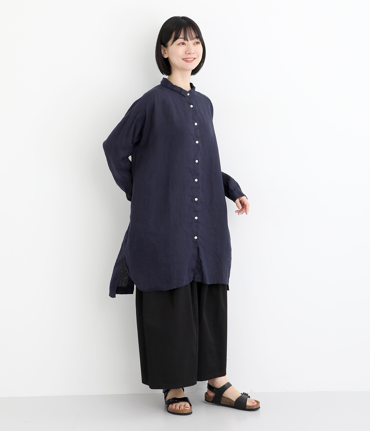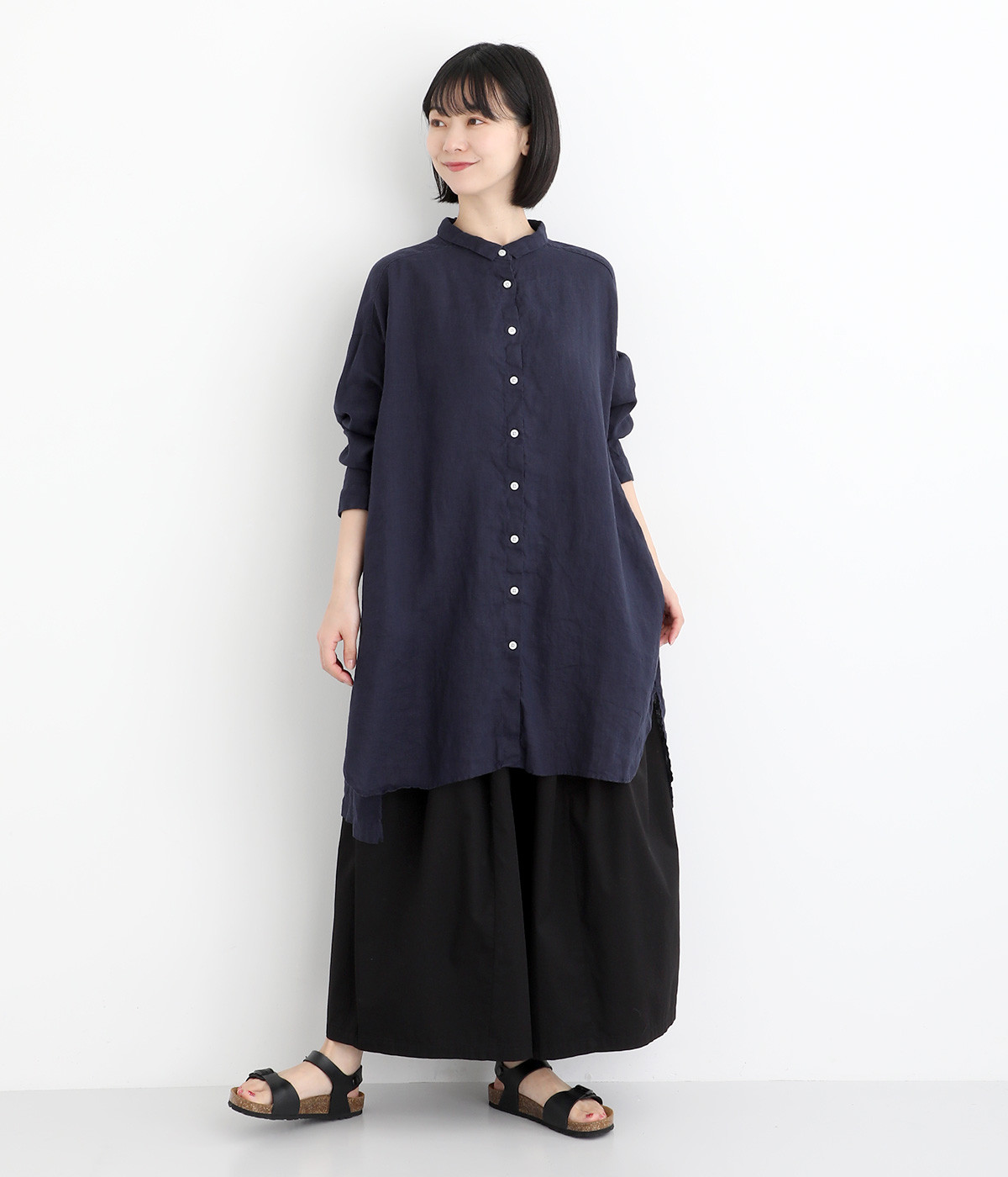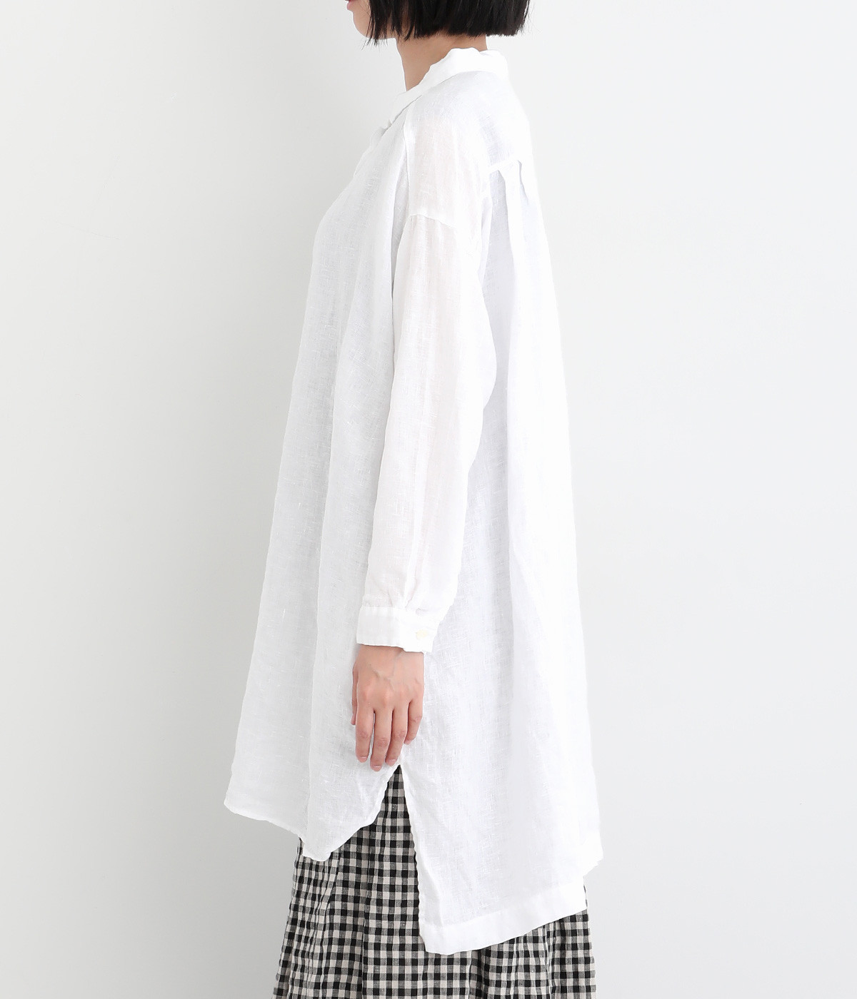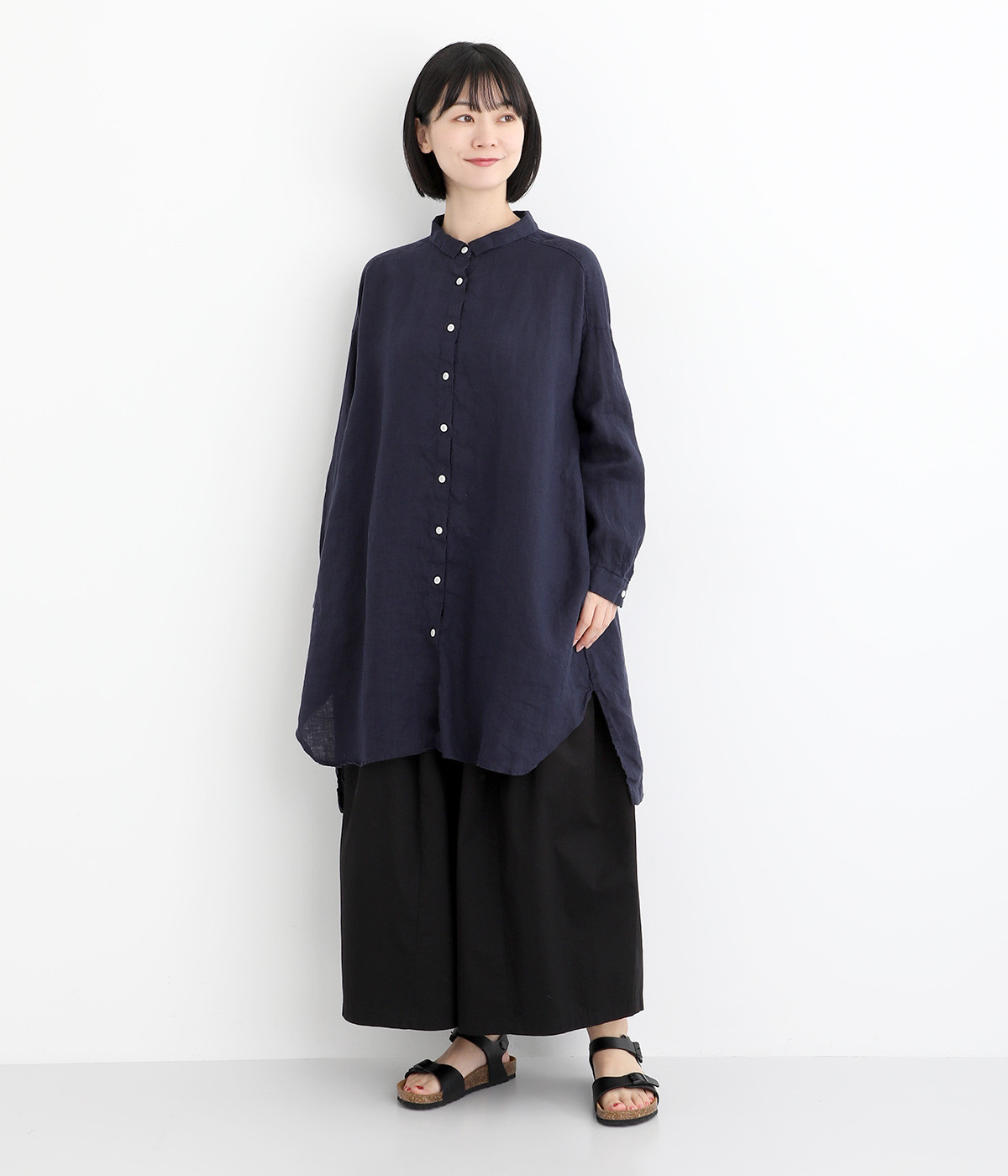 ゆったりとした着心地がうれしい、ワイドシルエットのチュニックシャツです。前後差のある着丈が、こなれた印象を与えてくれます。長袖なので日よけ対策にもおすすめ。ボタンをあけて羽織ってもサマになり、インナー次第で長く着まわすことができます。
