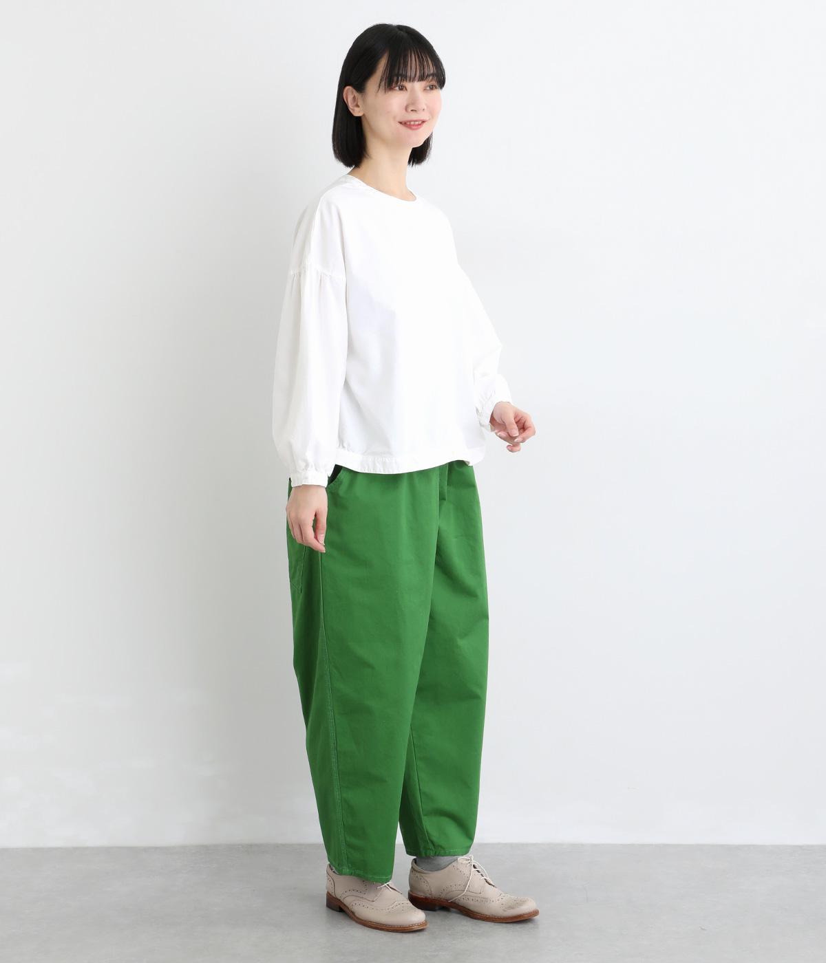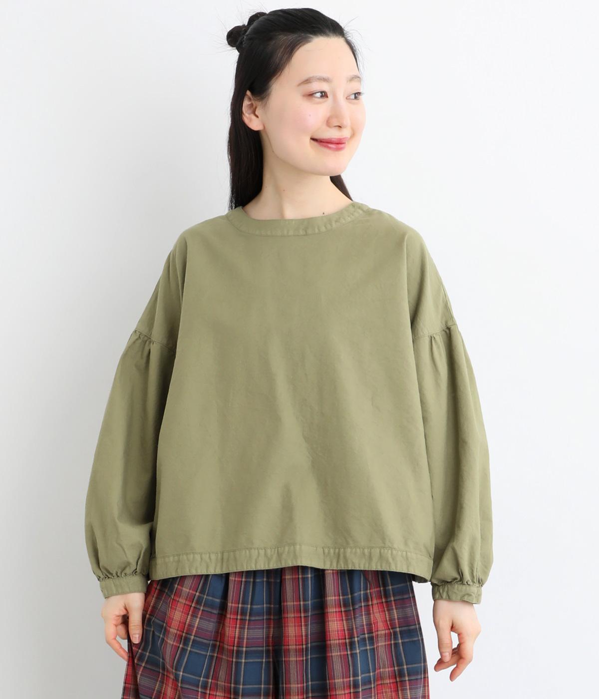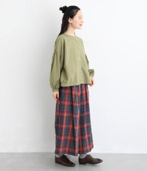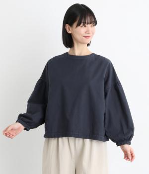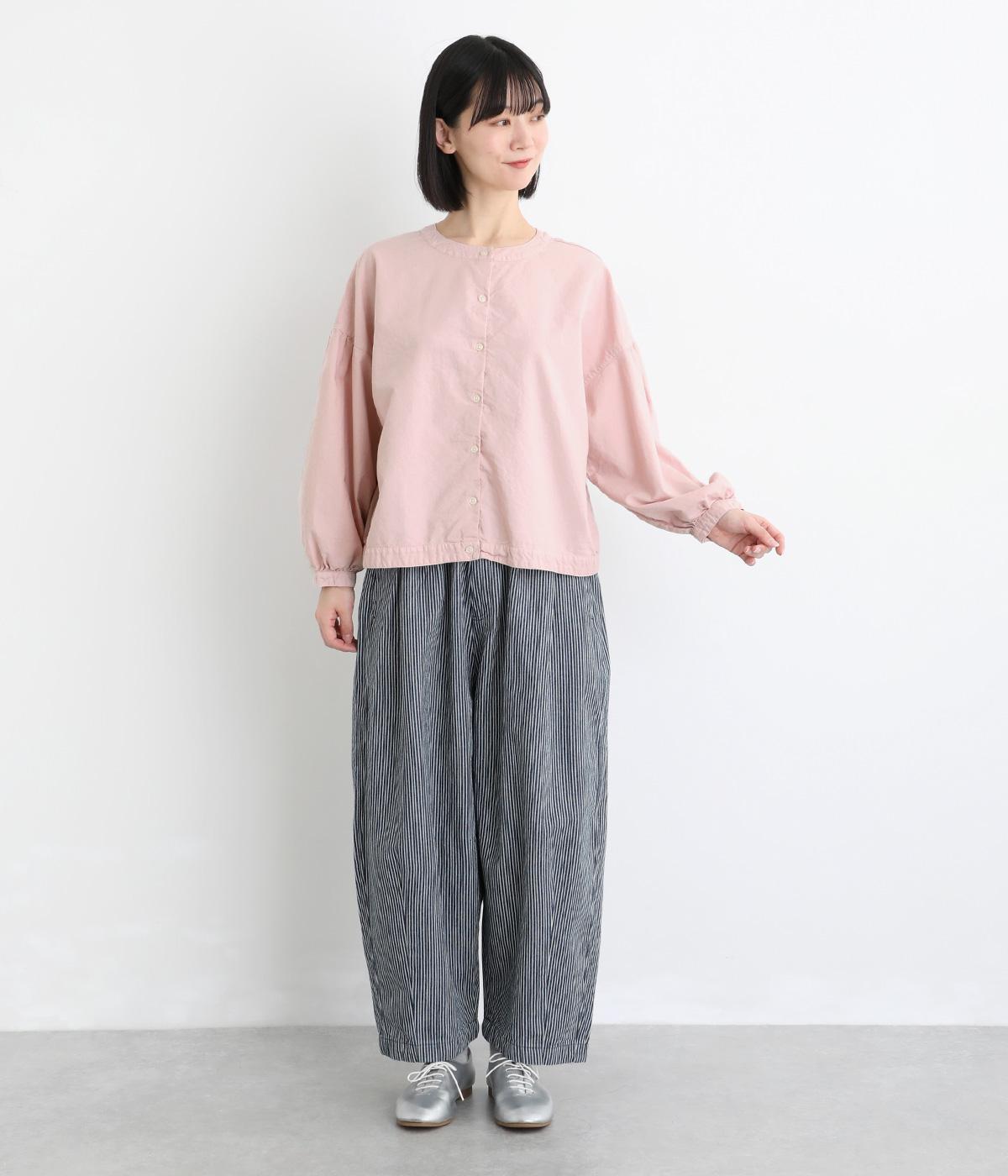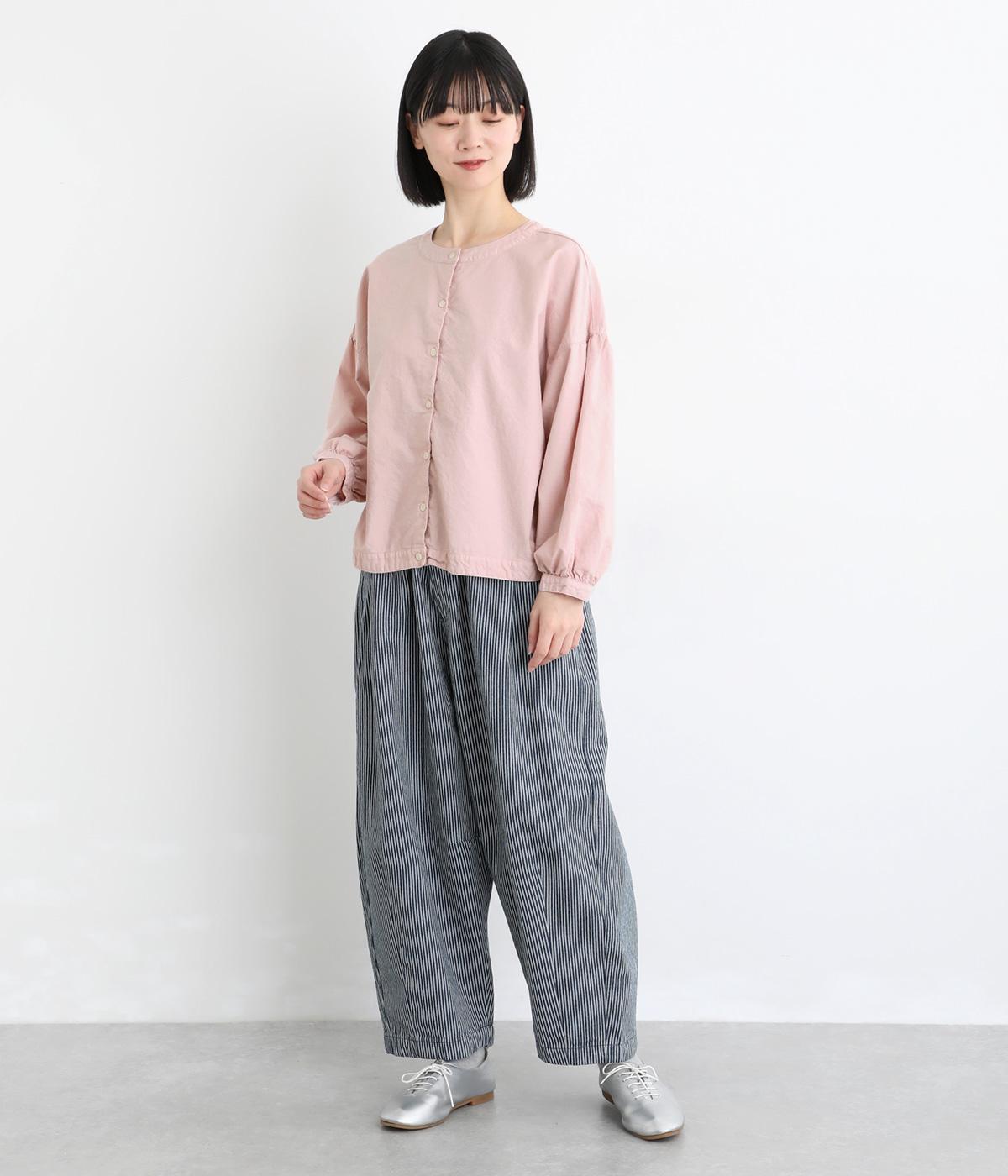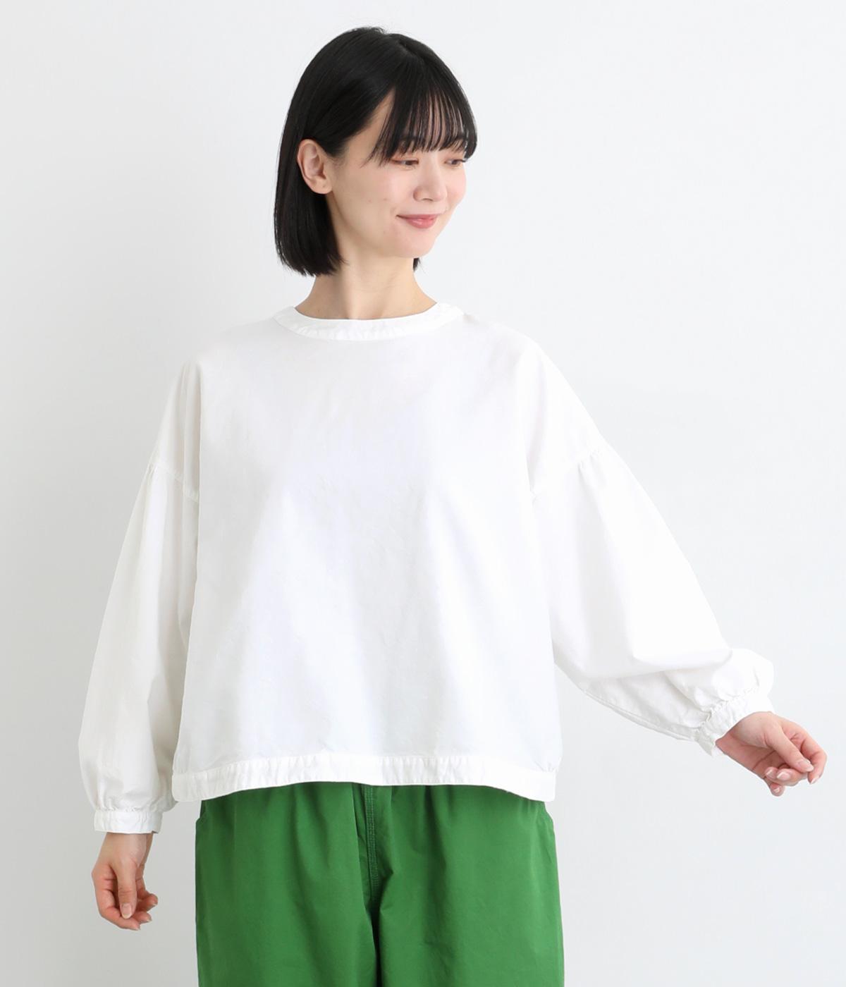 前後2way仕様で、雰囲気の異なる着こなしがたのしめるブラウスです。ボタンを前にすれば縦のラインをきかせた端正な印象に、うしろにすればすっきりと着こなせます。ドロップショルダーとゆとりある身幅で、リラックス感のある着心地。ボリューム袖とサイドギャザーが裾へ丸く広がり、やわらかなシルエットを描きます。