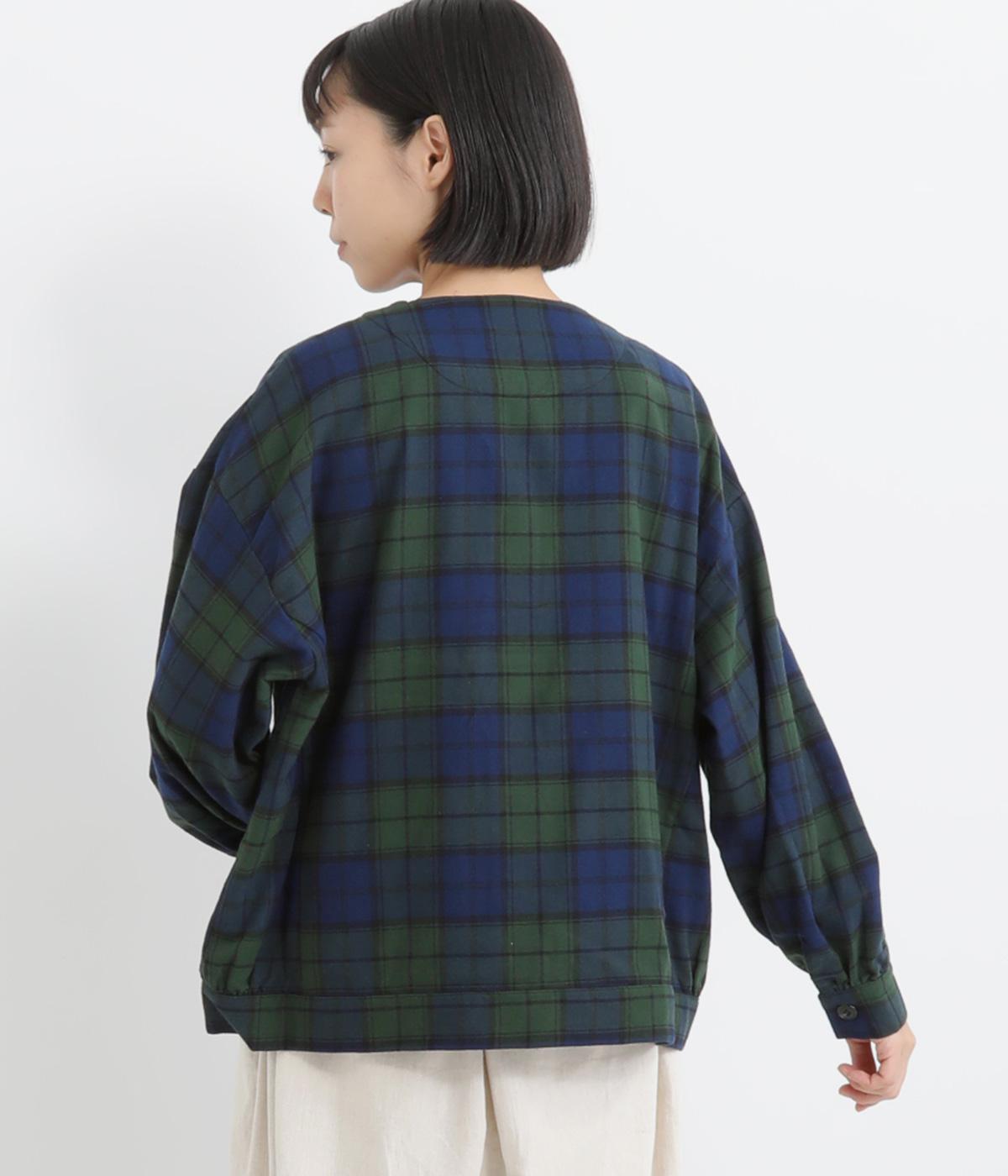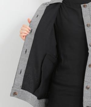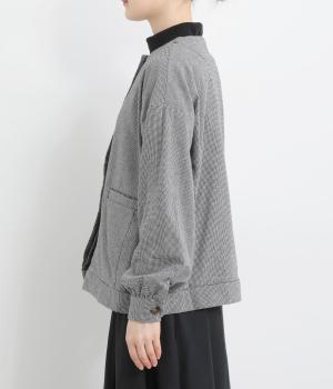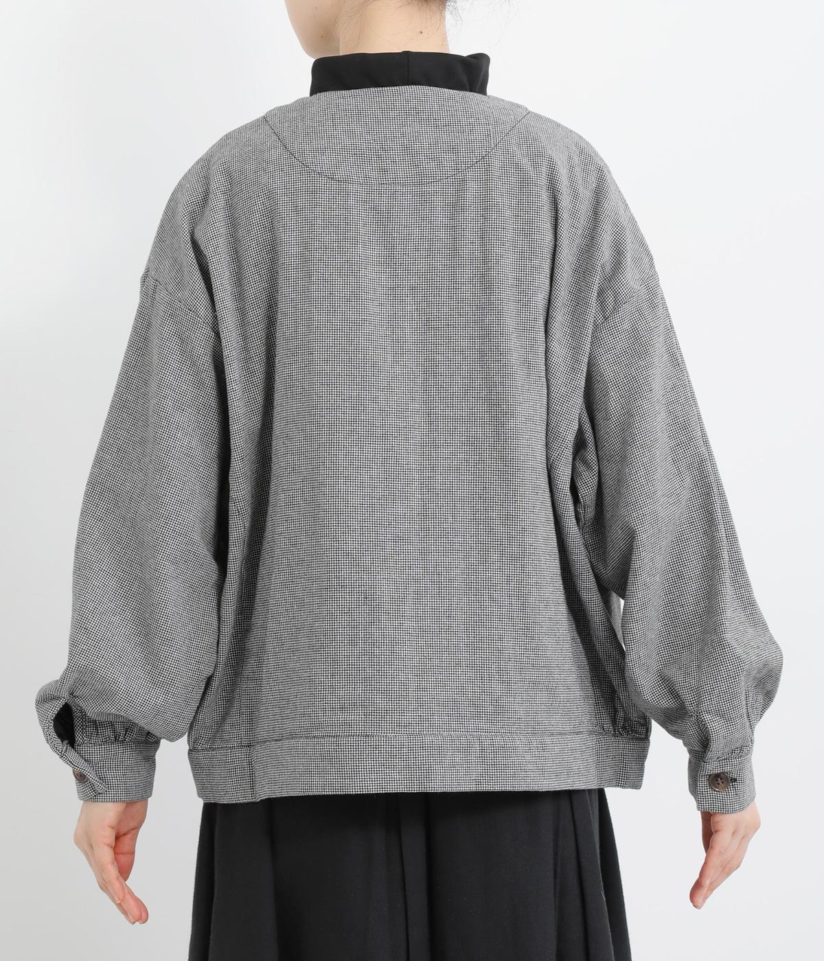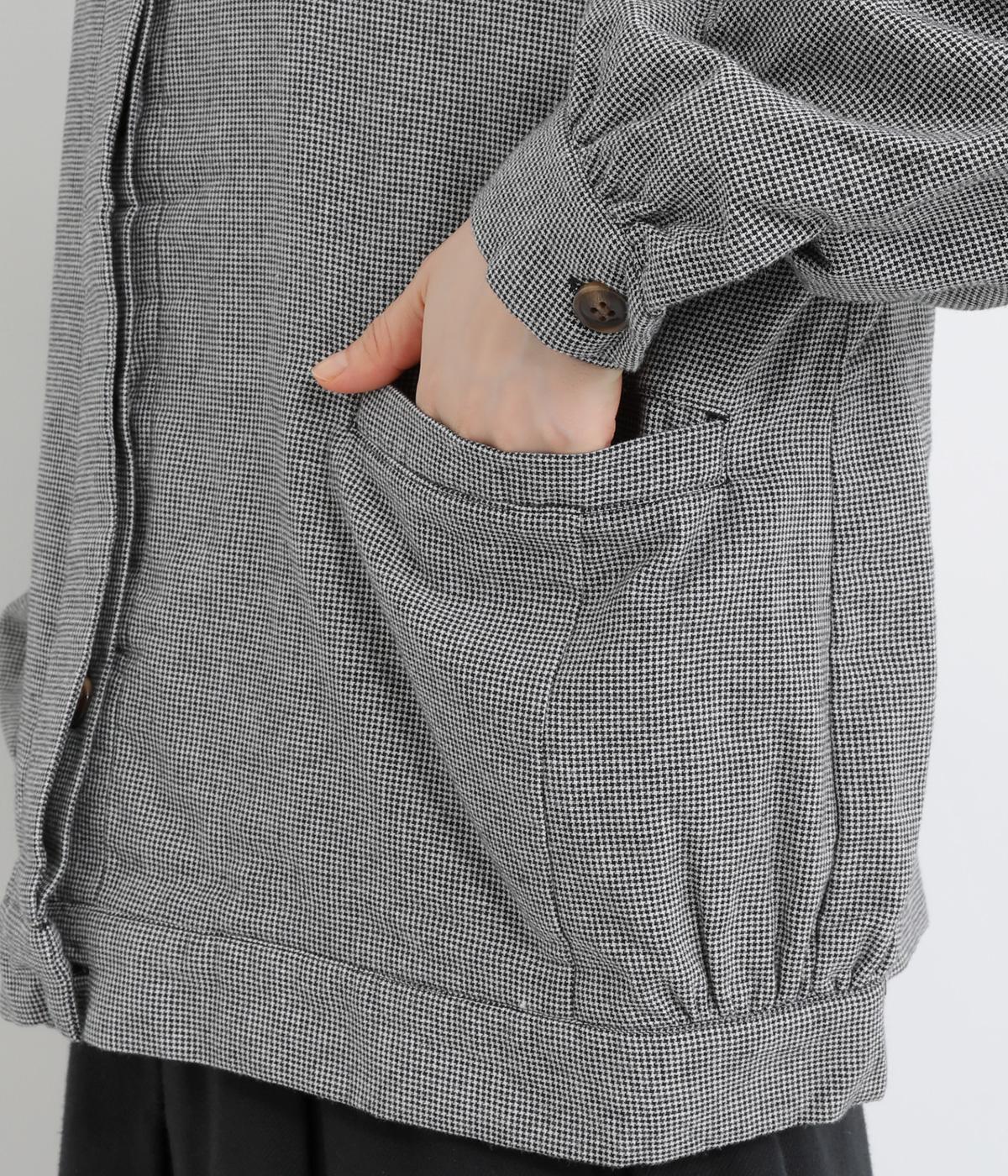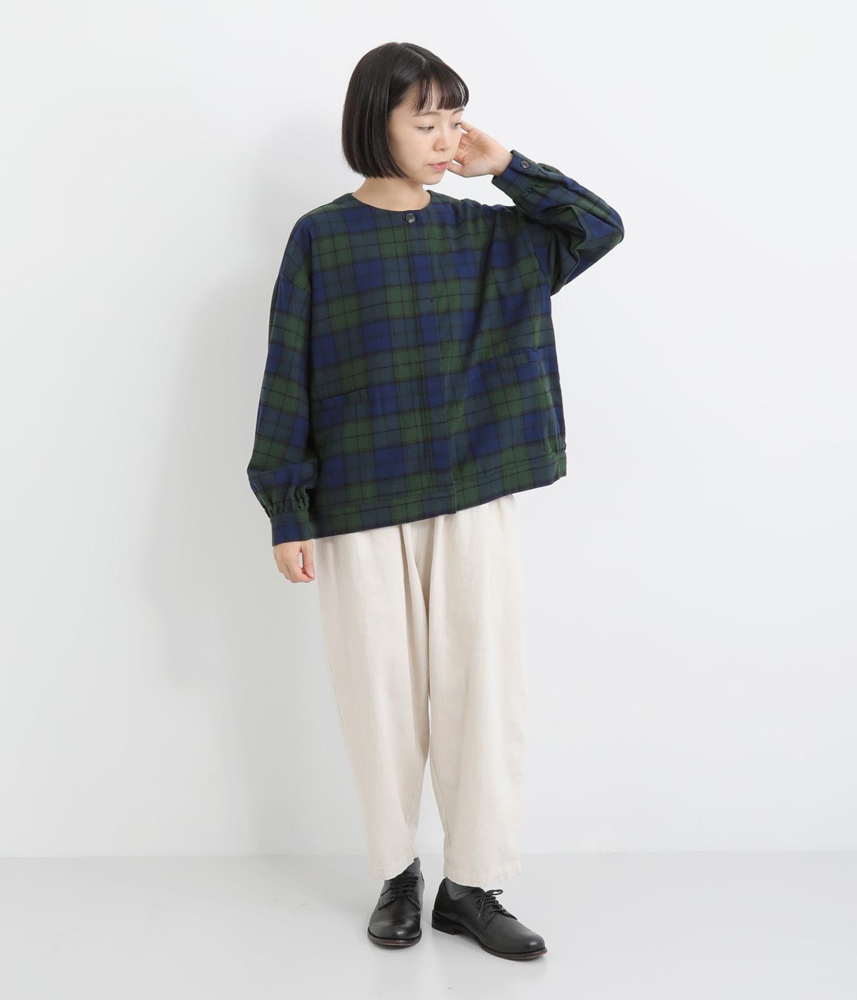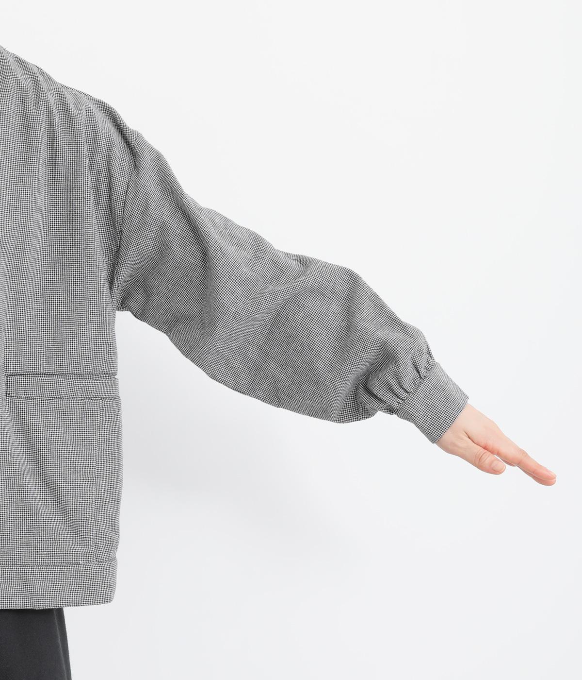 シンプルな美しさとゆとりのあるシルエットが魅力。しっかりとした裏地や、隠れボタンも付いているこだわりのディテールです。立体感があり、体型を選ばずカジュアルにもフォーマルにも着用できます。全体的にやわらかな印象のノーカラージャケットです。