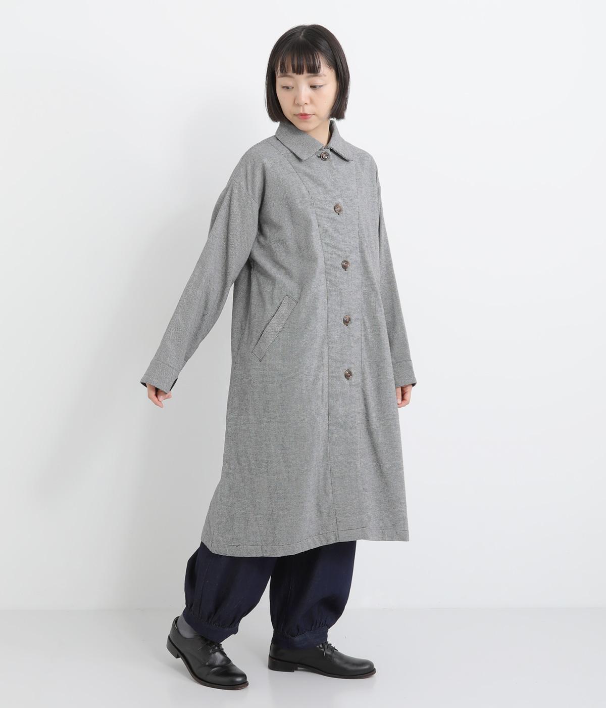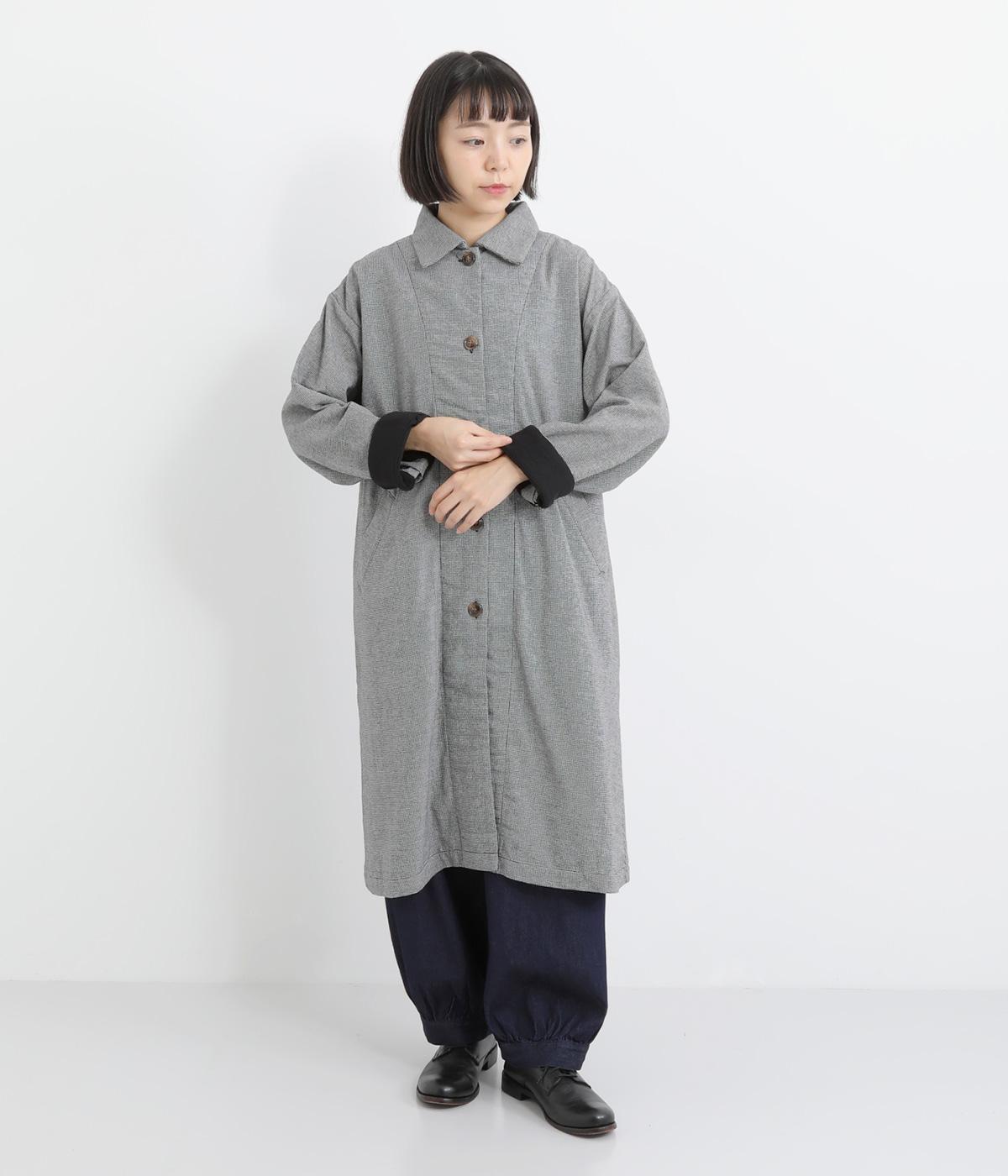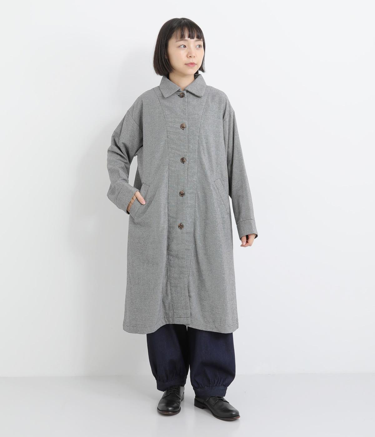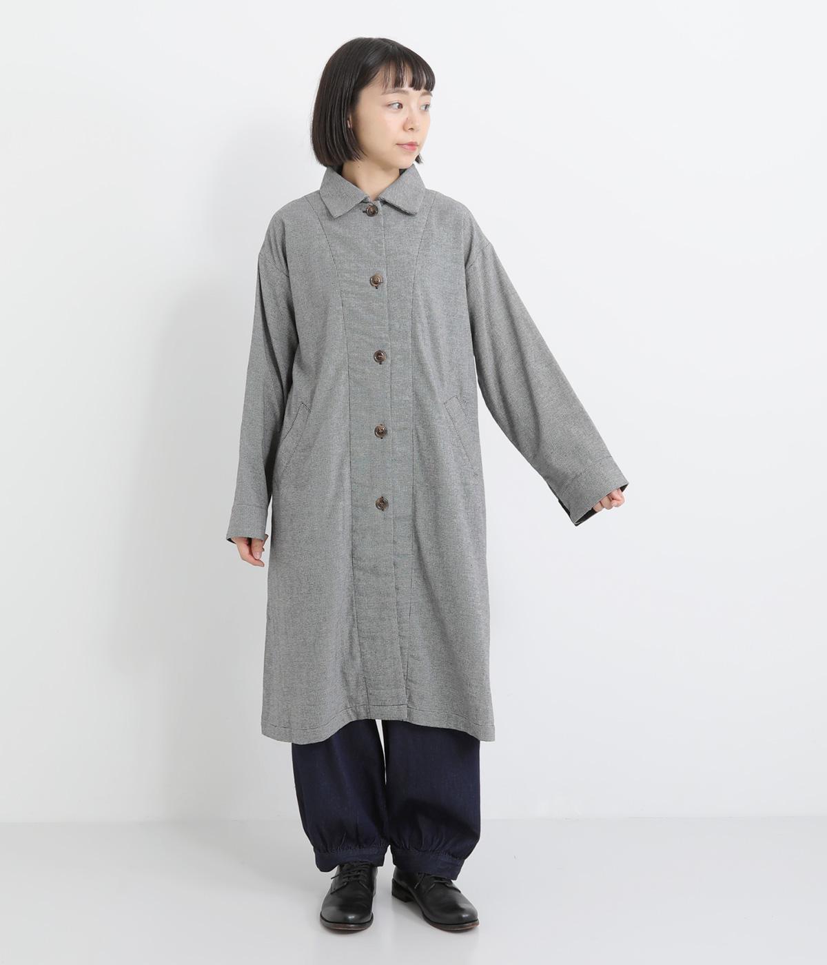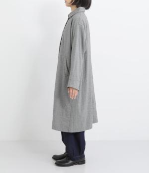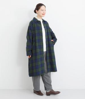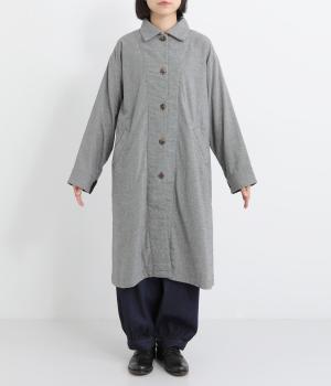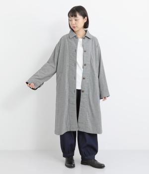Aラインのフォルムとやわらかさが印象的なロングコート。リラックスした雰囲気を持たせつつ、エレガントさも兼ね揃えたデザインです。コロンとした襟も全体的なバランスを美しく整えてくれます。袖口にはアクセントになるような裏地も付き、ロールアップでコーディネートの違いも楽しめます。