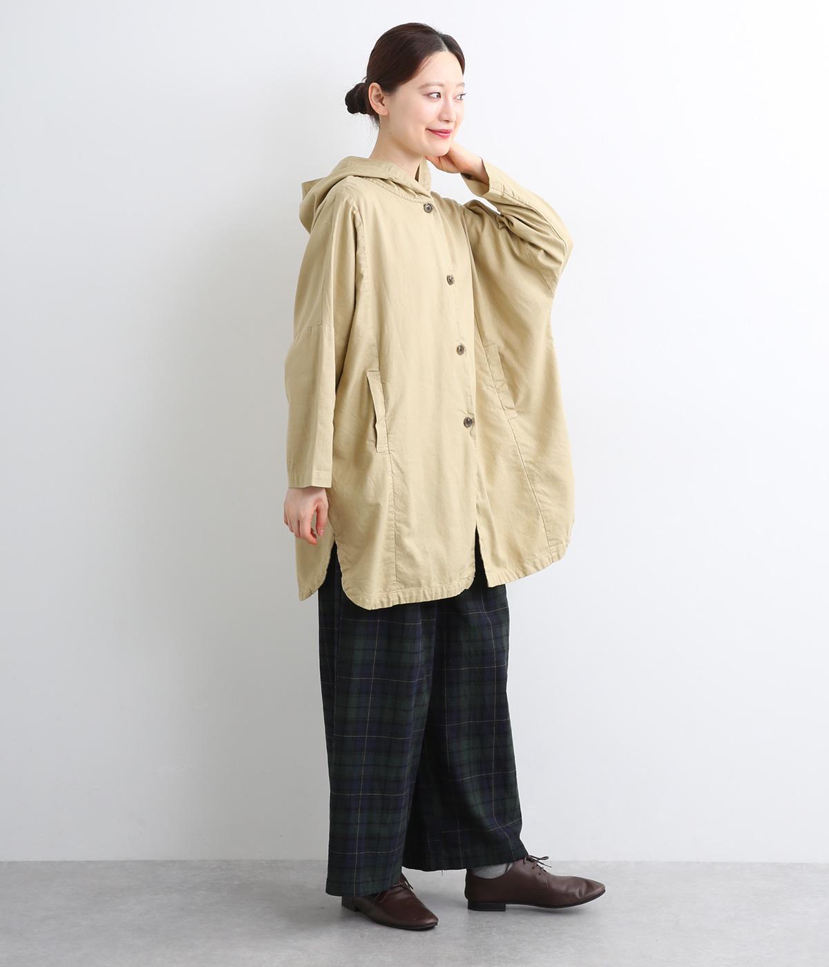 フード付きのポンチョ型コートです。ボタン開きにすることで脱ぎ着もイージーに、窮屈感のない着心地に。スリットを入れて丸みをつけた裾で動きやすさとかわいらしさをプラスしました。サッと羽織るだけでコーディネートがきまります。