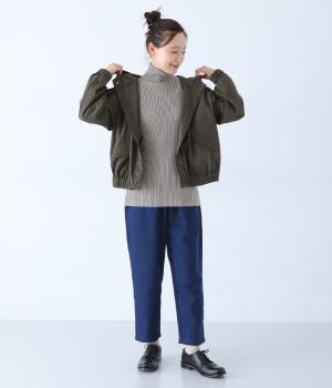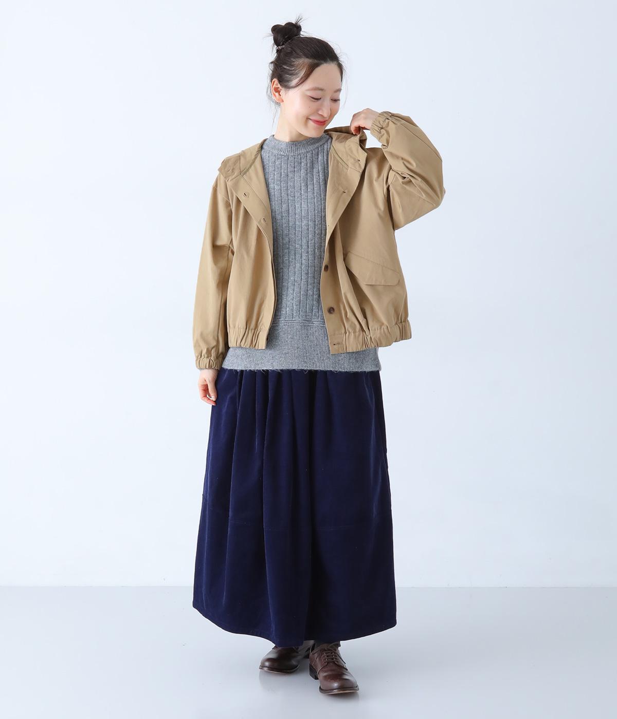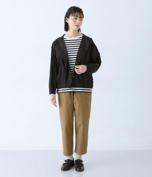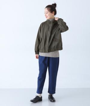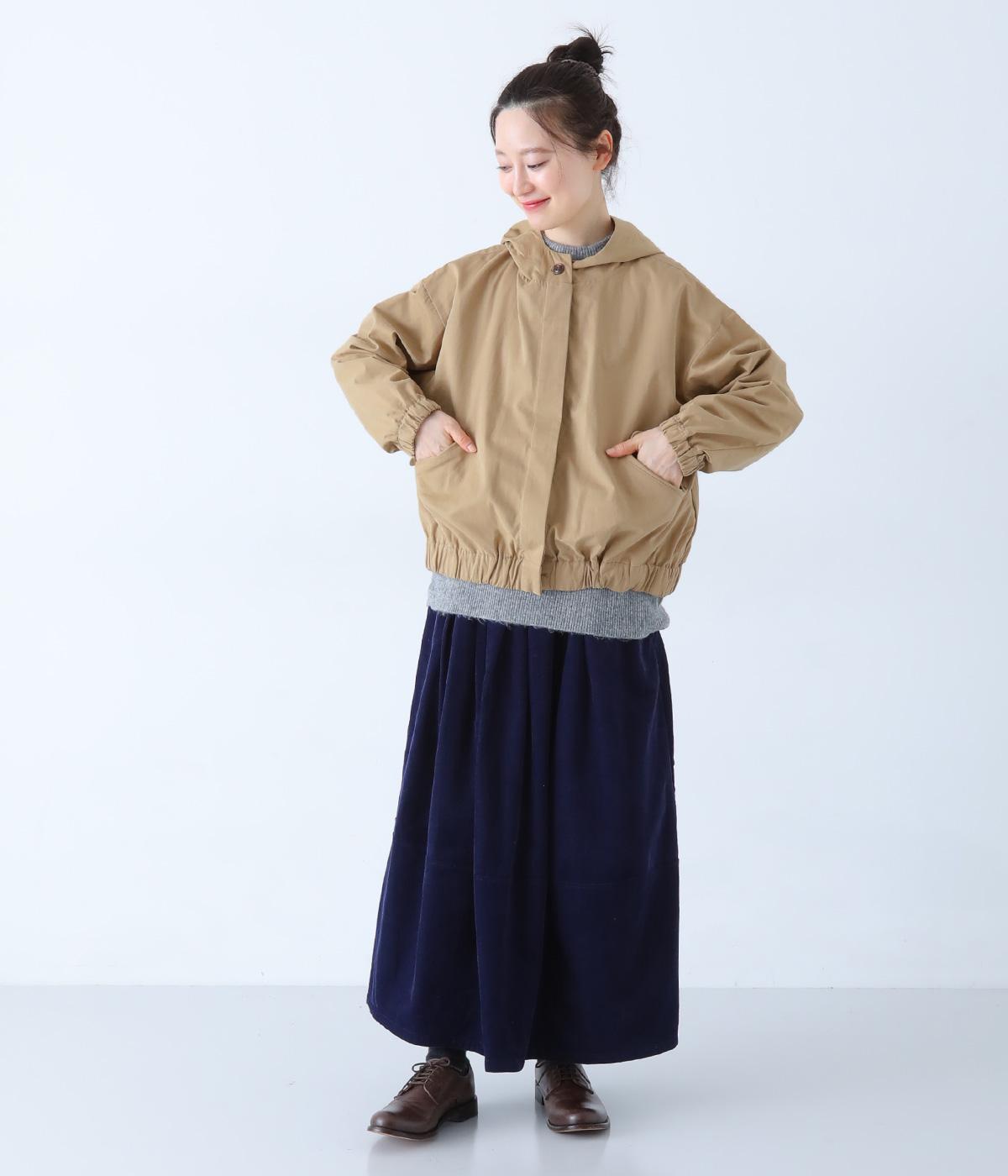 ピーチ起毛素材で品の良さを添えた大人らしいフードジャケット。袖口と裾にはゴムを通してゆとりのあるシルエットを引き締めています。フロントボタンは比翼仕立てでカジュアルさを軽減。着丈はコンパクトに設定し、さまざまな装いにバランスよく合わせやすくしました。