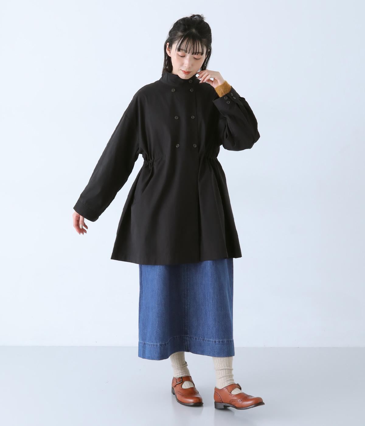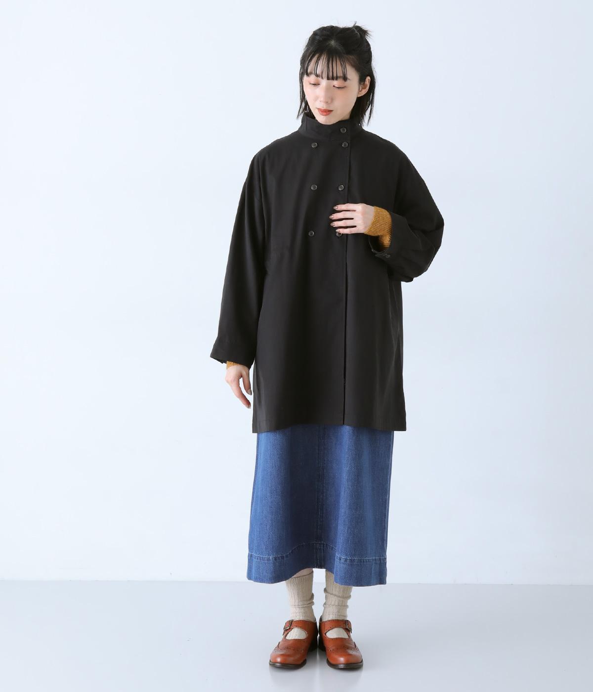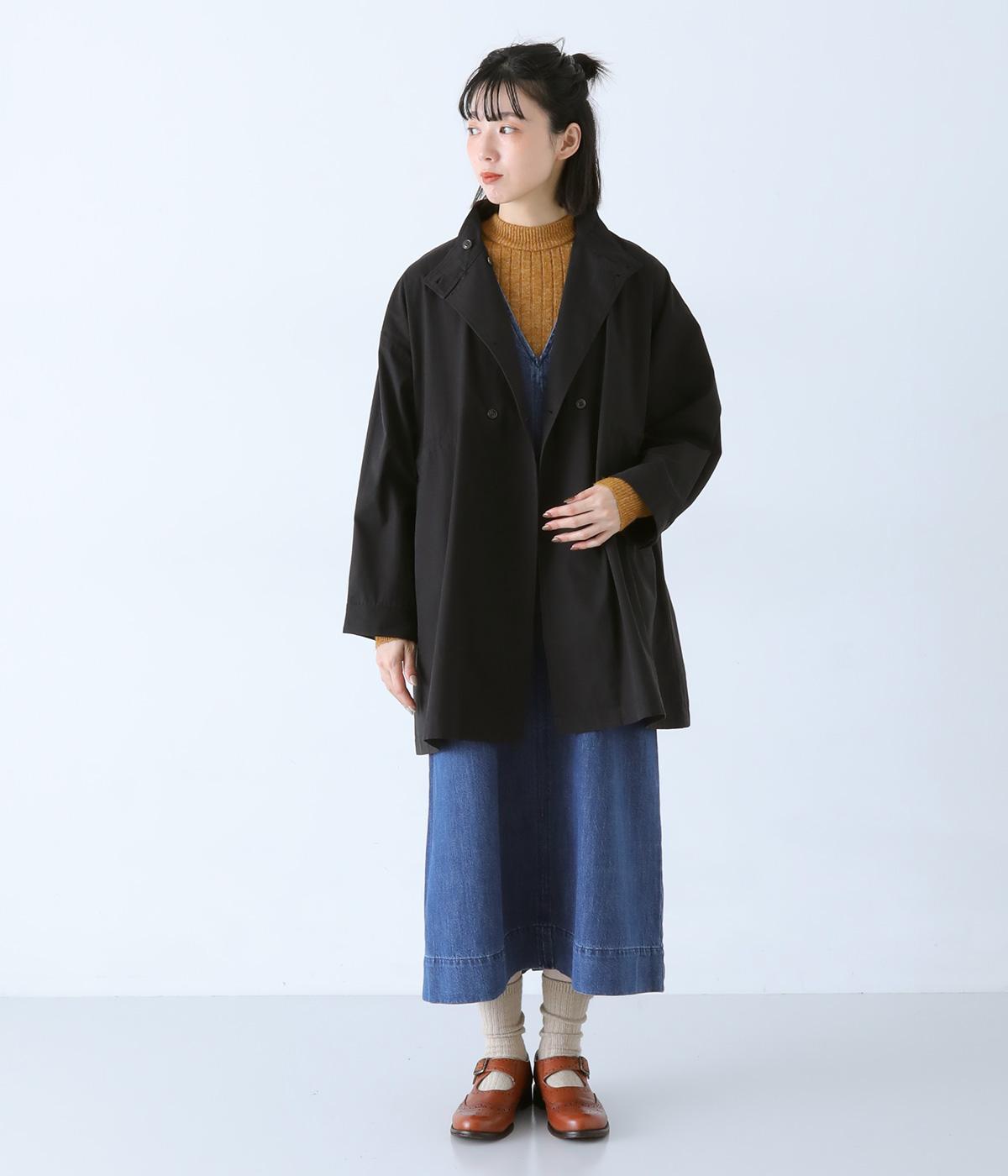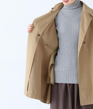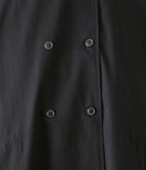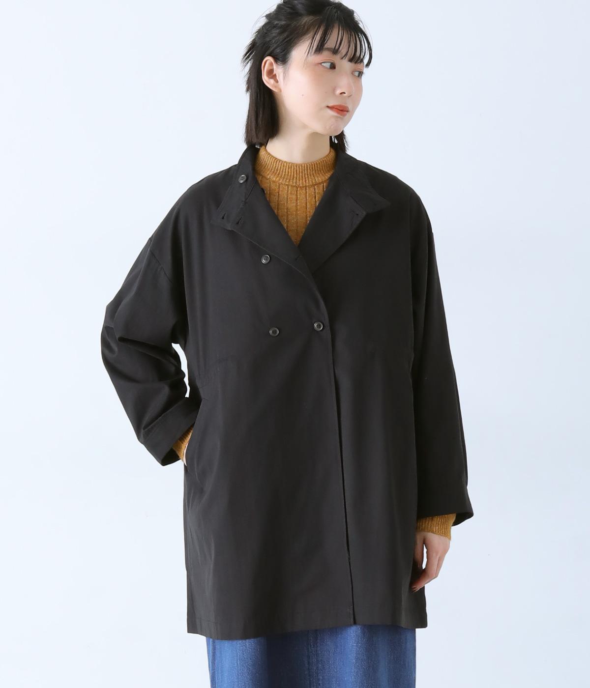 ダブルボタンとスタンドカラーがクラシカルな印象を与えるハーフコート。ウエスト内側に通した紐をきゅっと絞ればシルエットをすっきりとアレンジ可能です。襟部分は開けるとテーラード風に着こなせるのもグッド。袖口カフスのボタンやタック使いなど、細かなディテールにもこだわりが光ります。