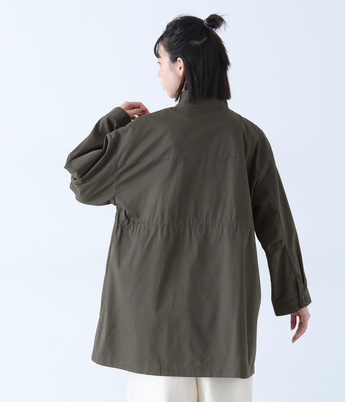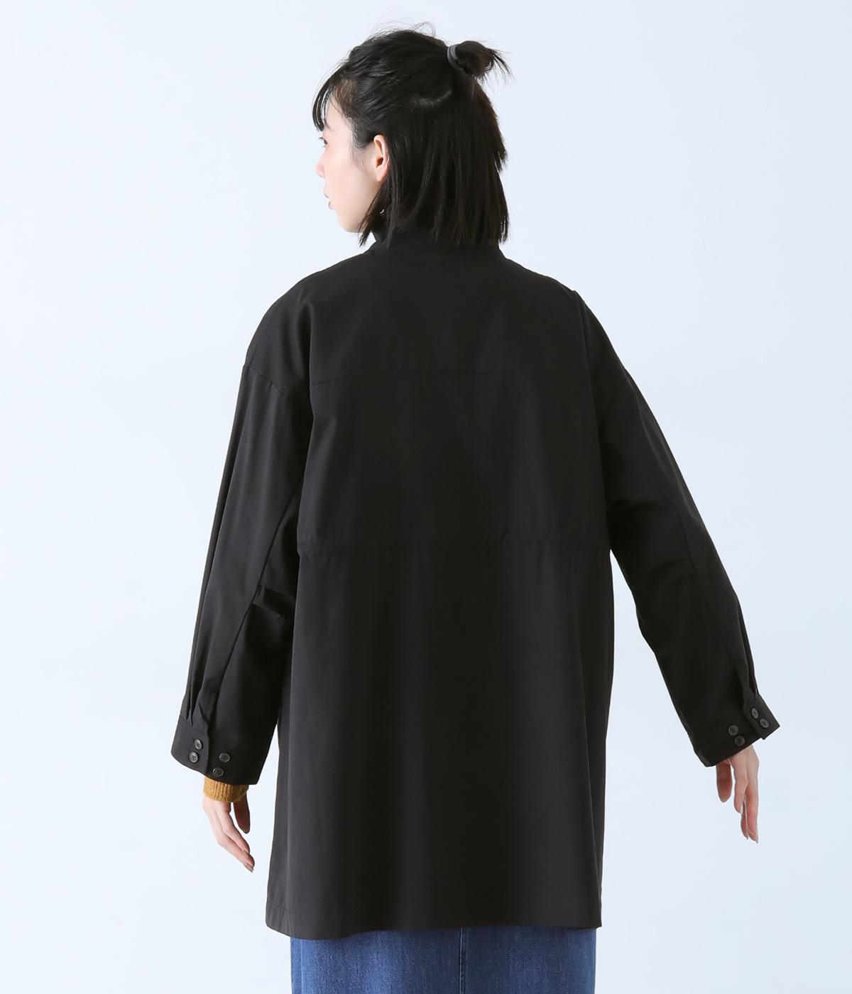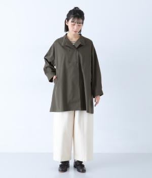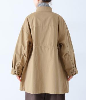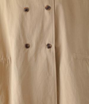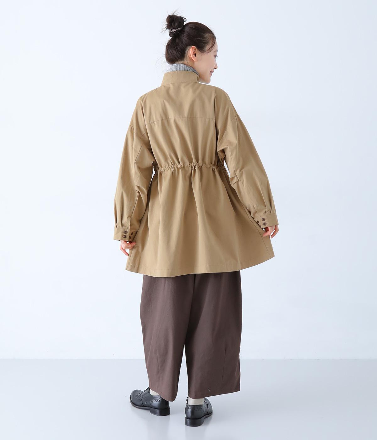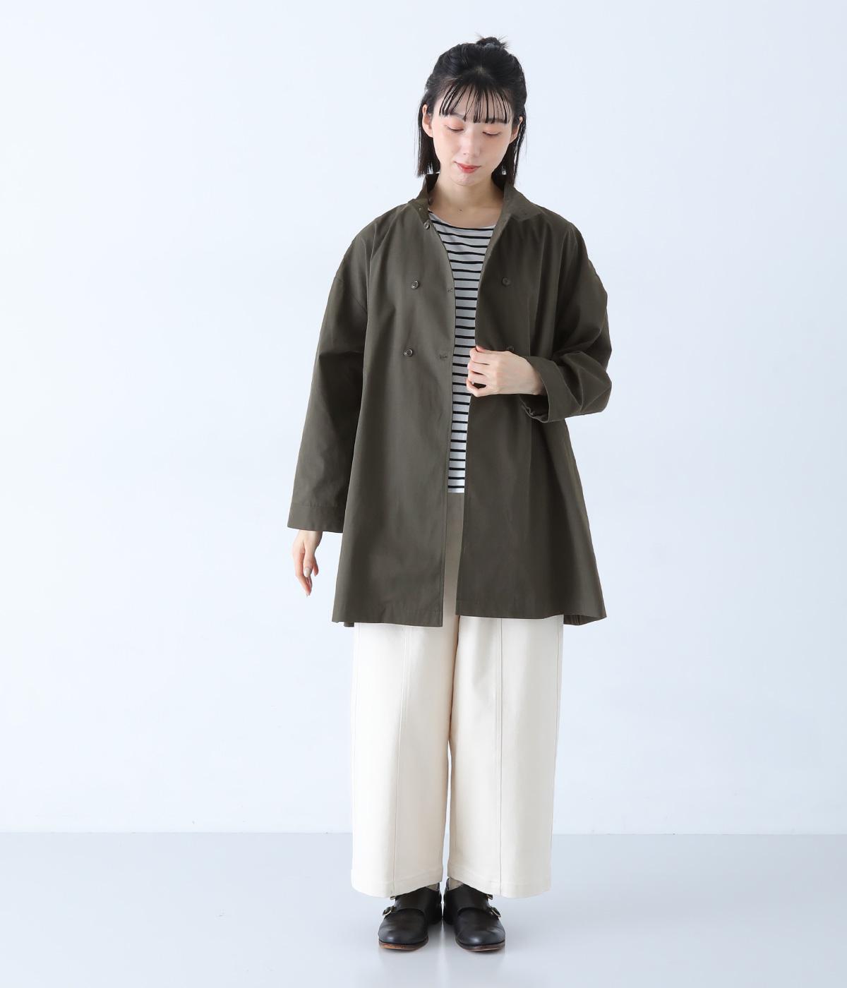 ダブルボタンとスタンドカラーがクラシカルな印象を与えるハーフコート。ウエスト内側に通した紐をきゅっと絞ればシルエットをすっきりとアレンジ可能です。襟部分は開けるとテーラード風に着こなせるのもグッド。袖口カフスのボタンやタック使いなど、細かなディテールにもこだわりが光ります。