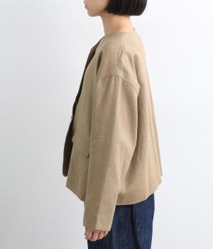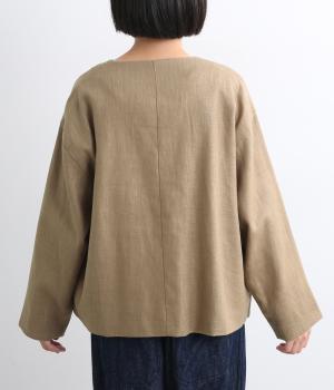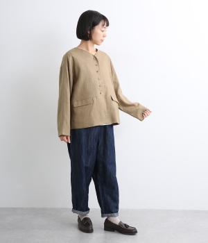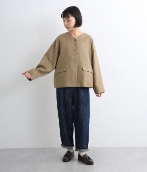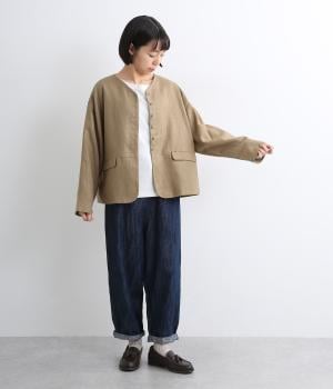 ほどよいハリとコシを持ちつつ、やわらかな肌ざわりのコットンリネンツイル生地を使用しました。ナチュラルで上品な風合いが魅力で、軽やかな着心地が特徴です。