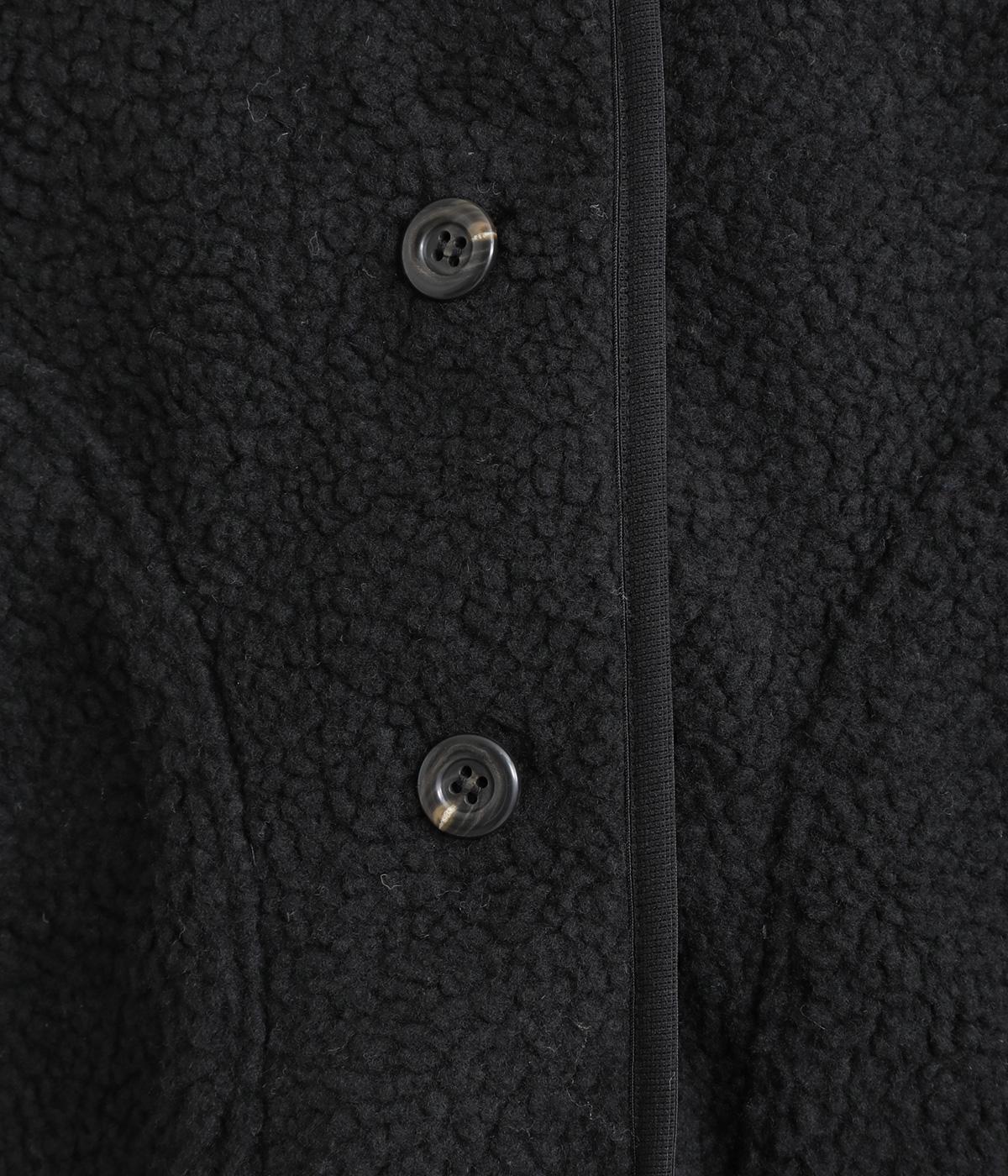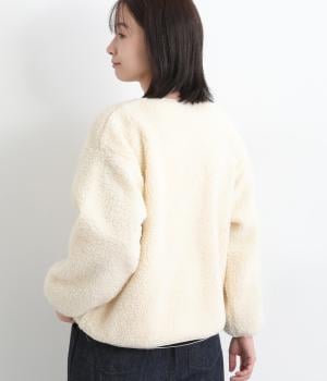 ノーカラーの襟ぐりが顔まわりをすっきり見せるボアコート。同系色のパイピングが全体をきれいにまとめています。すっぽりと手が入る大きなポケットがアクセントに。軽やかな着心地でどんなスタイリングにもなじみます。