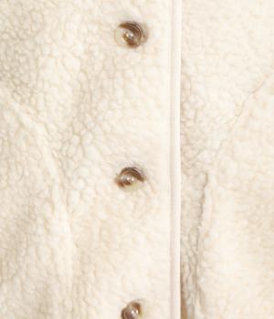 保温性に優れたムートンボア生地を使用。もこもことしたボリューム感がありながらも、軽やかな着心地が魅力です。寒い季節にぴったりな、やさしい雰囲気の素材感です。
