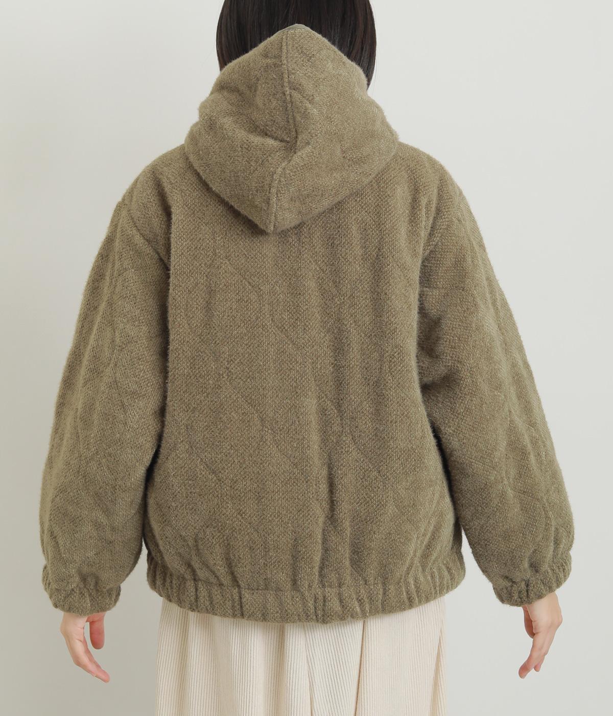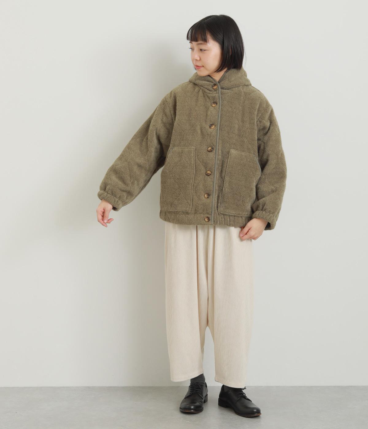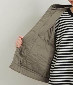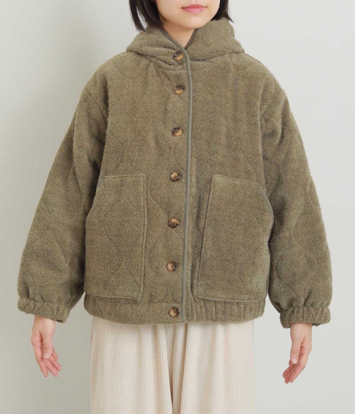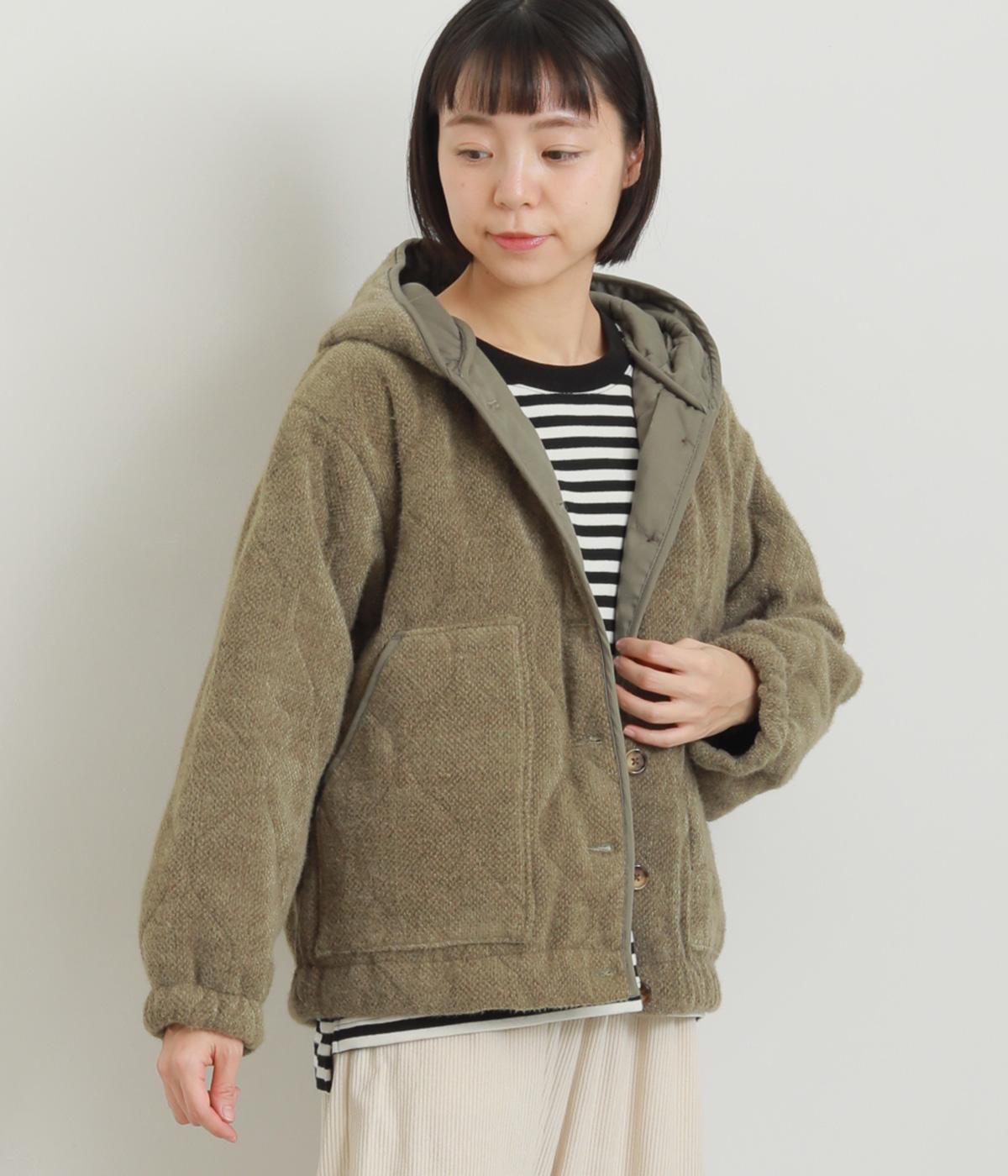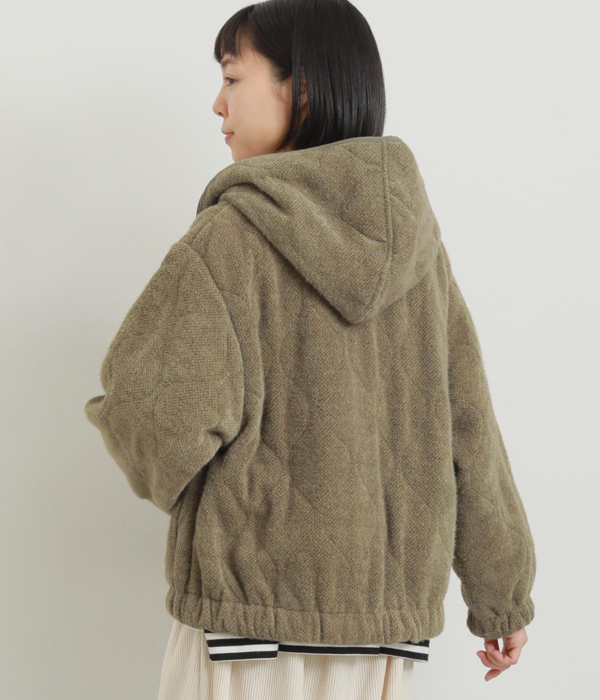 ベロアのような起毛感がリッチな表情をもち、ひょうたん柄のキルティングで適度にカジュアルダウンさせました。肌にあたる裏面は綿混のさらっとした素材感で袖の通りもスムーズ。