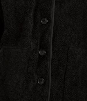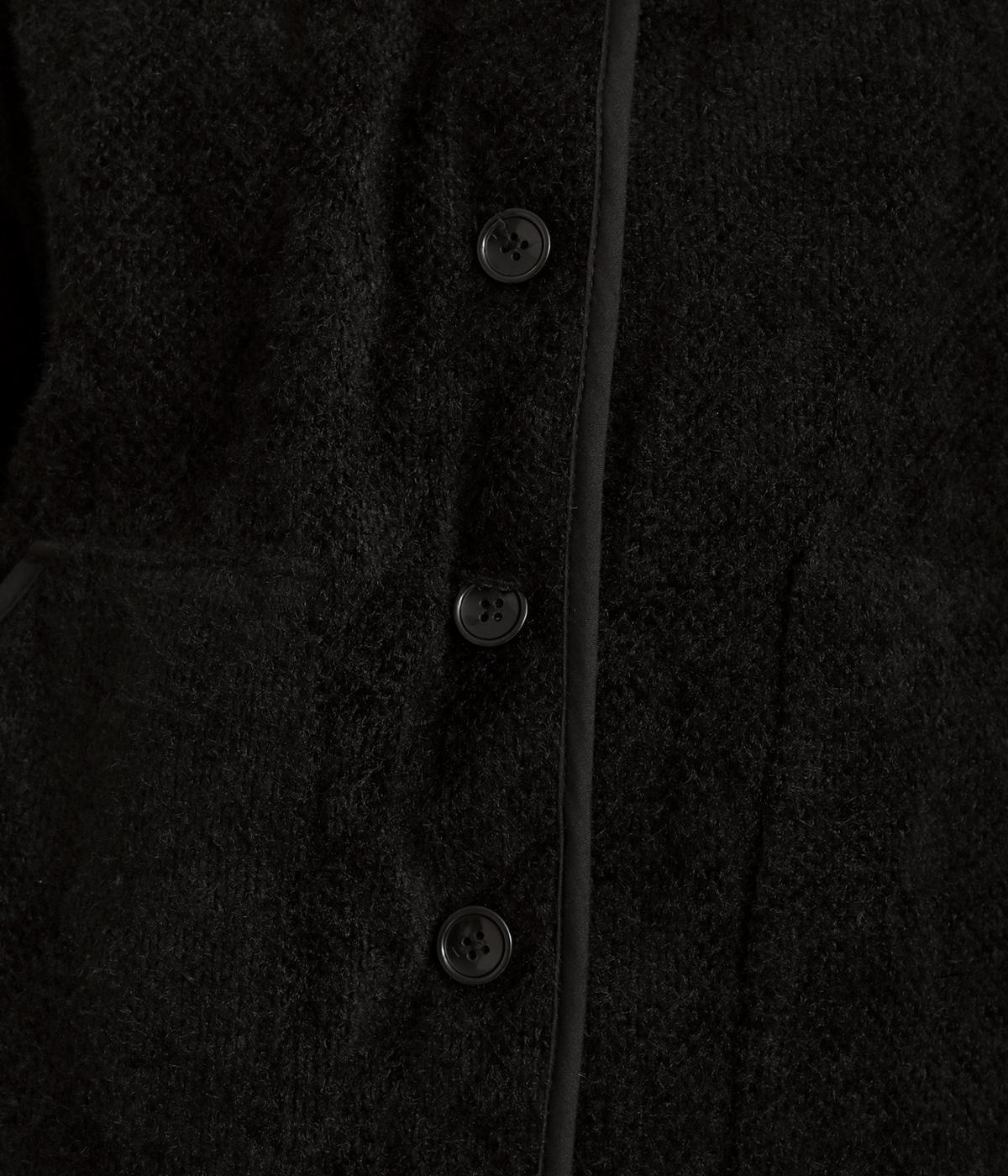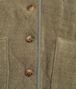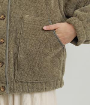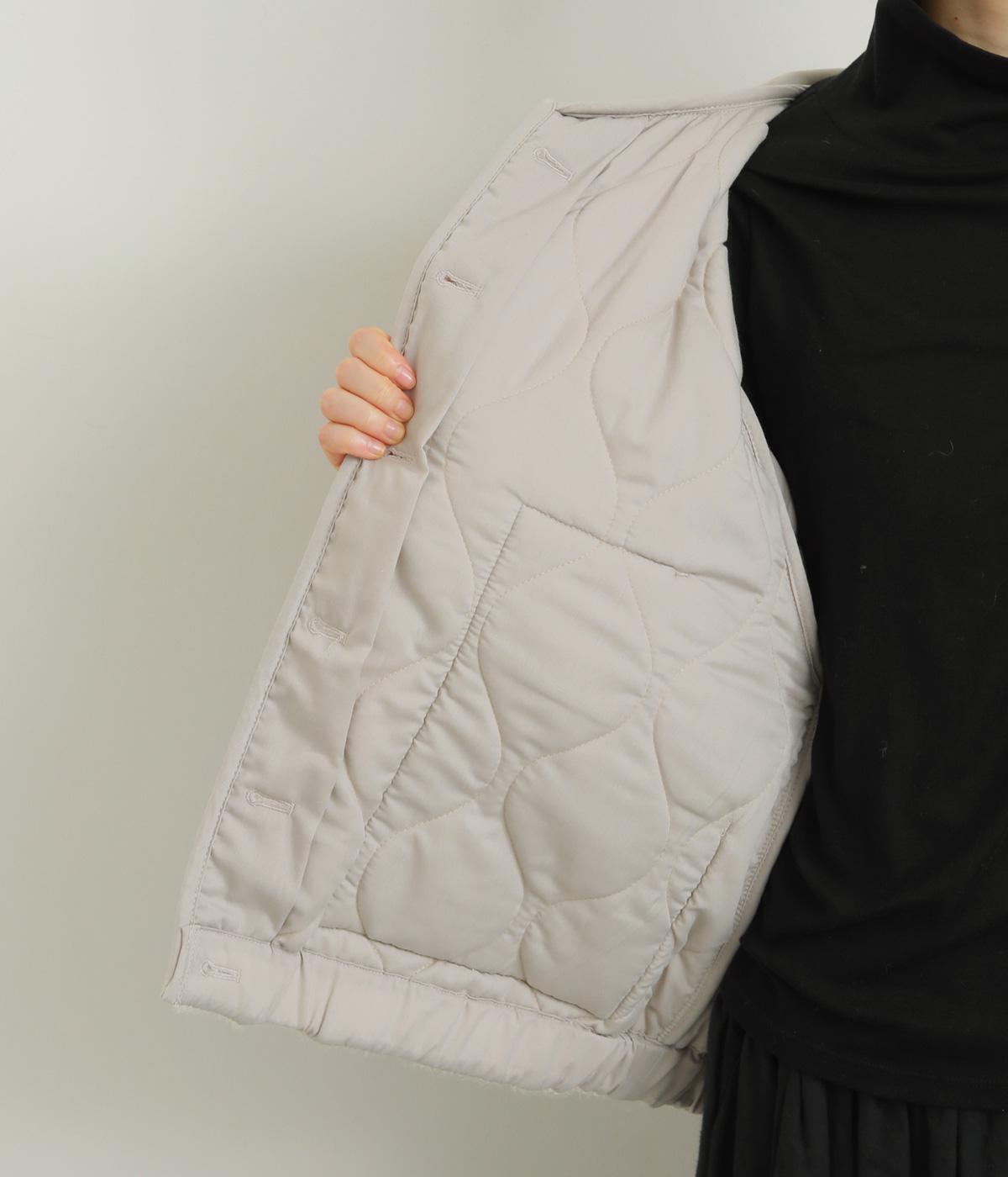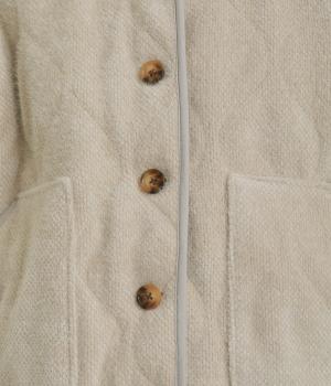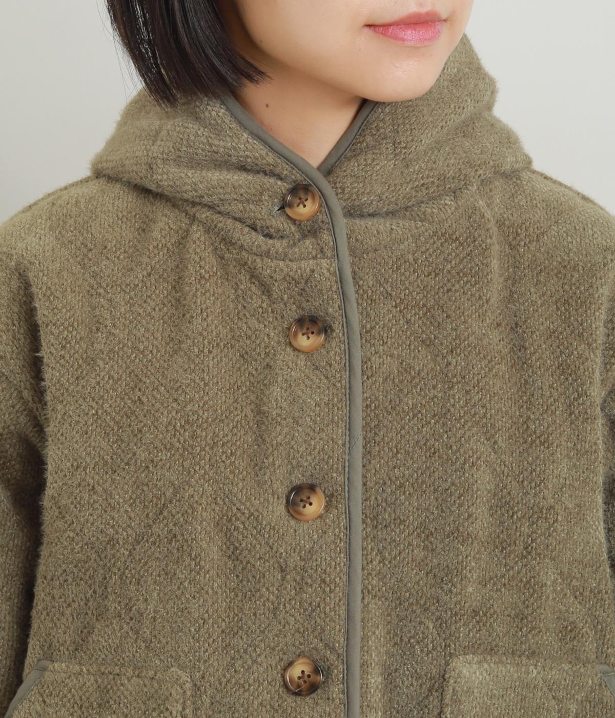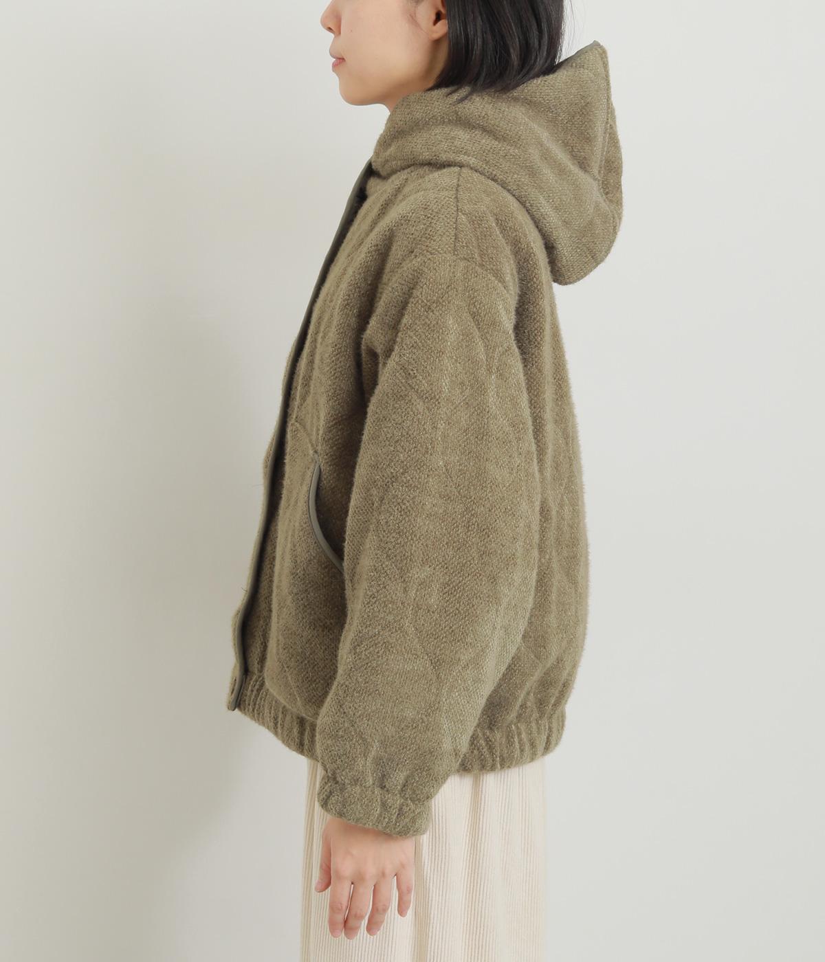 ベロアのような起毛感がリッチな表情をもち、ひょうたん柄のキルティングで適度にカジュアルダウンさせました。肌にあたる裏面は綿混のさらっとした素材感で袖の通りもスムーズ。