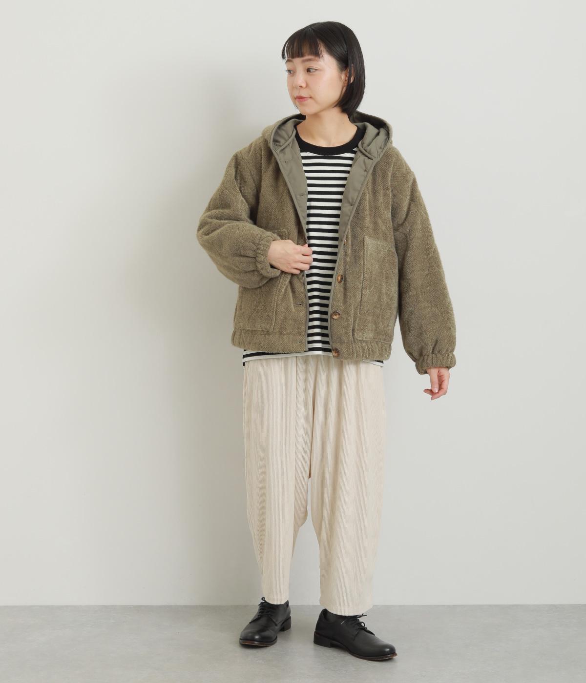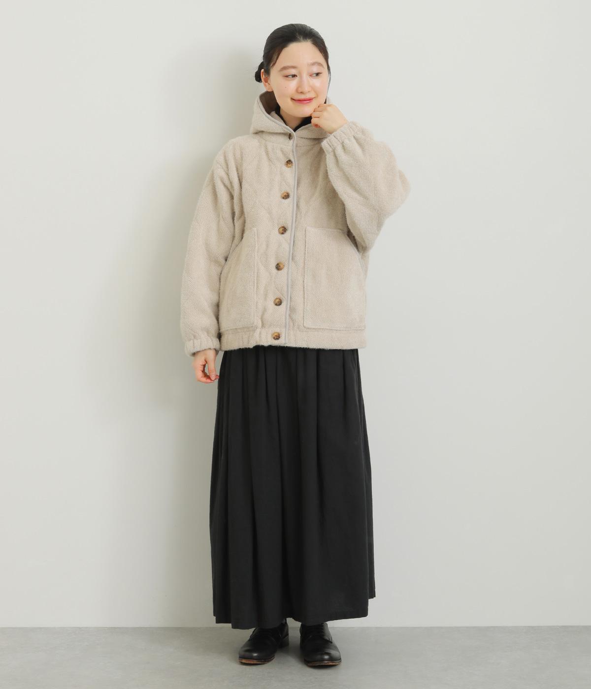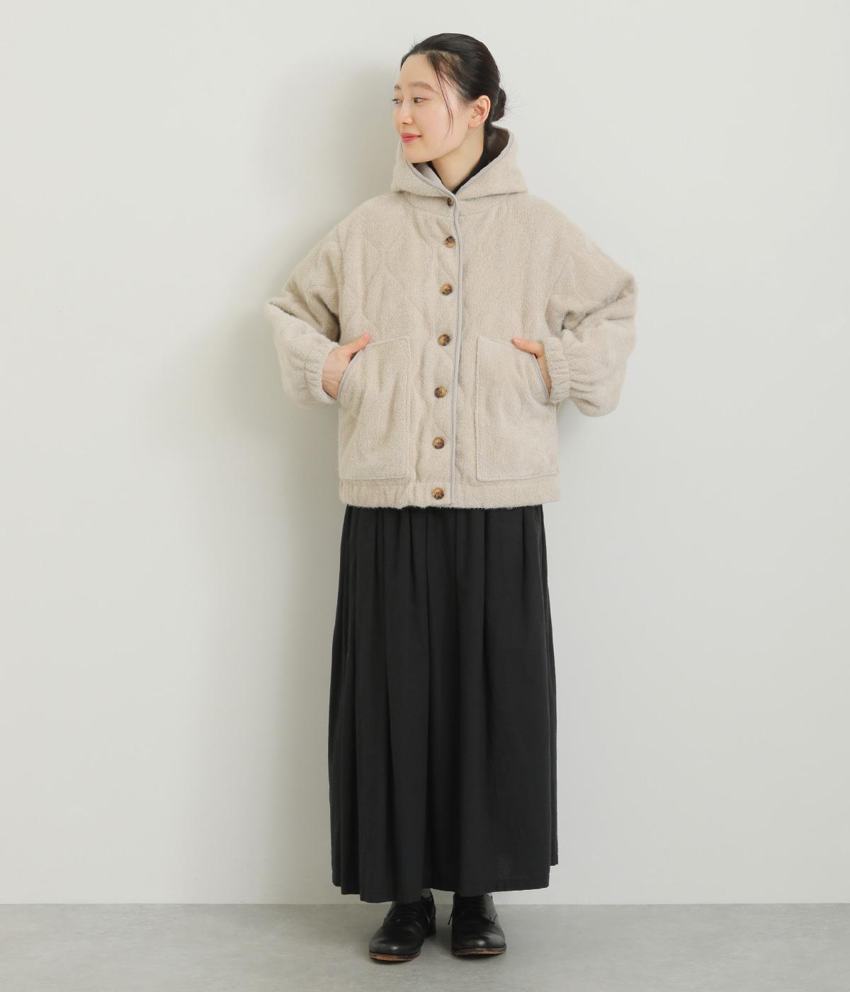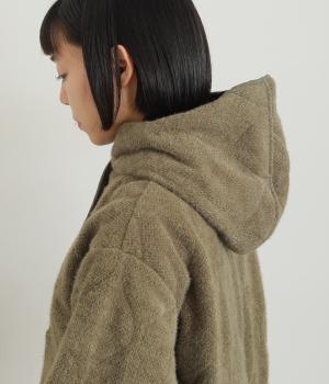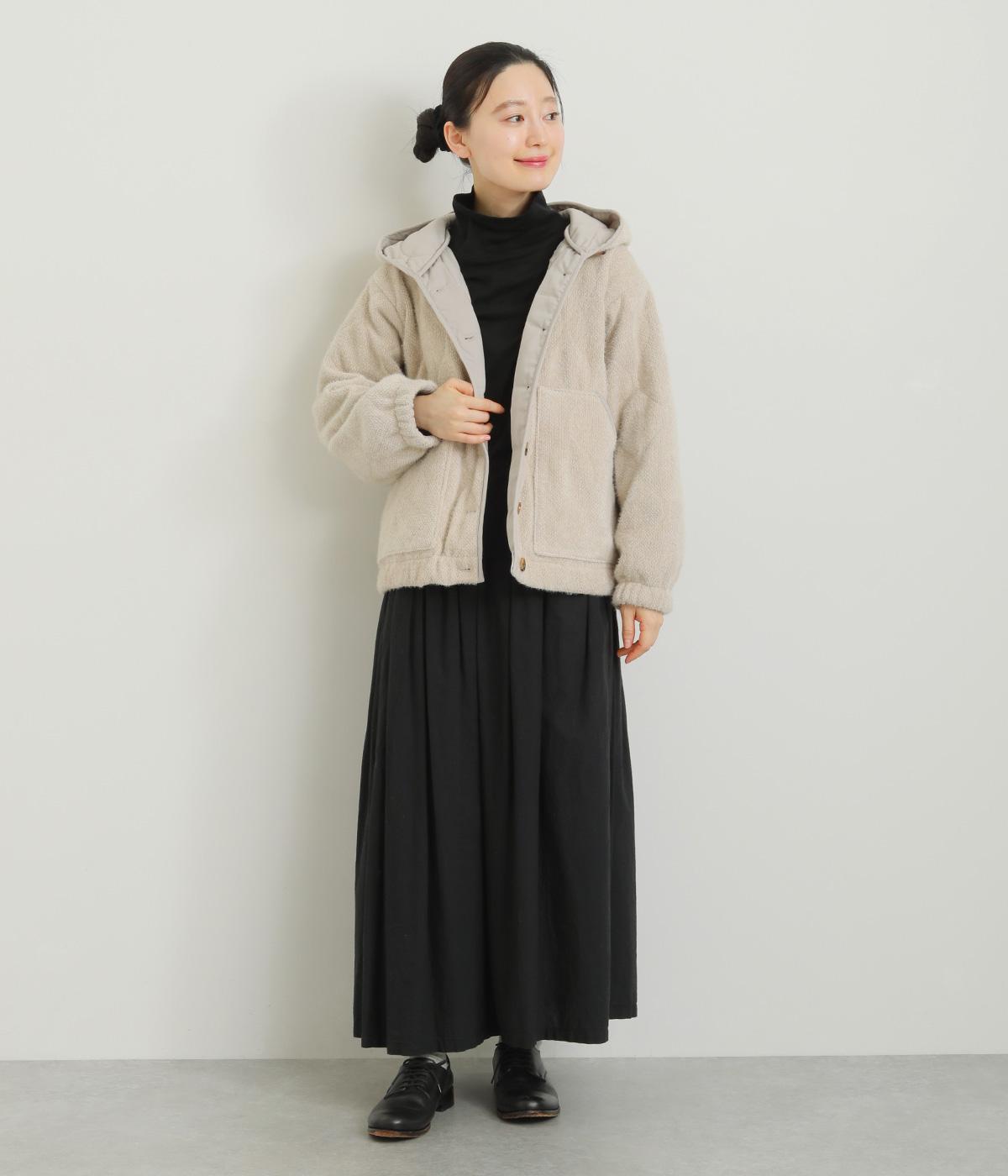 品のいい素材感をフードデザインで適度にカジュアルダウンさせました。袖口や裾にはゴムを通して防寒力&デザイン性もアップ。長すぎずちょうどいい着丈でボトム合わせしやすく、ポケットも大きめでデイリー使いに最適。