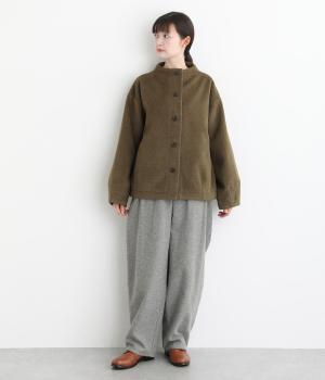 秋冬の羽織にぴったりなウォーム感のあるジャケット。軽量で羽織りやすいのも◎。ゆとりのあるスタンドカラーでタートルやマフラーとも好相性。きれいにもカジュアルにも合わせやすいアウターです。