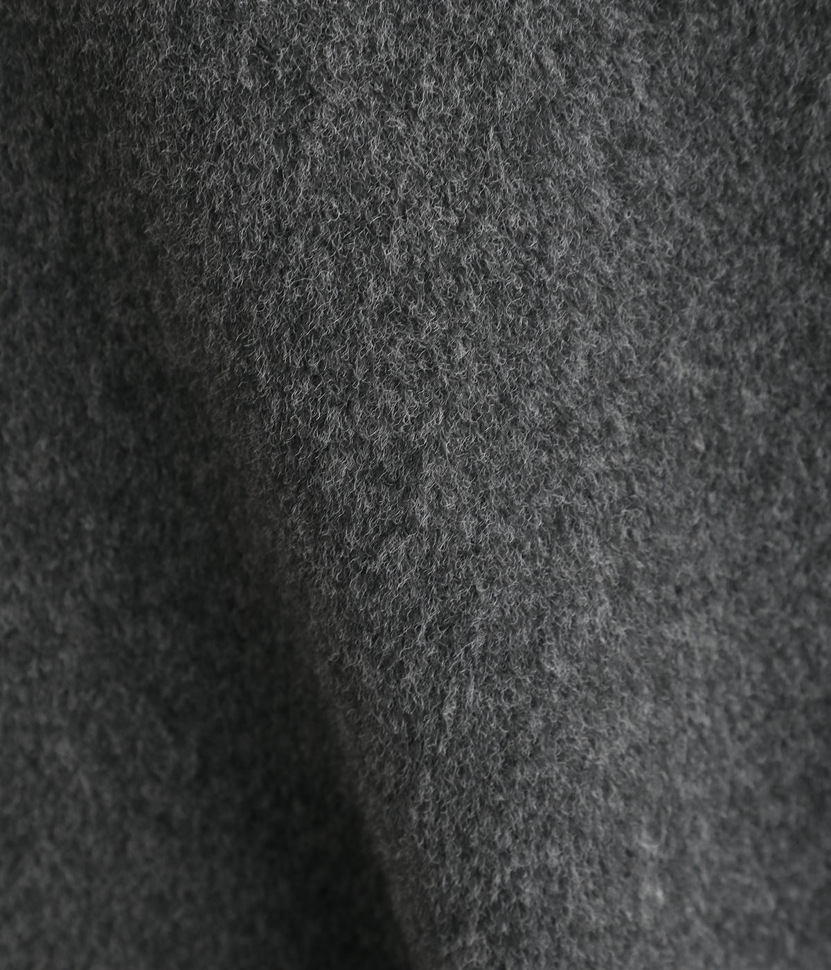 なめらかな起毛感が魅力のレーヨン混のポリエステル生地を使用。ほのかな光沢感が上品な印象を添えています。存在感のあるボリュームながら830gと軽やかに仕立て、滑りのいい裏地を合わせました。