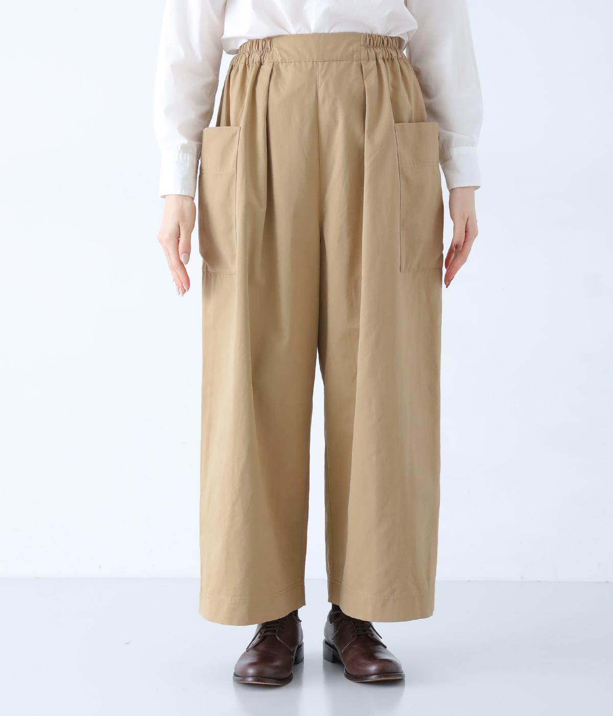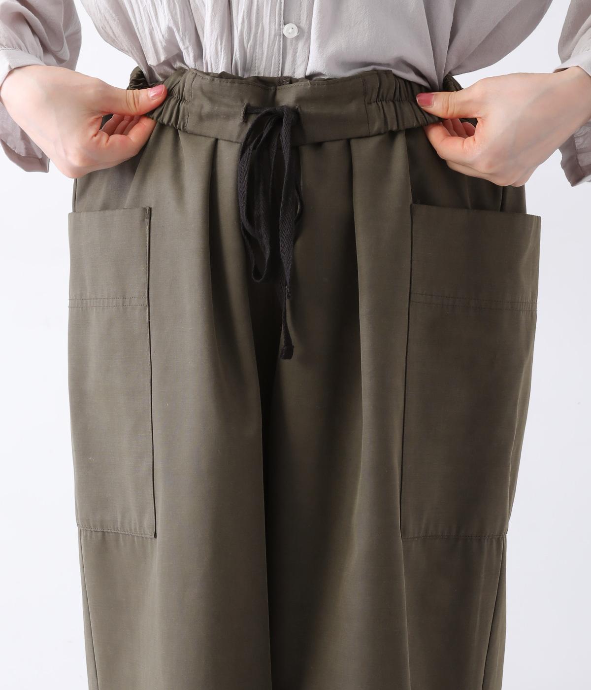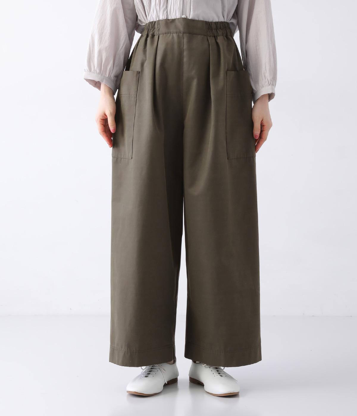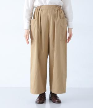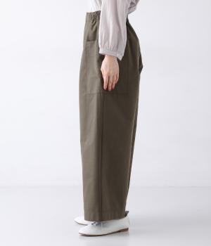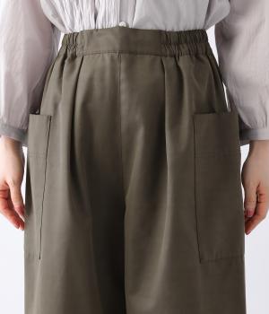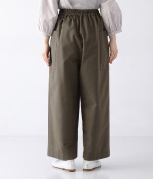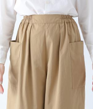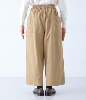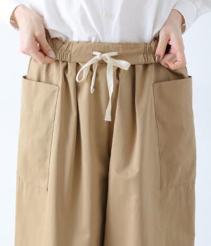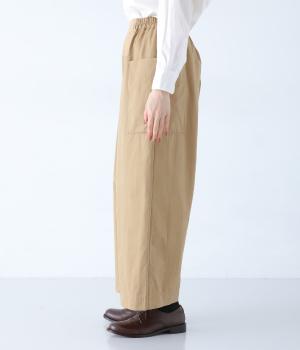 ヒップや脚のラインを拾いにくいワイドシルエットのパンツです。大きめのサイドポケットがカジュアルなアクセントに。気になる腰まわりもさりげなくカバーしてくれます。ウエストはサイドから後ろにかけてゴム仕様。フィット感を調整できる内紐入りです。