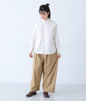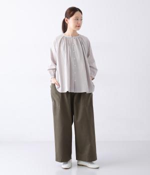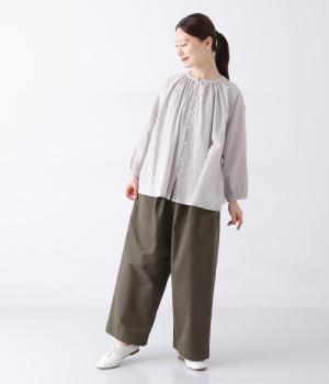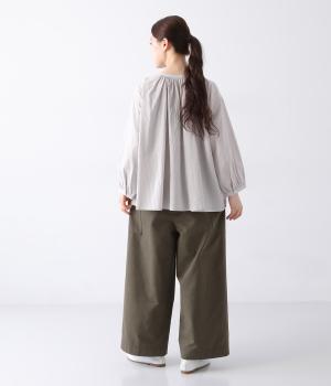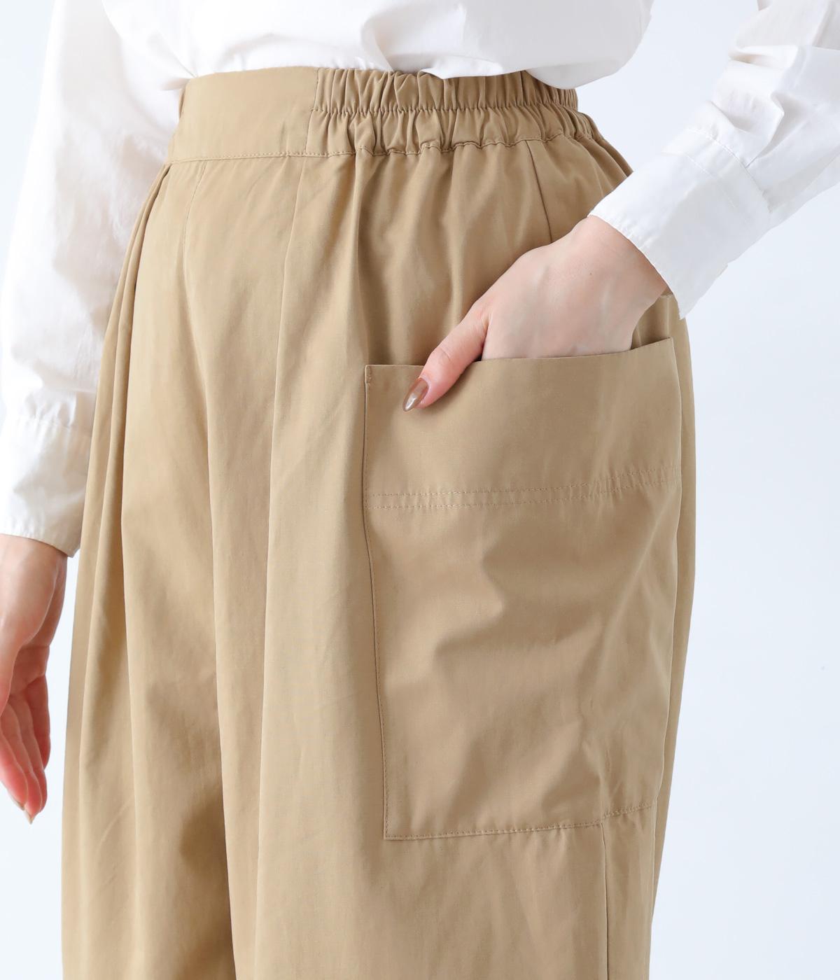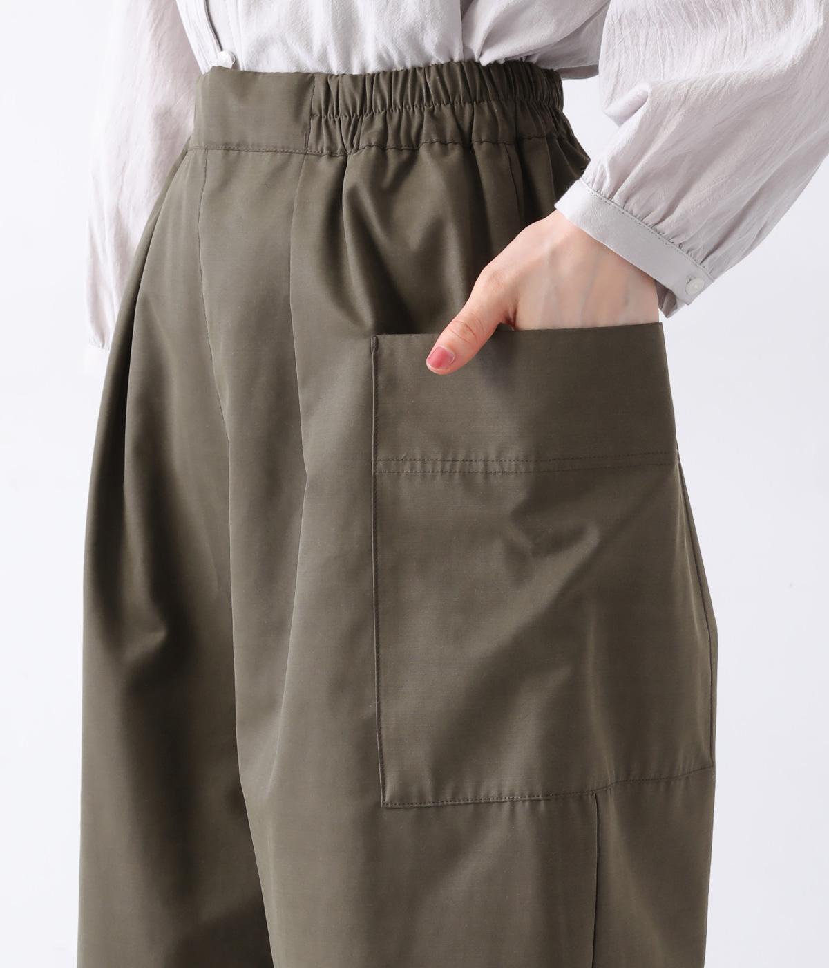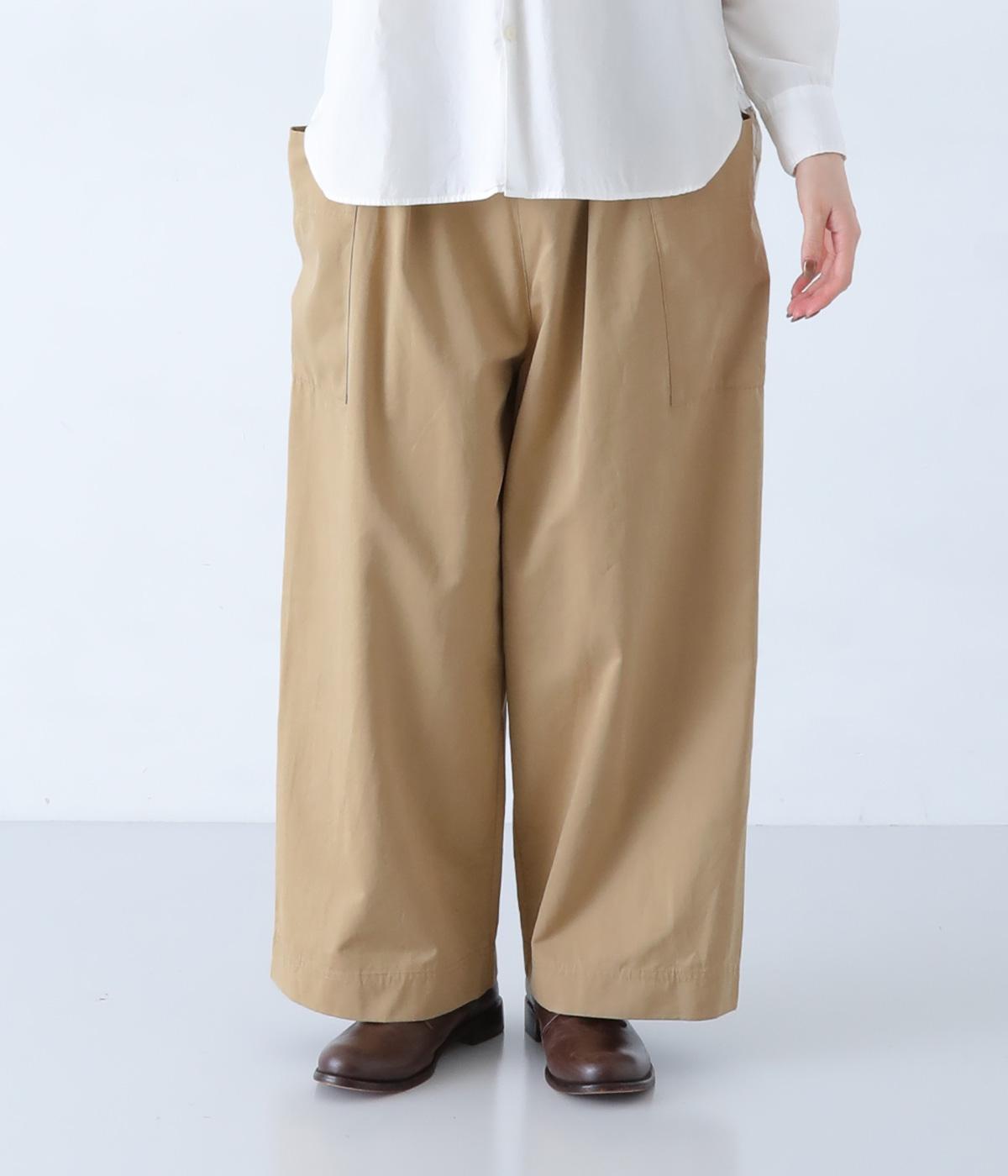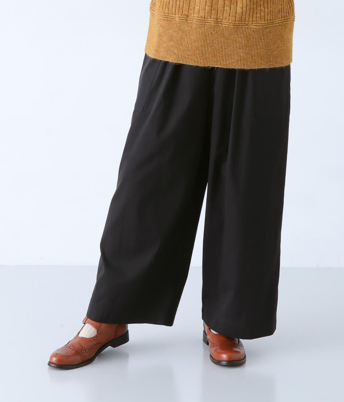 ヒップや脚のラインを拾いにくいワイドシルエットのパンツです。大きめのサイドポケットがカジュアルなアクセントに。気になる腰まわりもさりげなくカバーしてくれます。ウエストはサイドから後ろにかけてゴム仕様。フィット感を調整できる内紐入りです。
