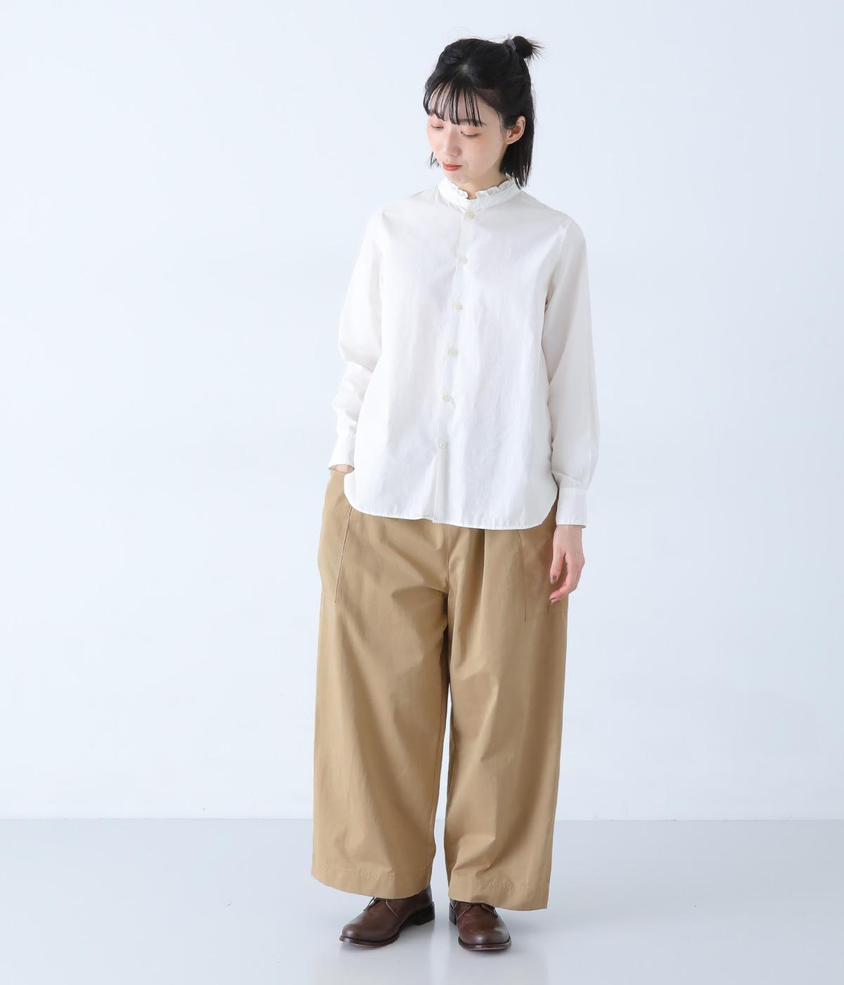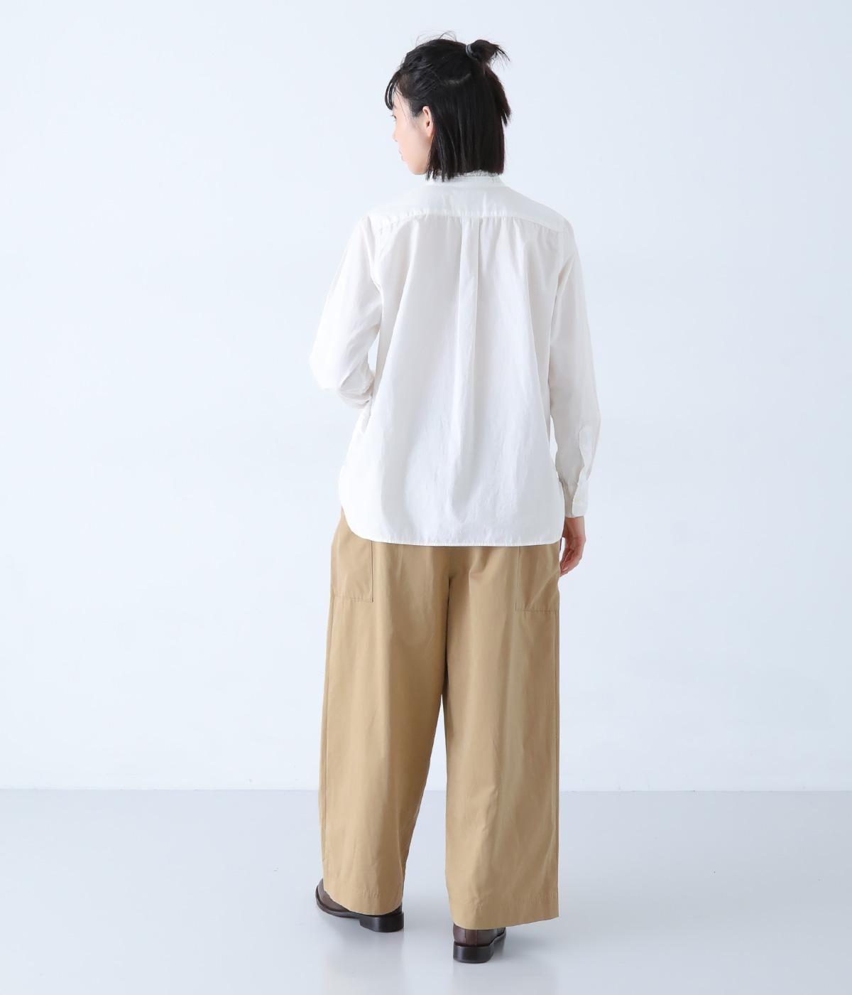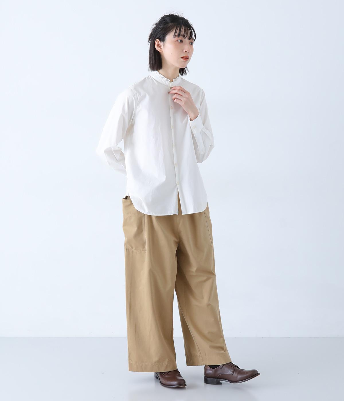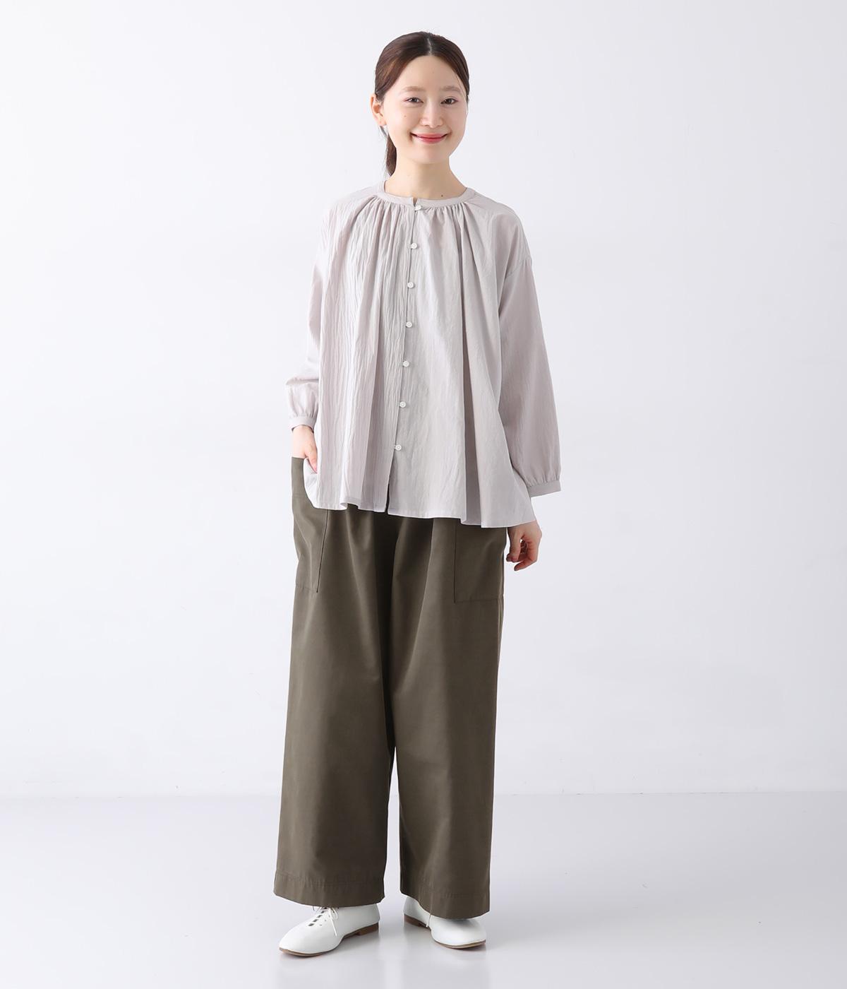 ヒップや脚のラインを拾いにくいワイドシルエットのパンツです。大きめのサイドポケットがカジュアルなアクセントに。気になる腰まわりもさりげなくカバーしてくれます。ウエストはサイドから後ろにかけてゴム仕様。フィット感を調整できる内紐入りです。