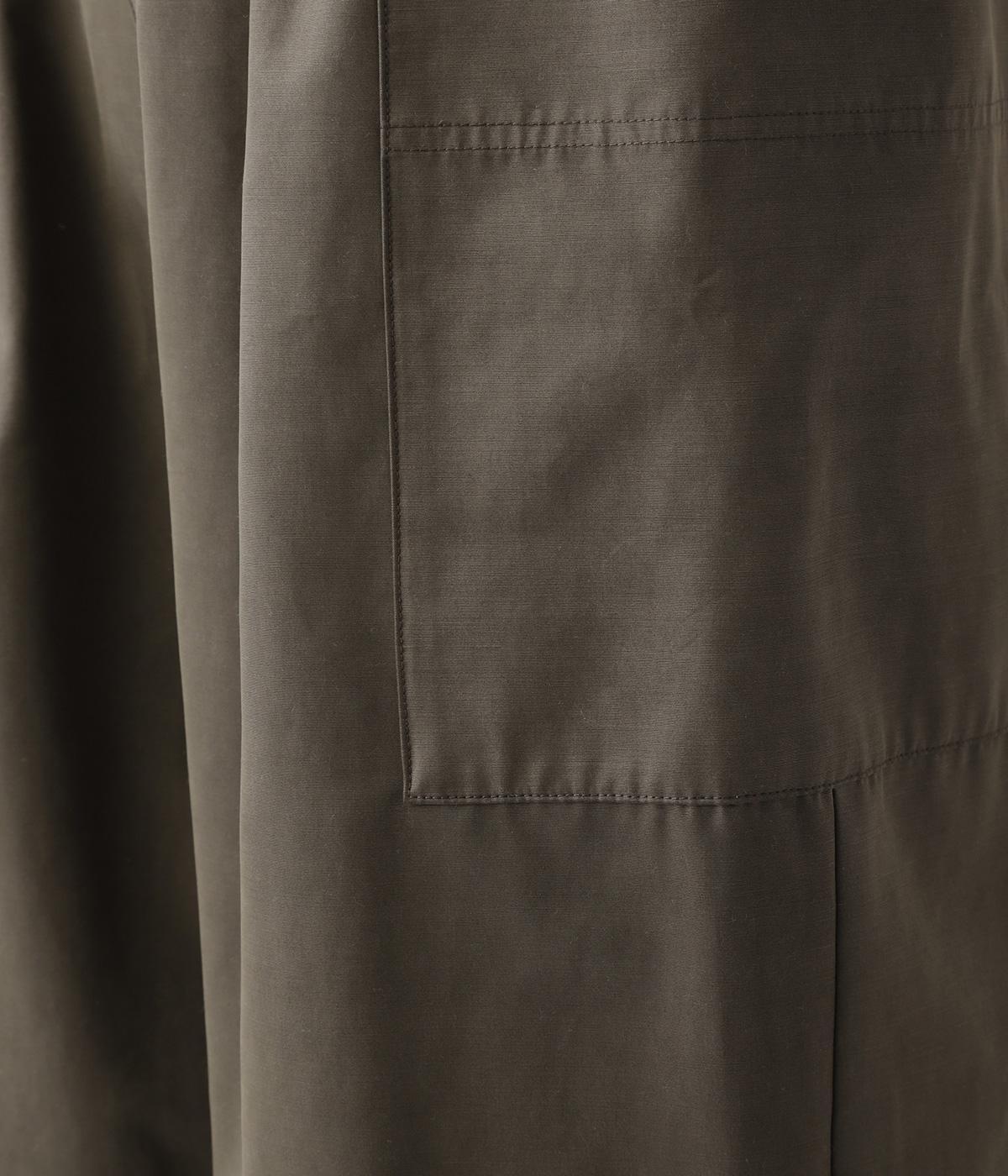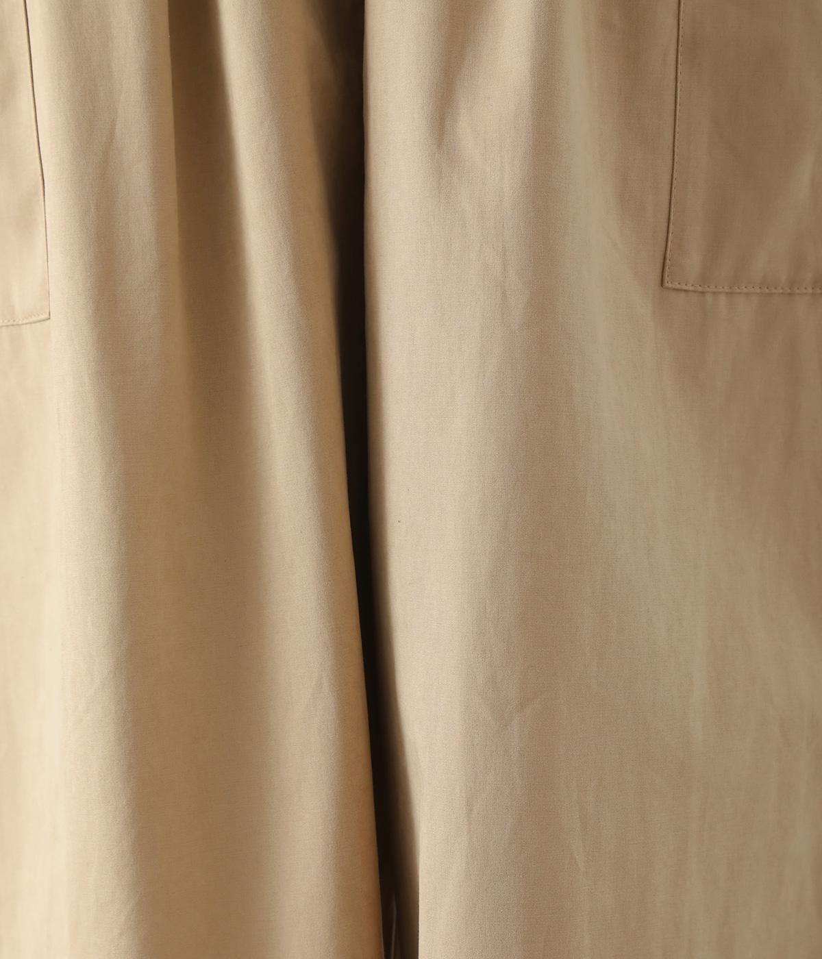 うっすらとピーチ起毛のかかったポリエステルナイロン混素材で仕立てています。桃の皮のようなしっとりとした質感で上品なムードに。しっかりとハリがあり、シルエットをきれいにキープします。
