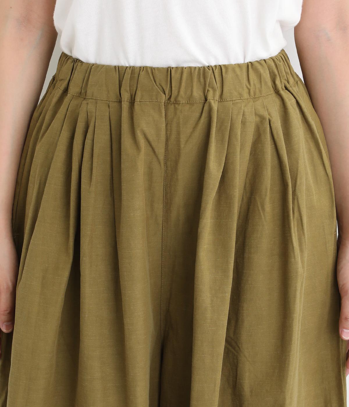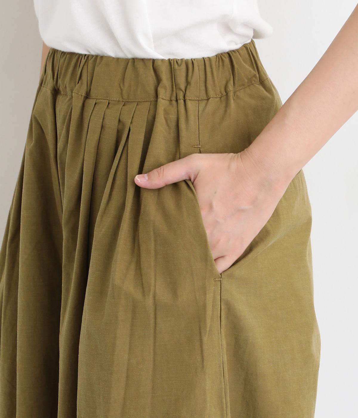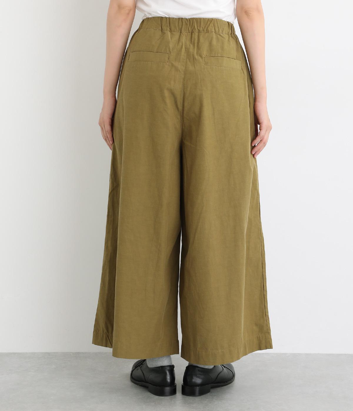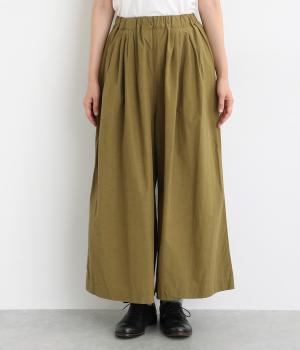 スカート見えするゆったりとしたワイドパンツです。薄めの軽やかな作りなのではきこなしやすく、それでいて雰囲気のいい生地感でスタイリングに存在感を与えてくれます。ウエスト総ゴムでデイリー使いしやすく、内紐で微調整も可能です。