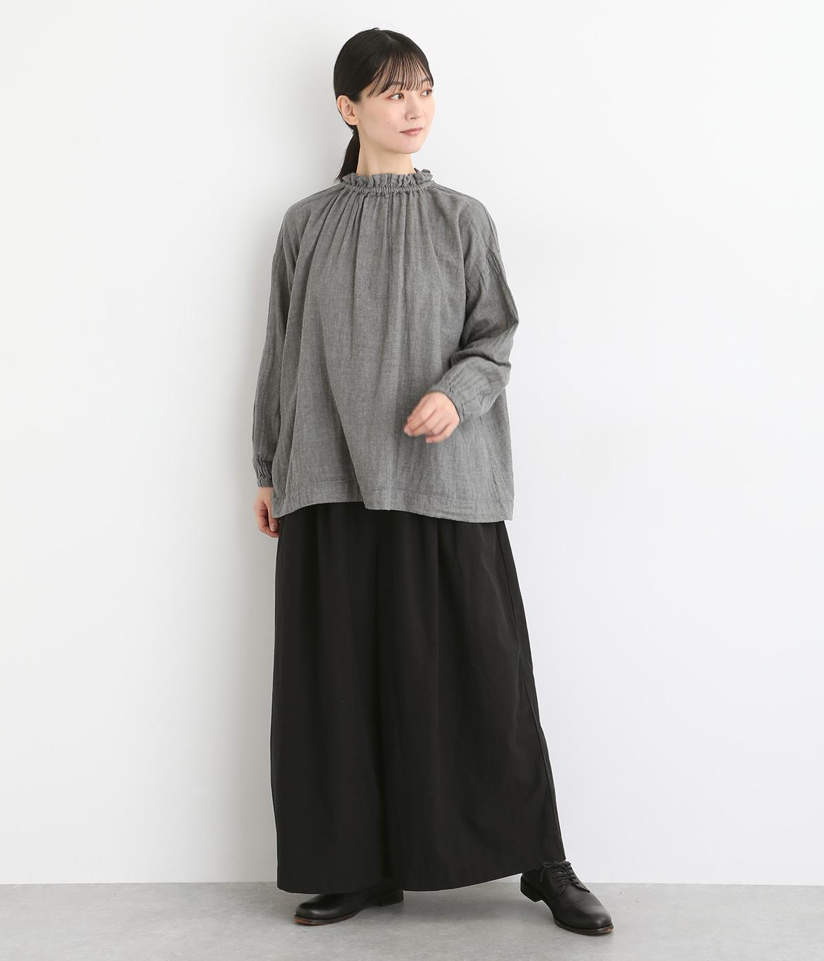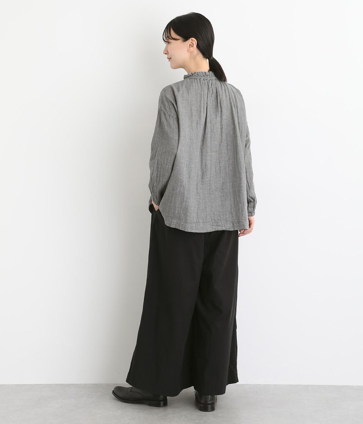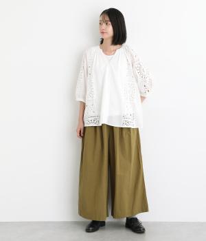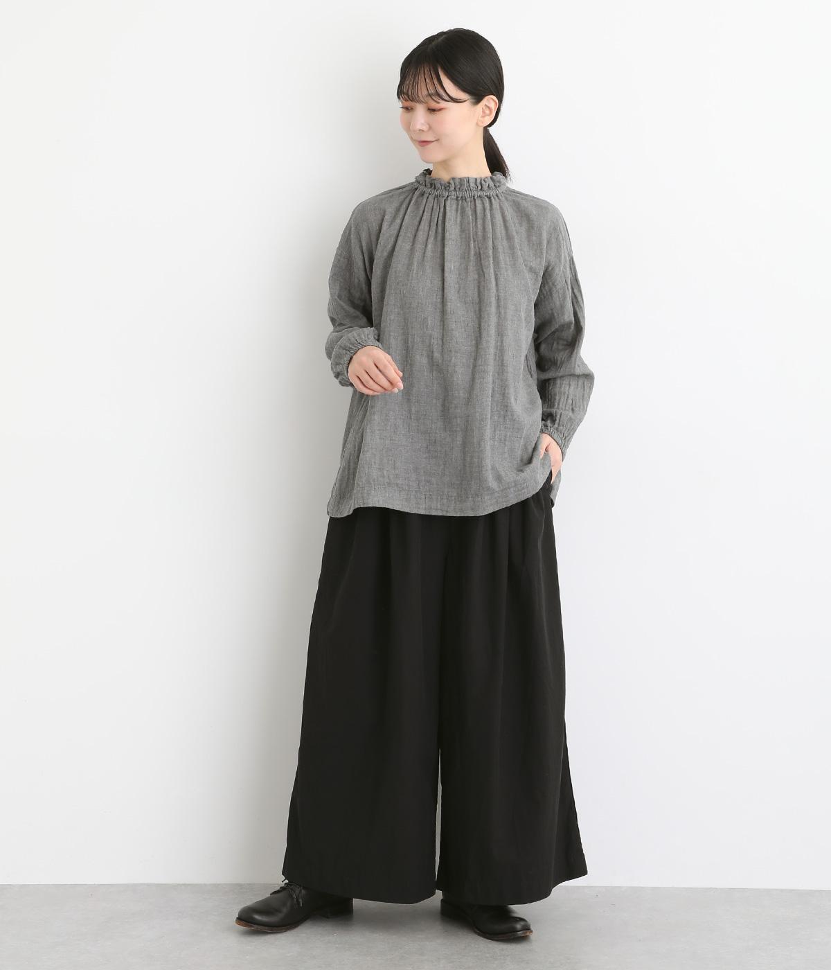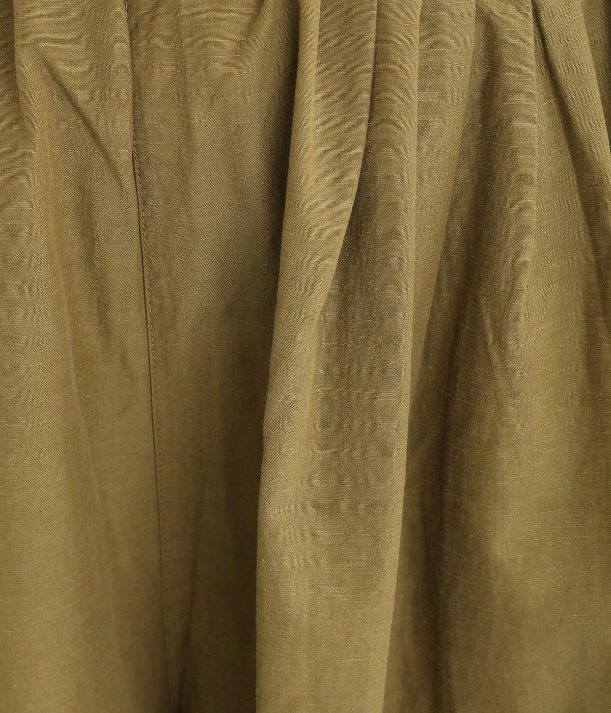 スカート見えするゆったりとしたワイドパンツです。薄めの軽やかな作りなのではきこなしやすく、それでいて雰囲気のいい生地感でスタイリングに存在感を与えてくれます。ウエスト総ゴムでデイリー使いしやすく、内紐で微調整も可能です。
