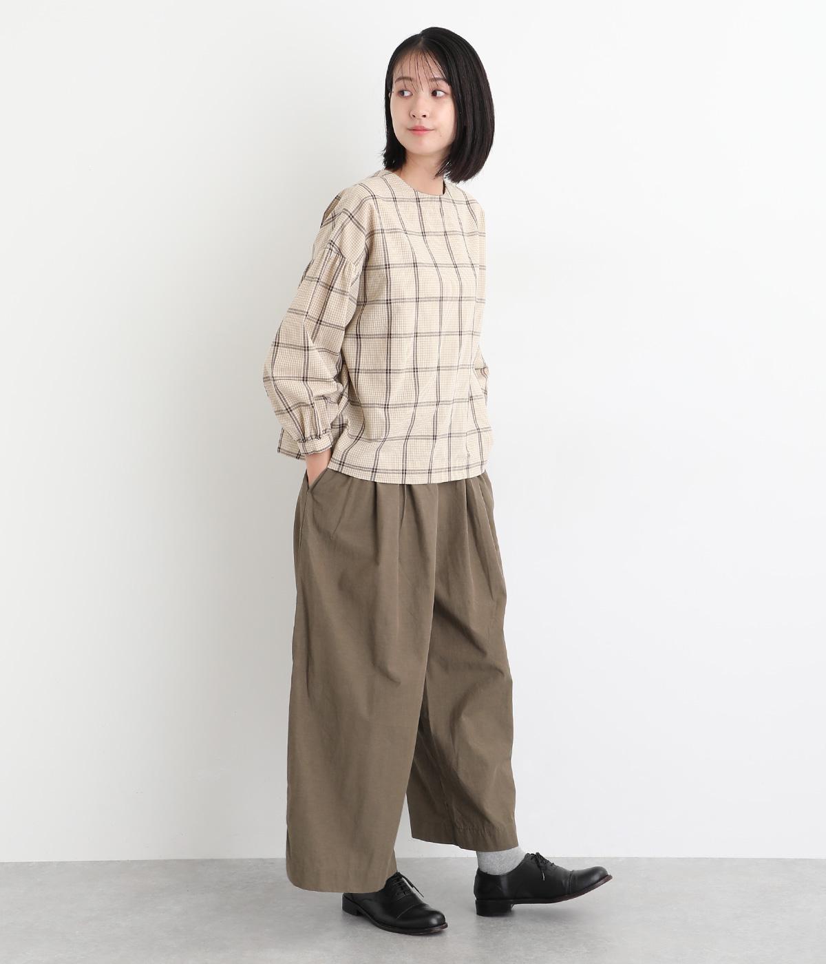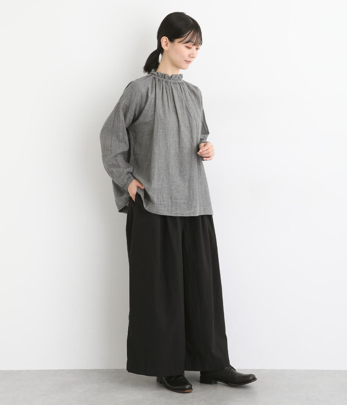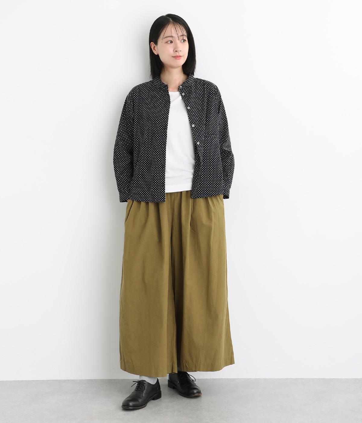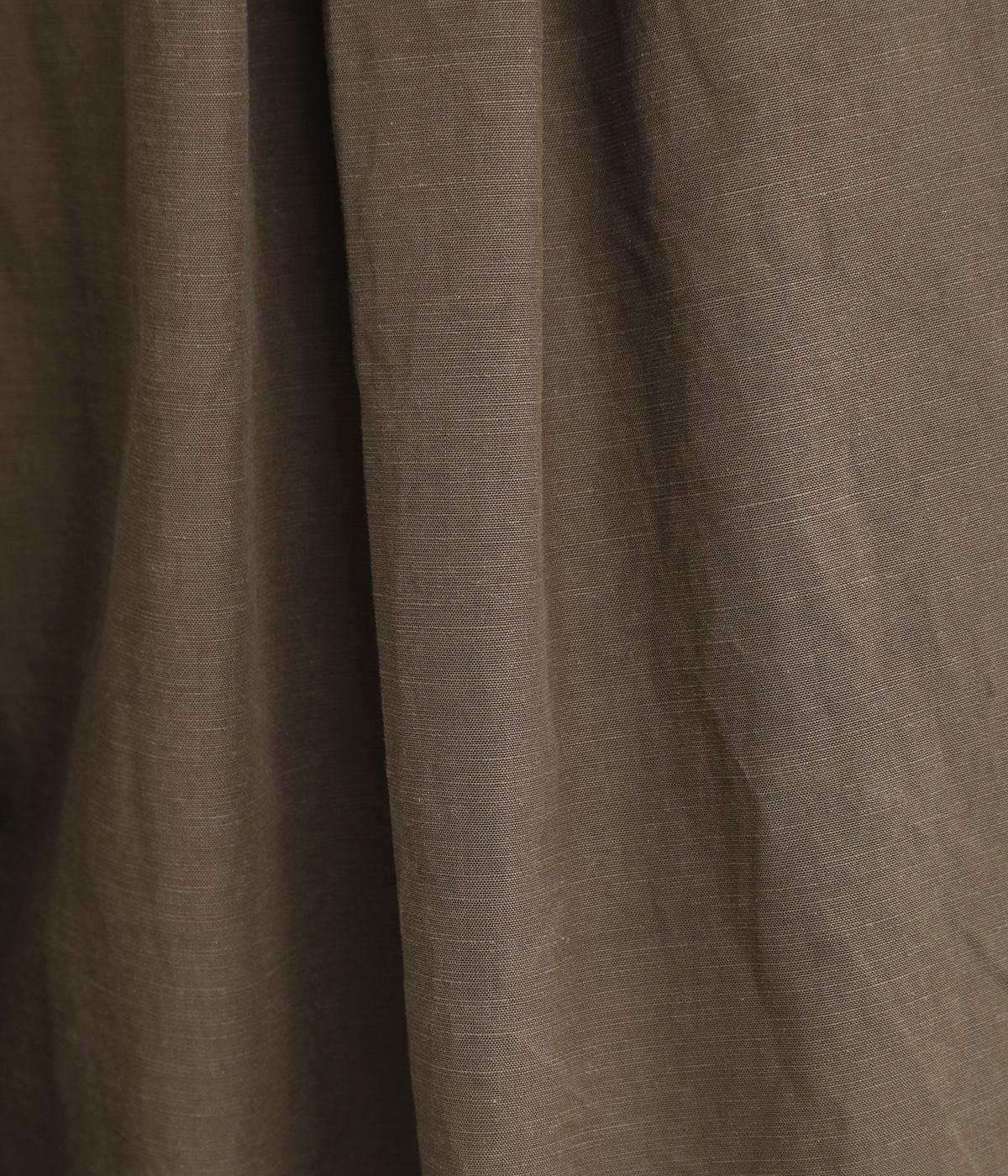 コットンとリネンでナチュラルな風合いを惹きたてつつ、レーヨンもミックスしてほのかな光沢となめらかな肌触りを実現。薄手ながらもしっかりとした平織り生地でデイリーに活躍します。