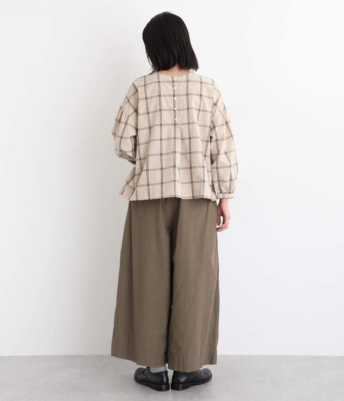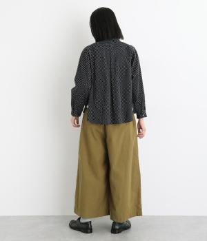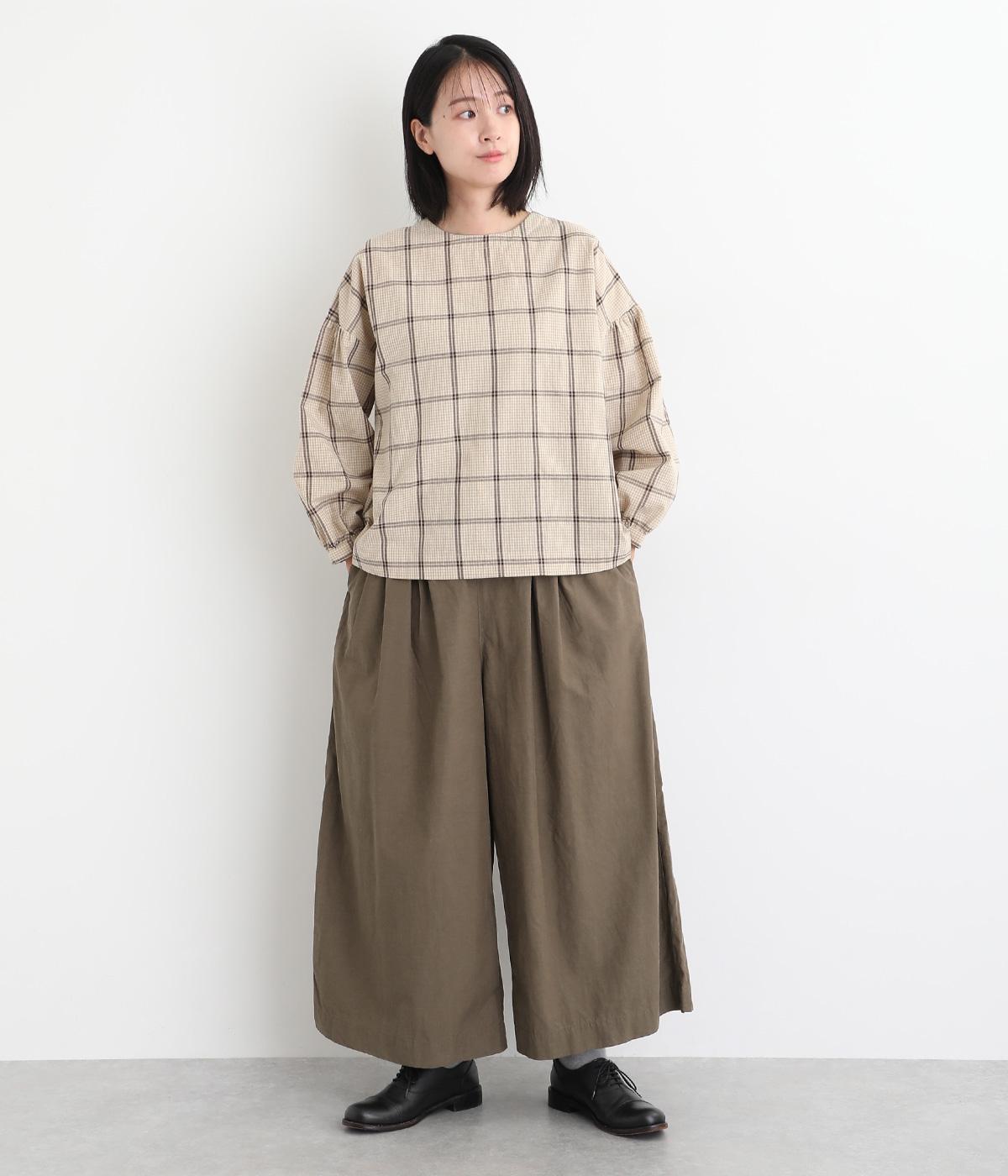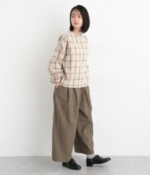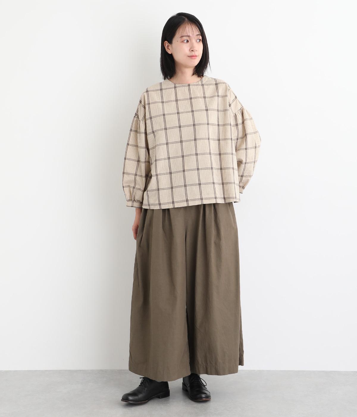 コットンとリネンでナチュラルな風合いを惹きたてつつ、レーヨンもミックスしてほのかな光沢となめらかな肌触りを実現。薄手ながらもしっかりとした平織り生地でデイリーに活躍します。