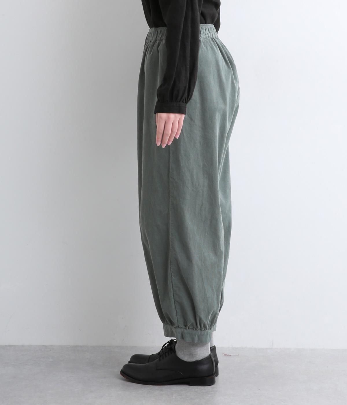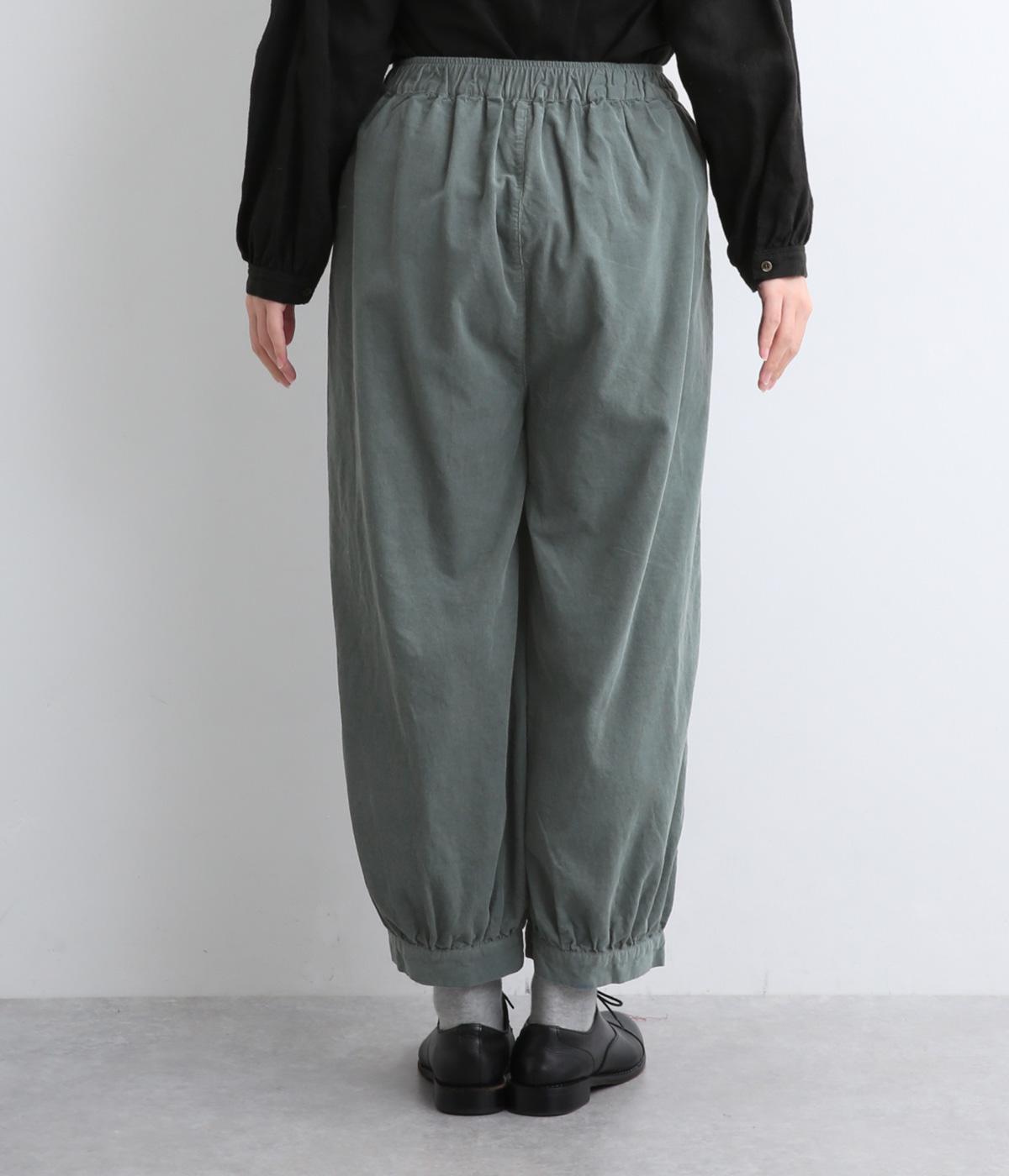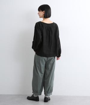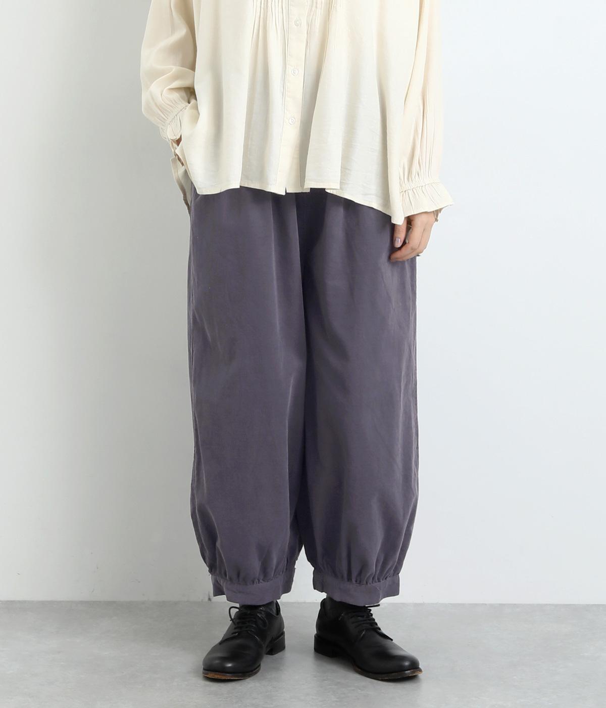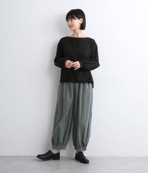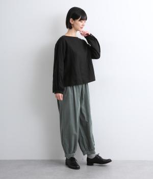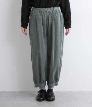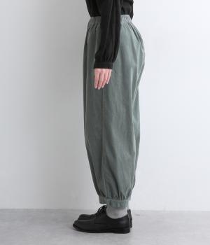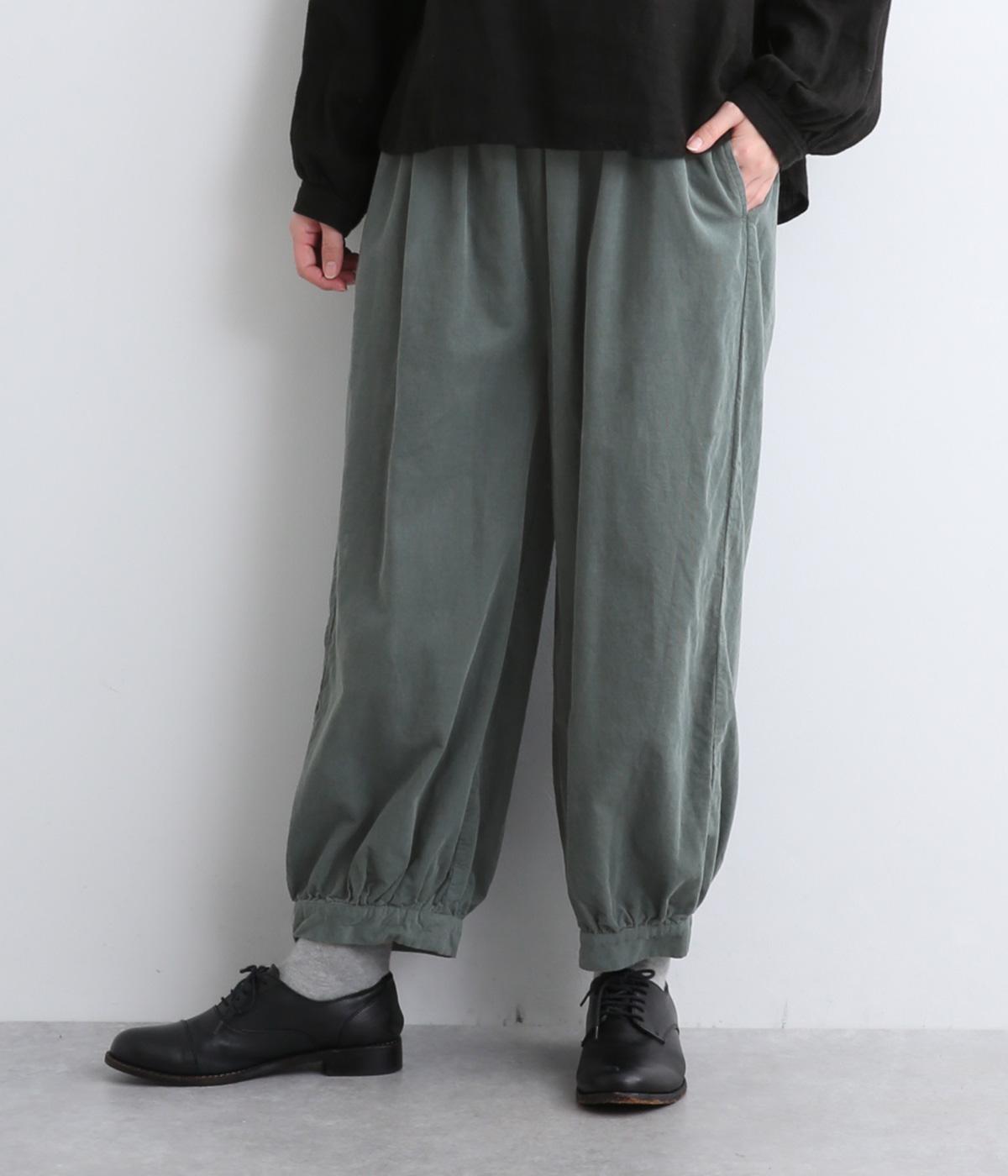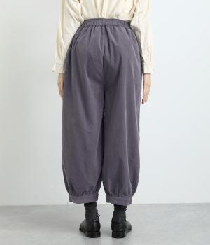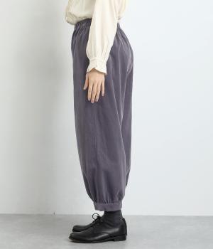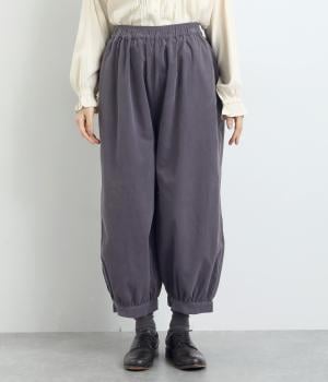 裾カフスとギャザーでゆったりとしたボリューム感とメリハリのあるシルエットが目を惹くコクーンパンツ。足首がすっきり見える丈感でスタイリングバランスも取りやすく、頼りになる一本。ウエストはオールゴムのリラックス仕様。