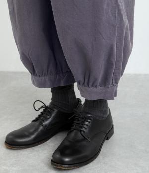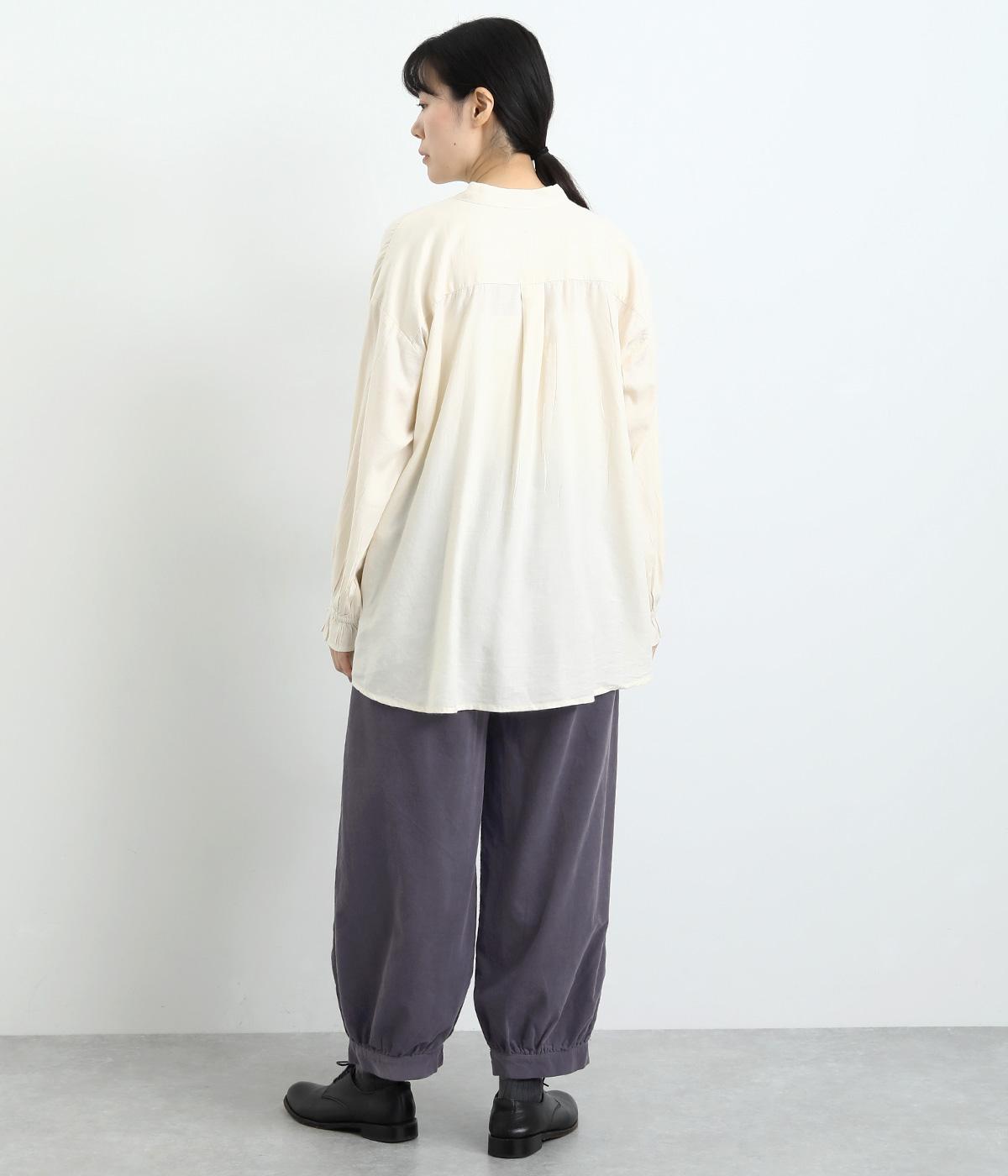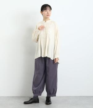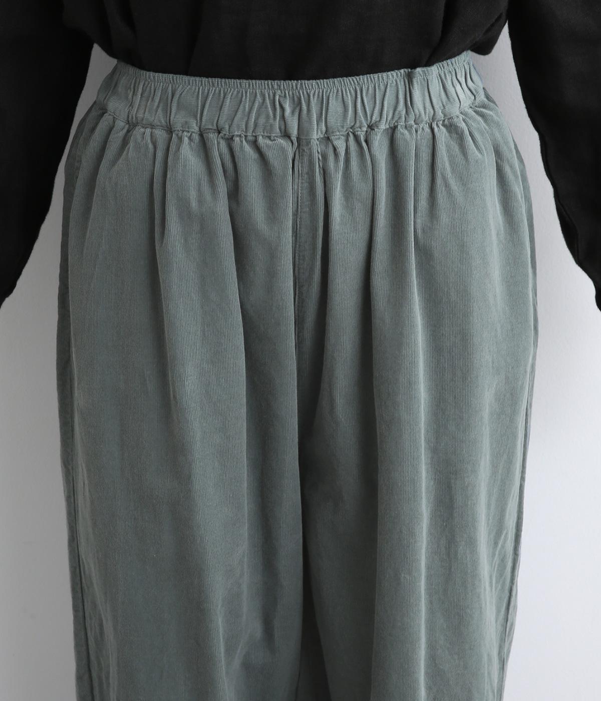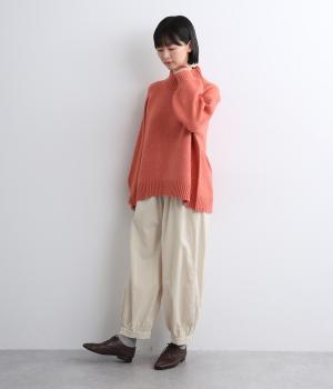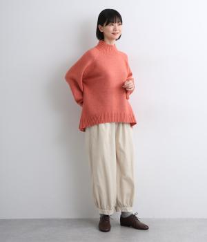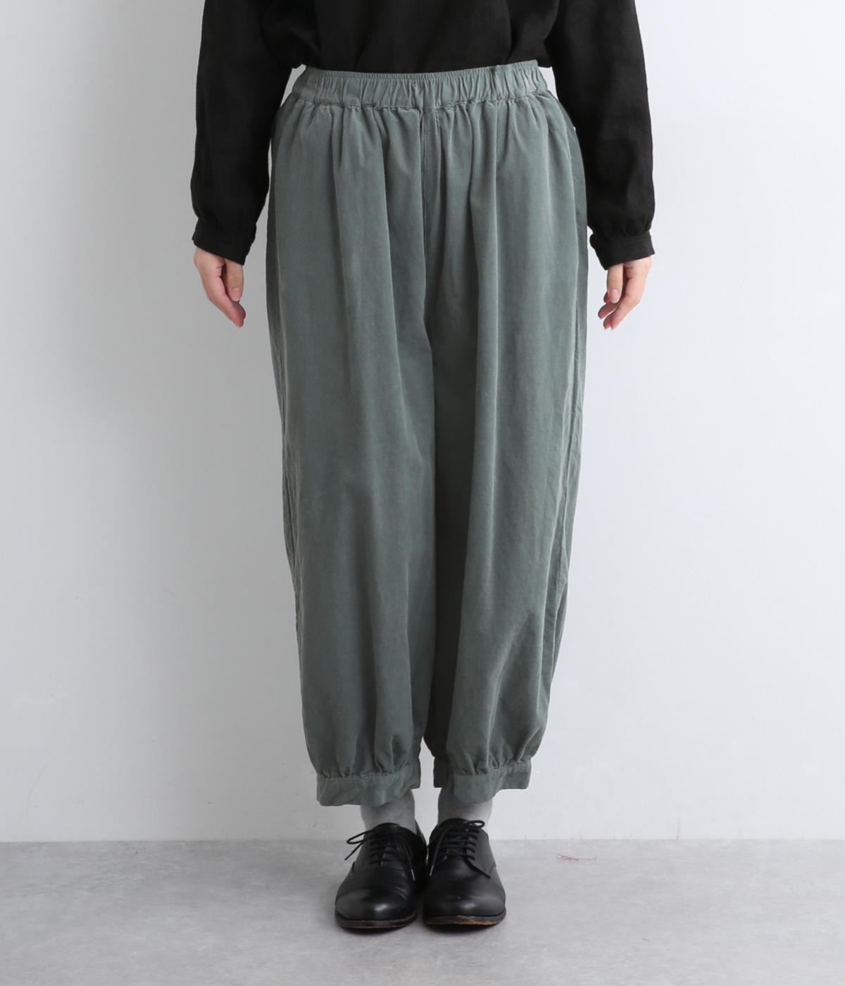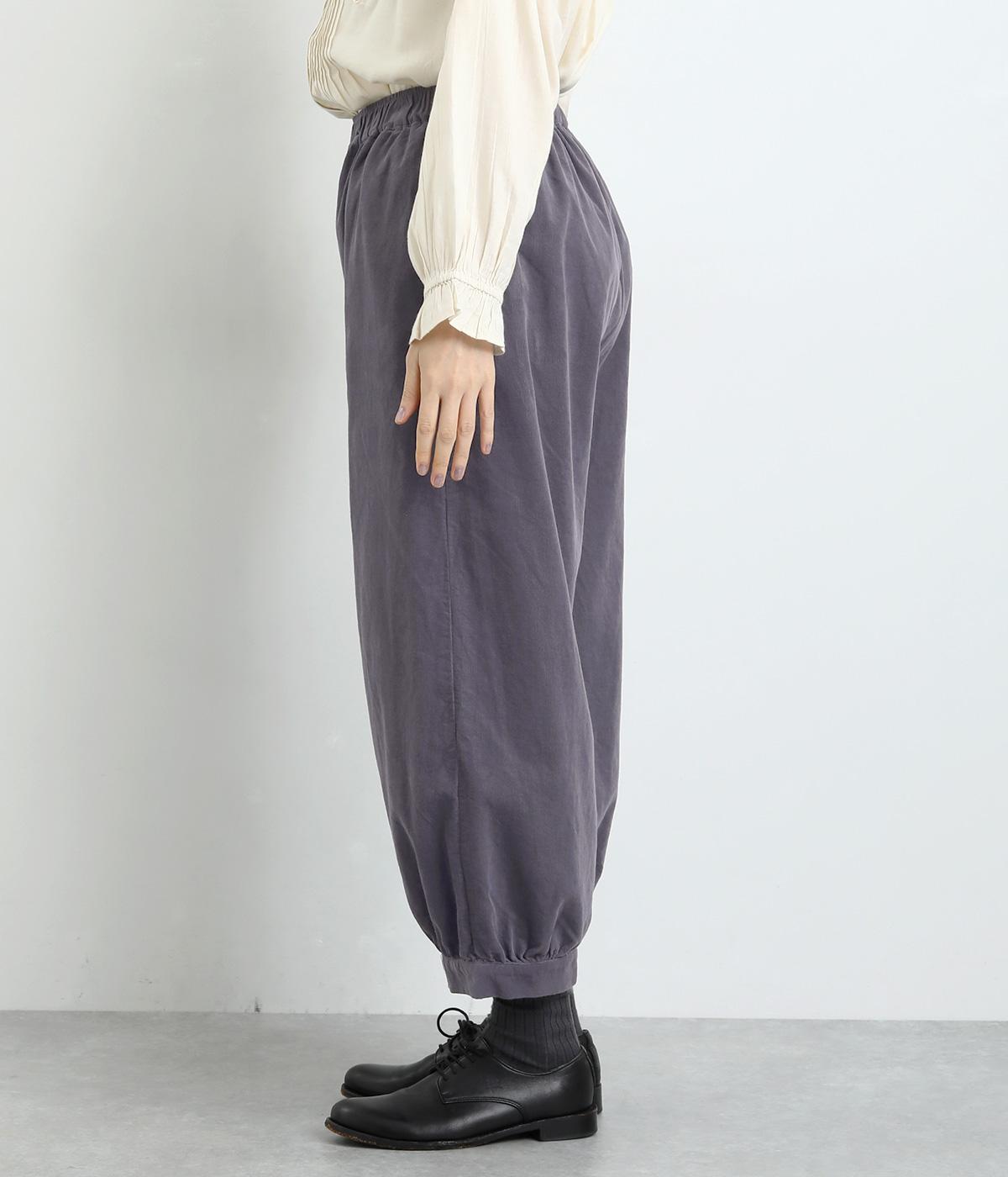 裾カフスとギャザーでゆったりとしたボリューム感とメリハリのあるシルエットが目を惹くコクーンパンツ。足首がすっきり見える丈感でスタイリングバランスも取りやすく、頼りになる一本。ウエストはオールゴムのリラックス仕様。