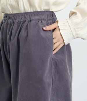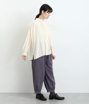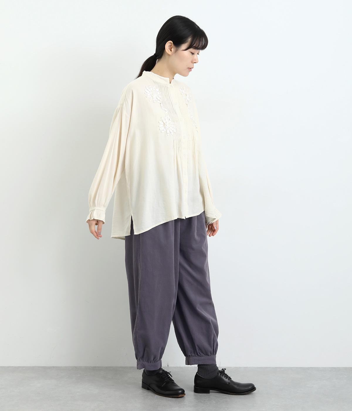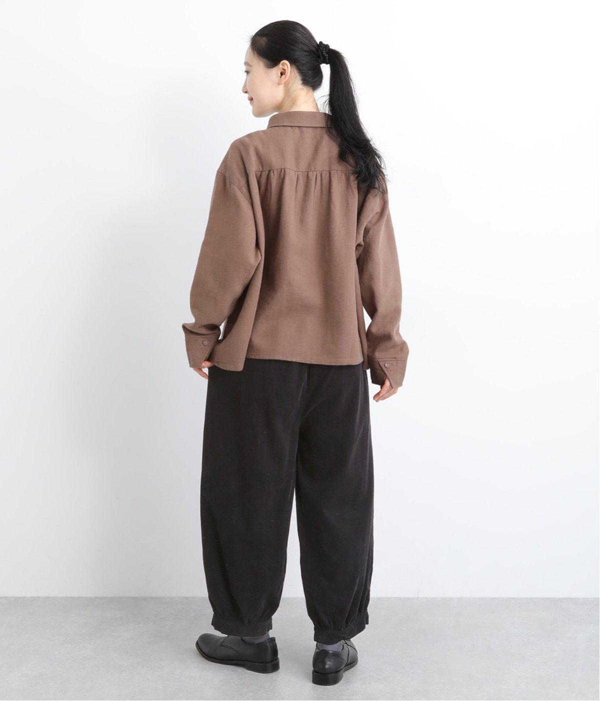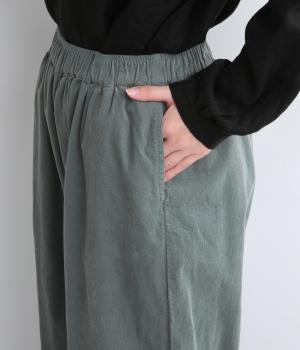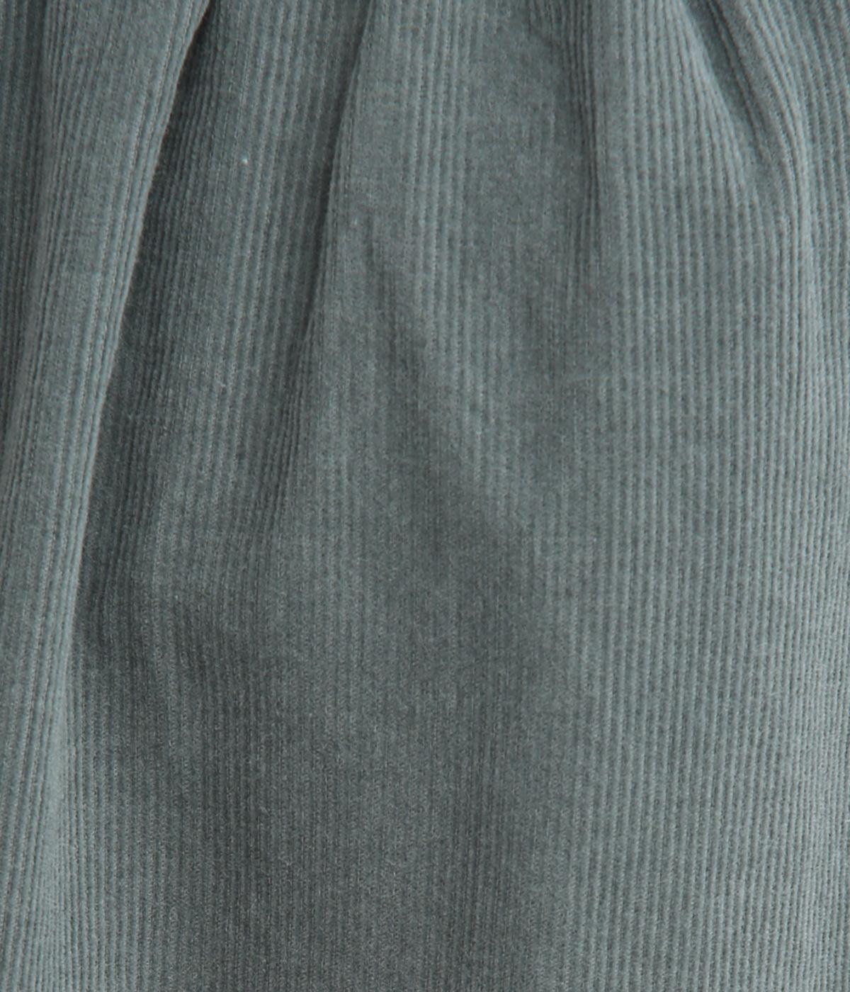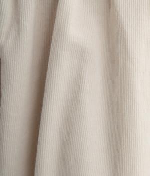 極細の畝が特徴的なコーデュロイ素材を使用しています。ふくらみのあるソフトな肌触りにあたたかみのある表情が特徴で、生地自体は肉厚すぎずデイリーにはきまわせます。