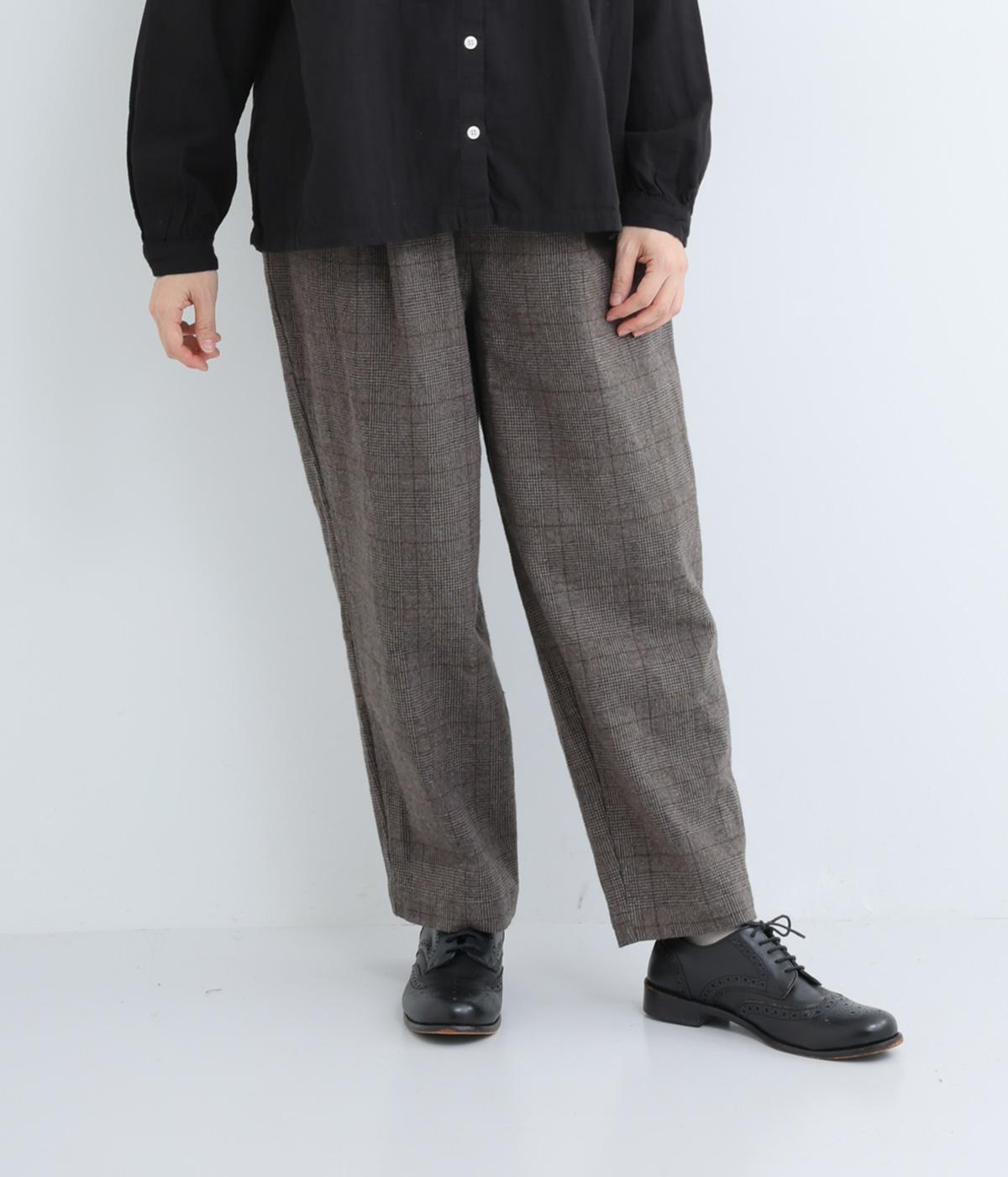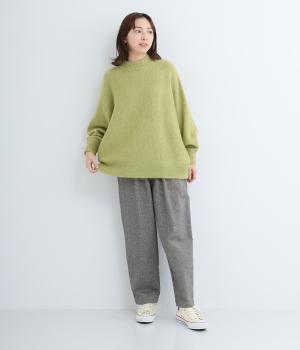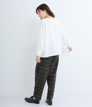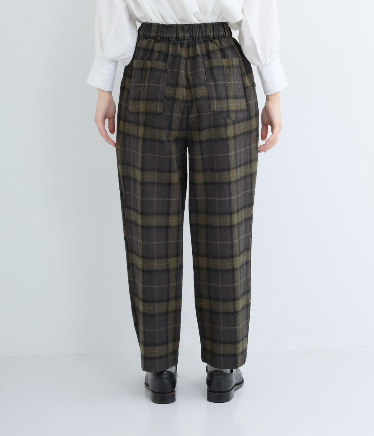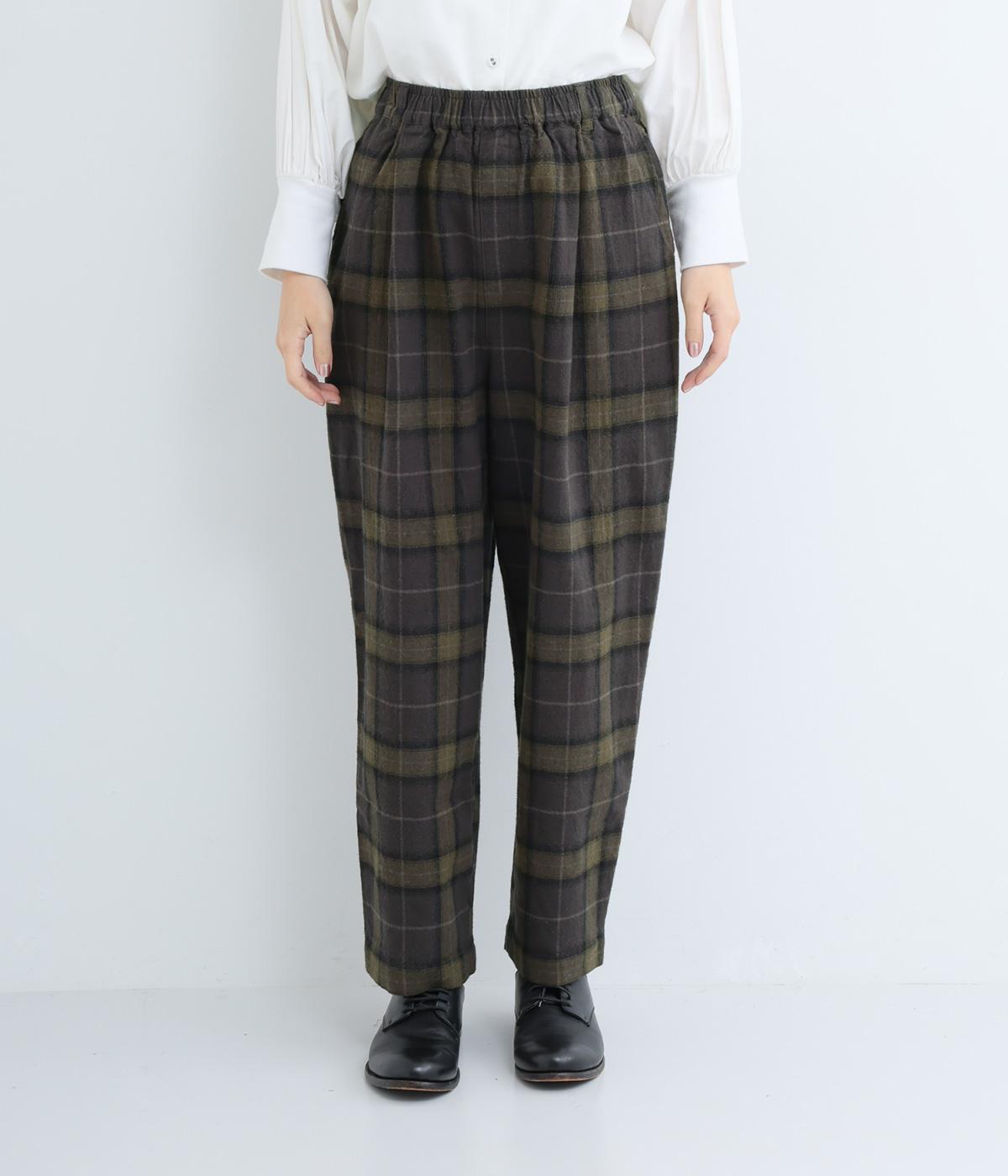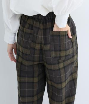 裾に向かって細くなるシルエットが特徴のテーパードパンツ。ほどよい起毛感で、あたたかみを演出しました。太ももまわりがゆったりしているので、体のラインを拾わないのも◎。ウエストは、ストレスフリーな一周ゴムです。
