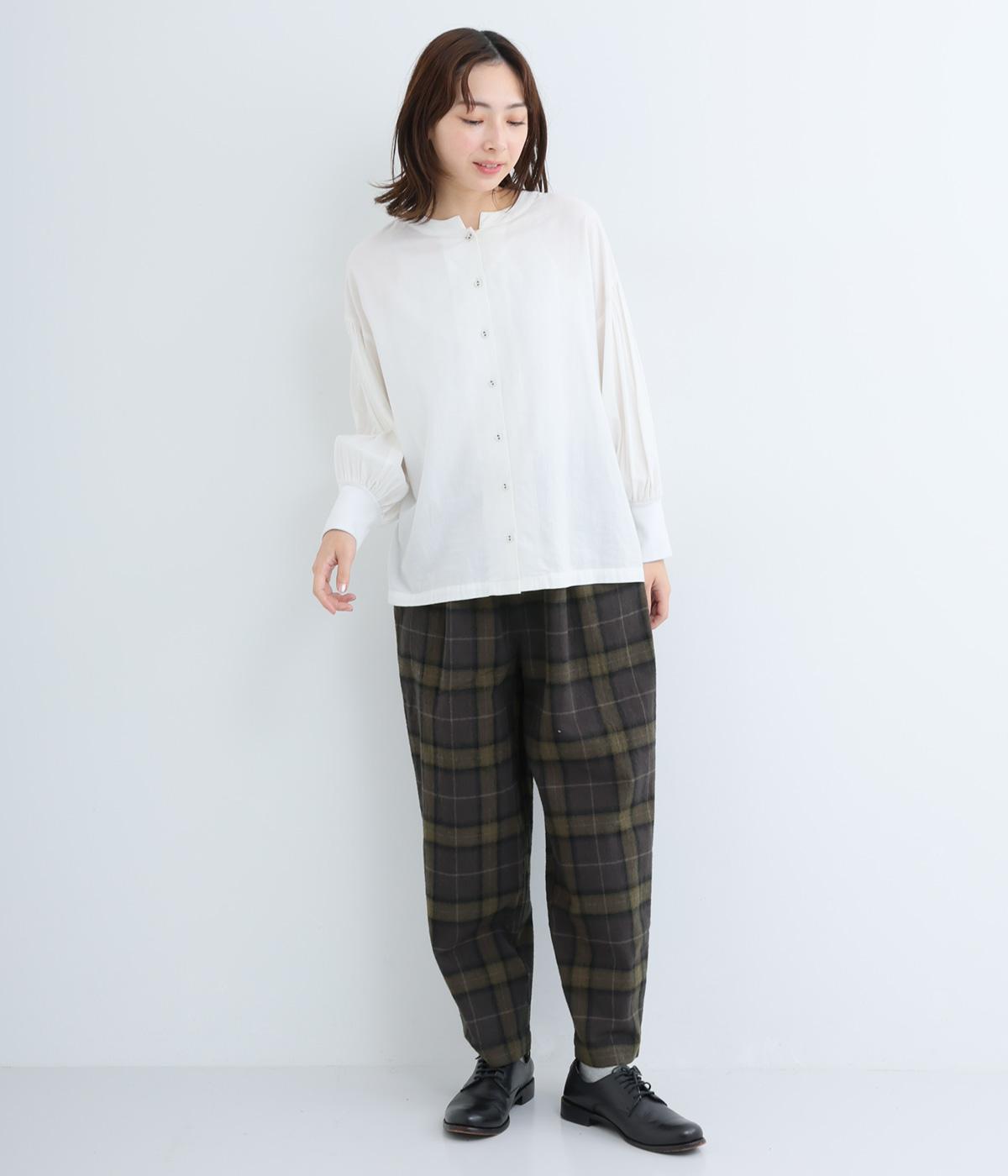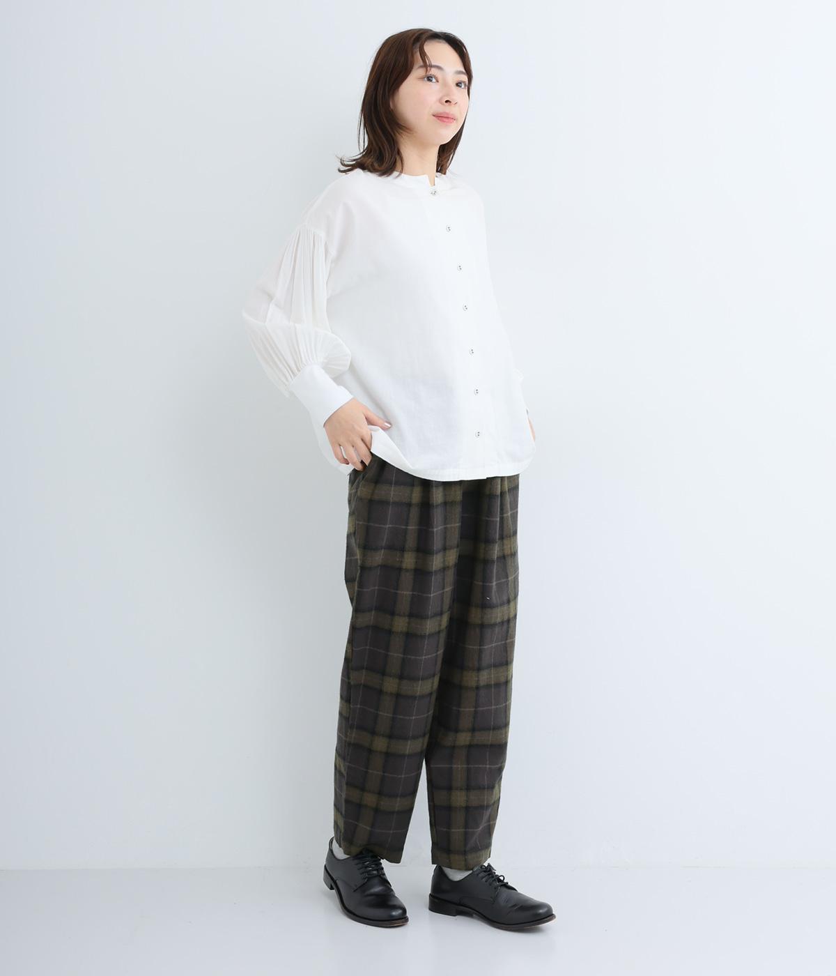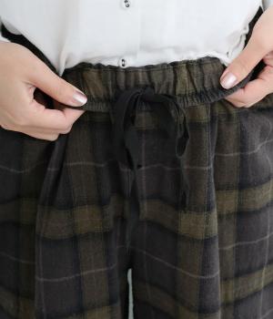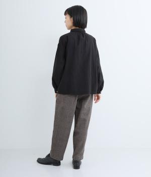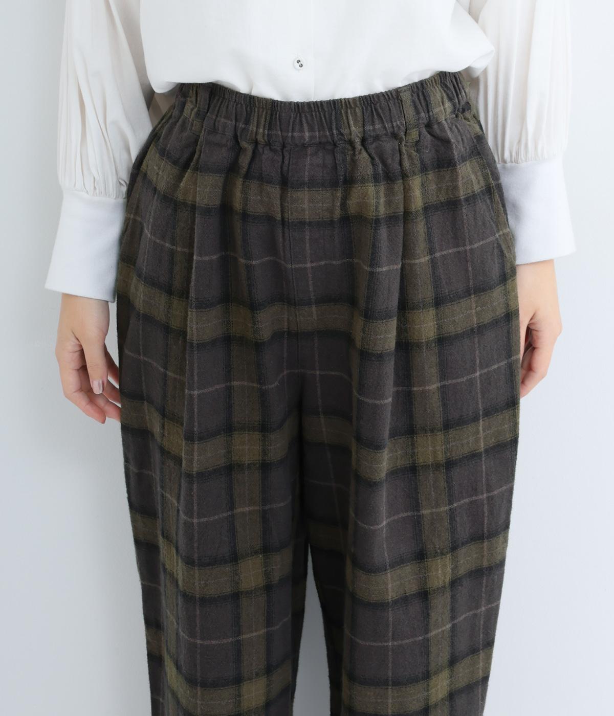 裾に向かって細くなるシルエットが特徴のテーパードパンツ。ほどよい起毛感で、あたたかみを演出しました。太ももまわりがゆったりしているので、体のラインを拾わないのも◎。ウエストは、ストレスフリーな一周ゴムです。