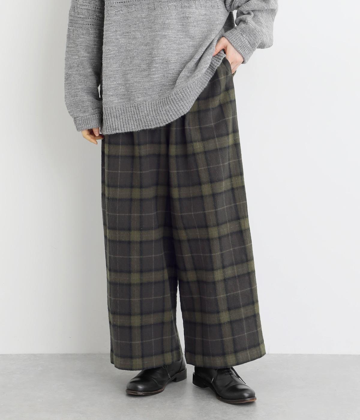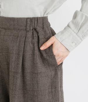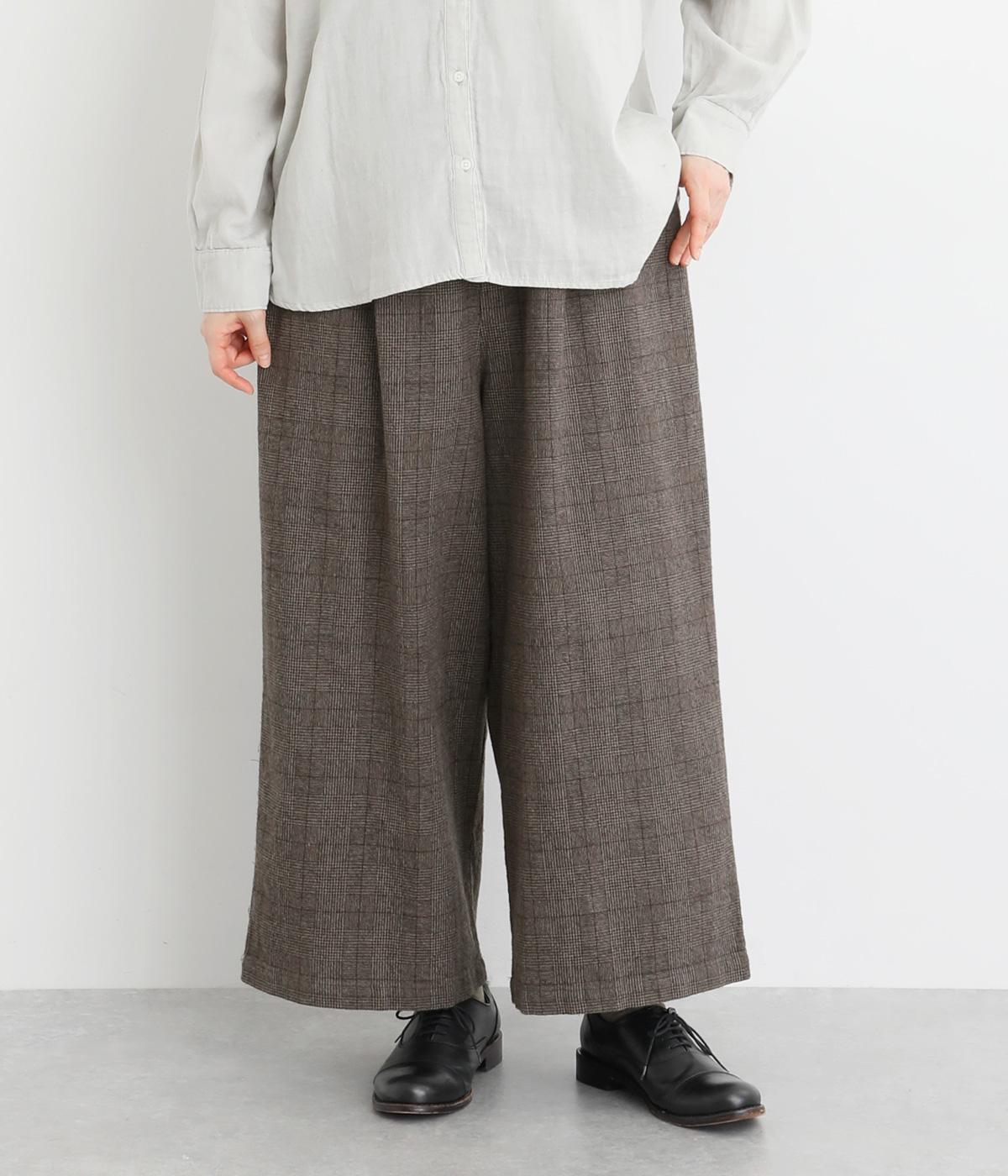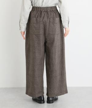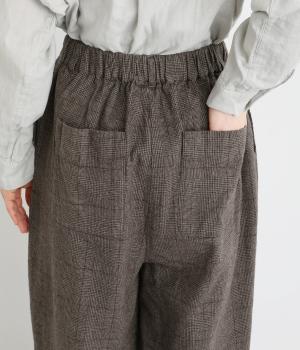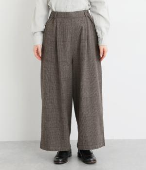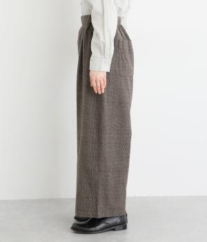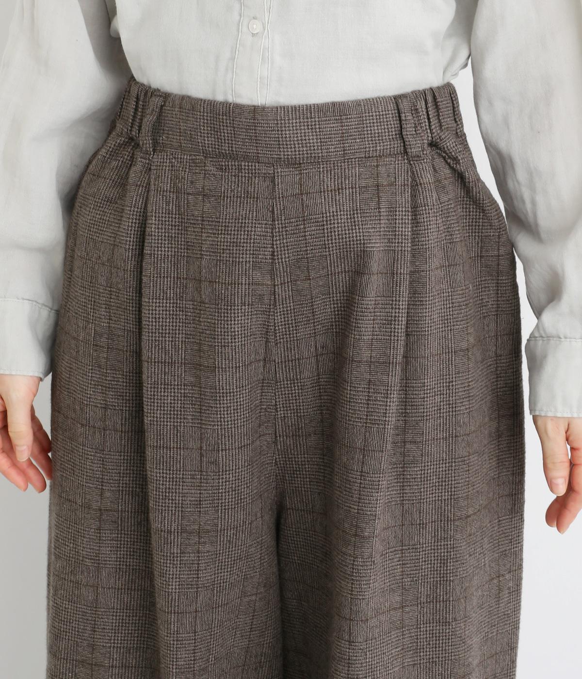 ウエストまわりにはタックを入れ、腰まわりをゆったりとつつむリラックス感のあるデザインです。深めの股上で安心感があり、裾に向かってストンと落ちるストレートシルエットが上品な印象をあたえます。ウエストは総ゴム仕様で、デイリーに使いやすい一本です。