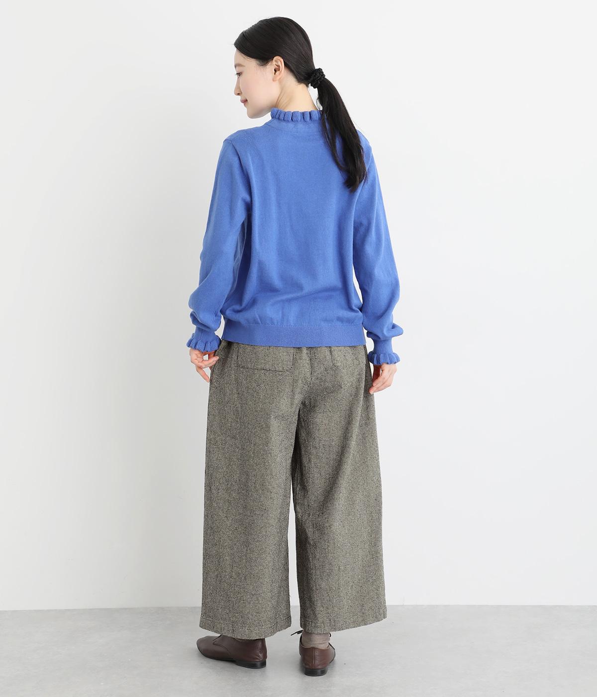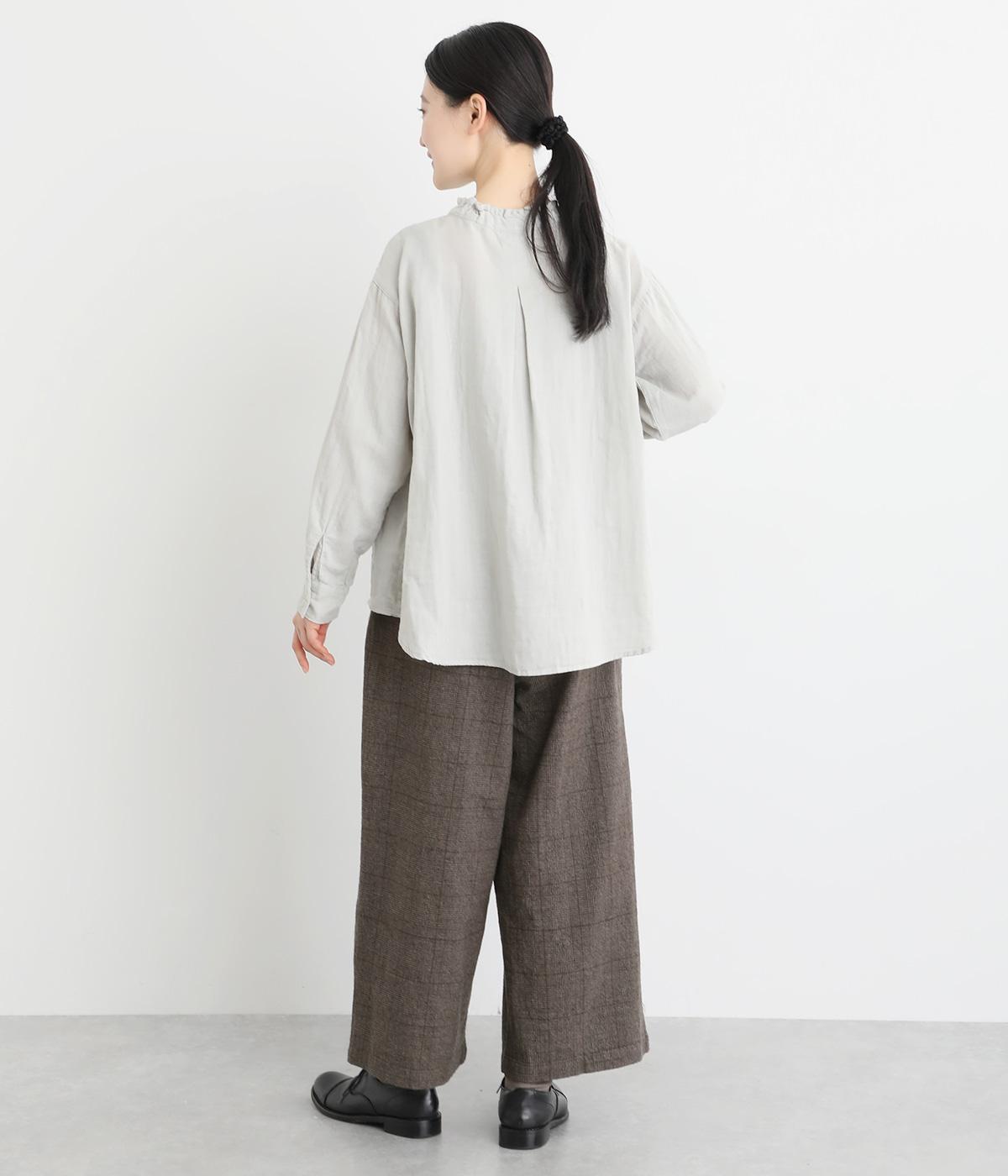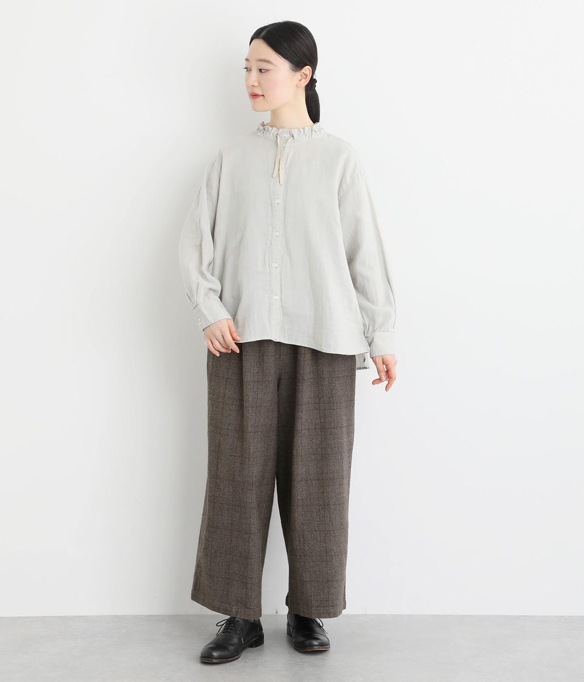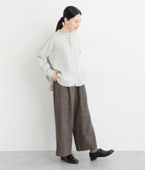 太番手の糸をしっかりと平織にし、ほどよい厚みとハリ感を持たせたコットンリネン素材です。表面を起毛させることで、ふんわりとやわらかなタッチに仕上げています。やさしい風合いとナチュラルな表情が、着るほどになじむ心地よさです。