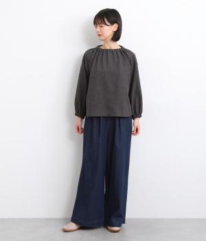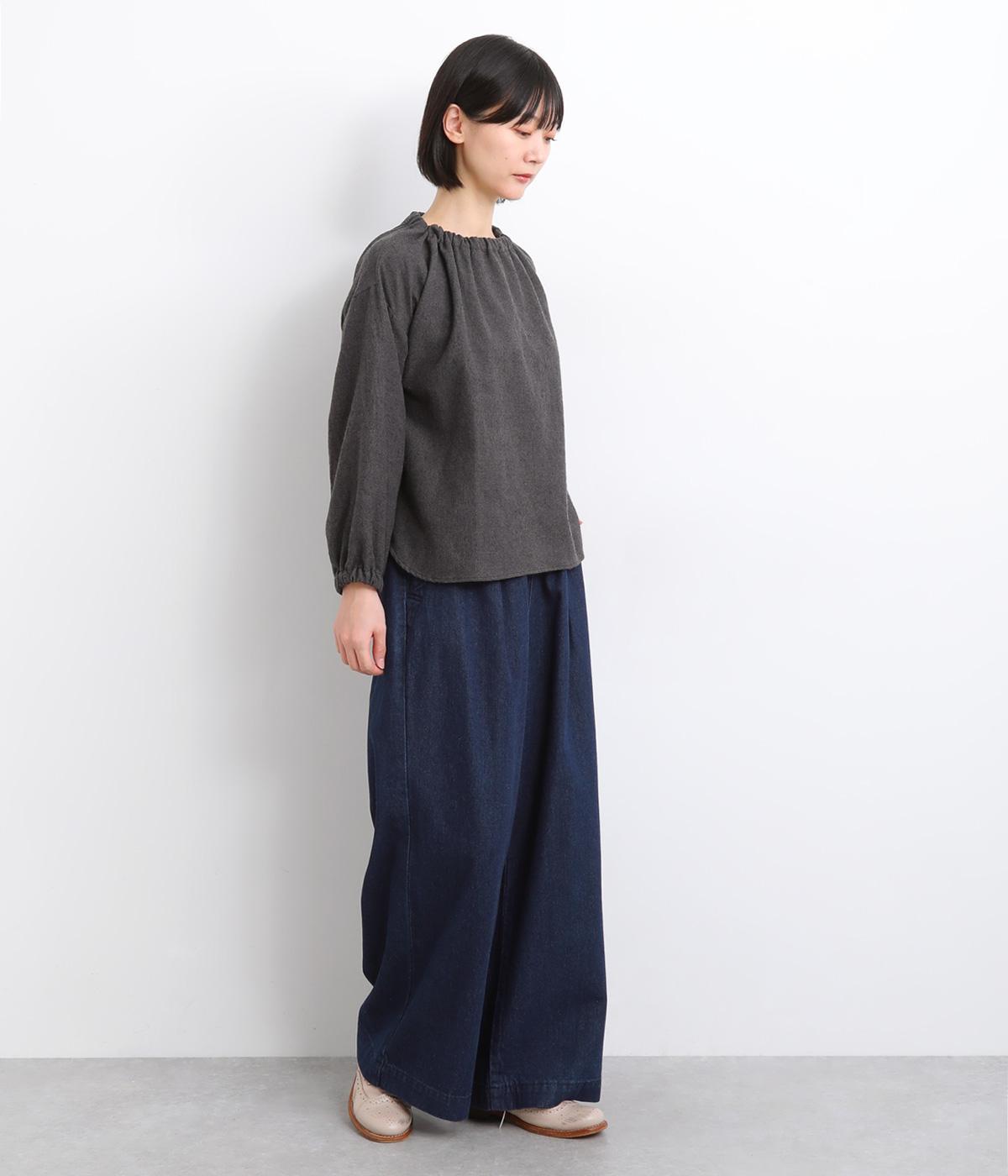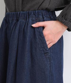 軽やかなのにしっかりとした質感を持つコットンデニムを使用しました。やわらかさがありつつ、デニム特有のほどよい厚みとハリがあるので、シルエットがきれいに整います。