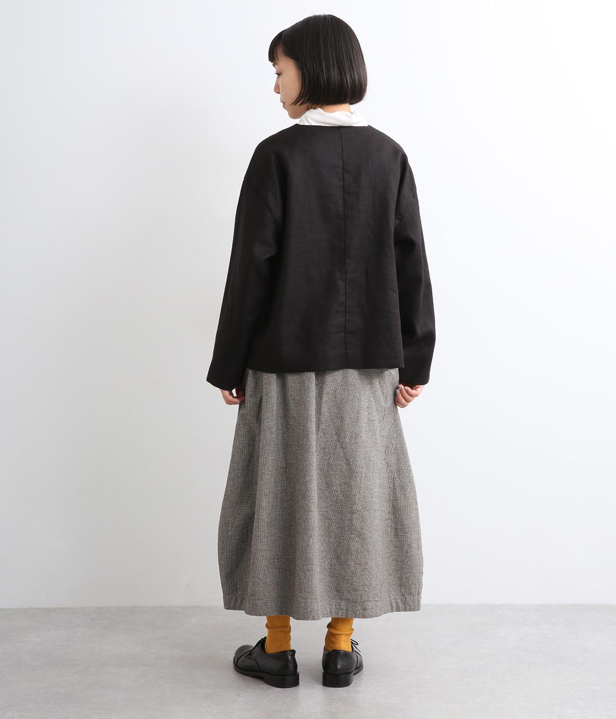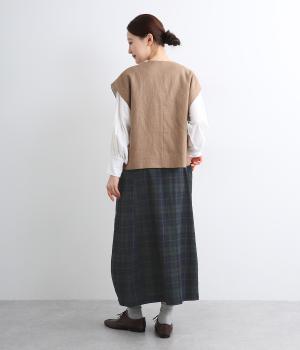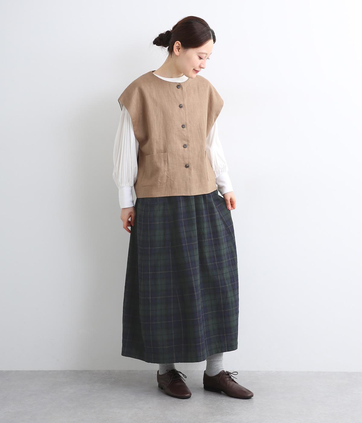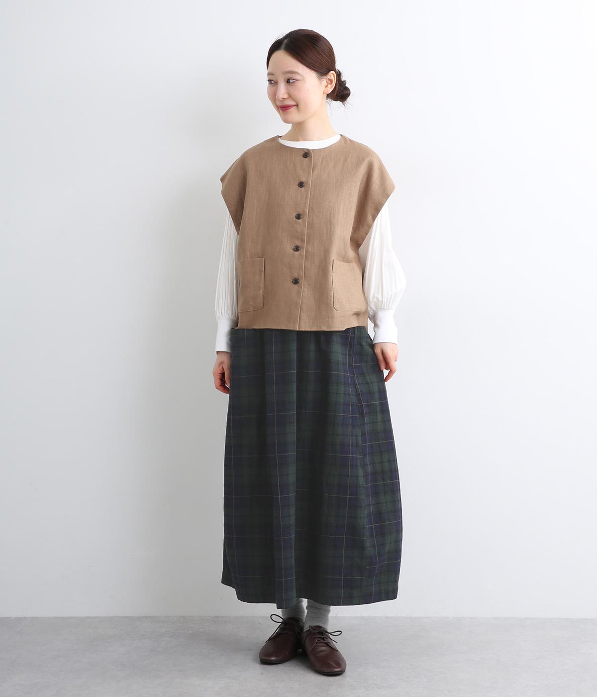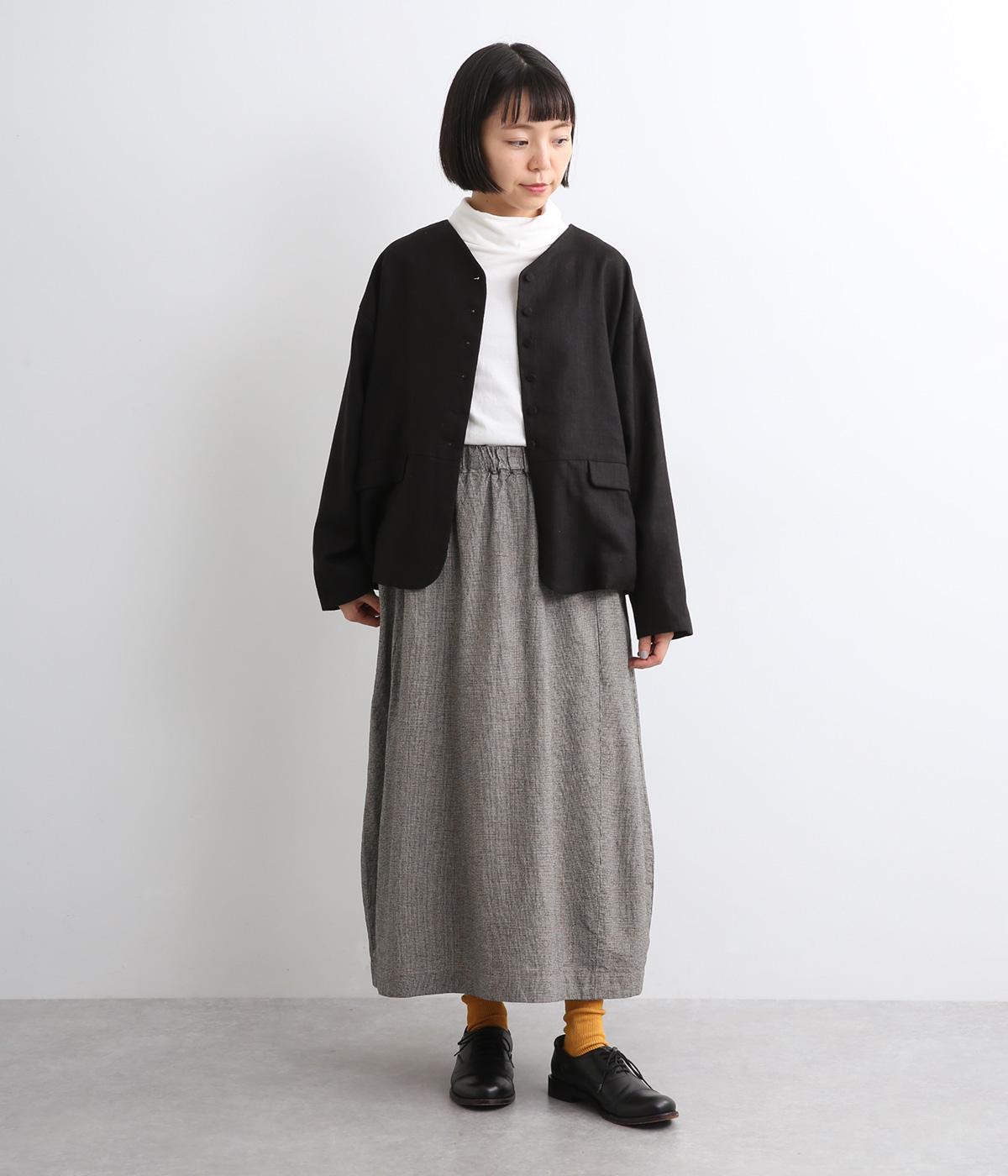 ゆったりした腰回りと裾に向かってしぼまるシルエットのコクーンスカートです。両サイドにあるビックポケットがアクセント。体のラインを拾いにくく、リラックス感のある着心地です。ウエストは総ゴム仕様で紐で調整可能です。