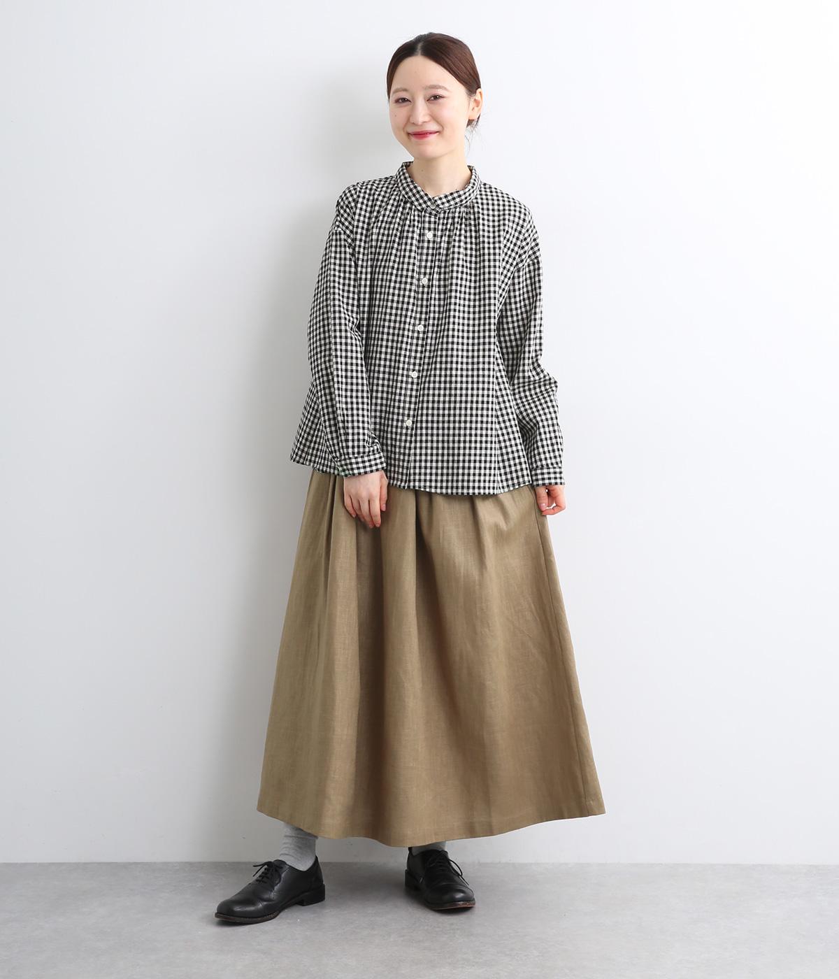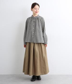ほどよいハリとコシを持ちつつ、やわらかな肌ざわりのコットンリネンツイル生地を使用しました。ナチュラルで上品な風合いが魅力で、軽やかな着心地が特徴です。