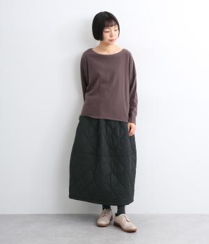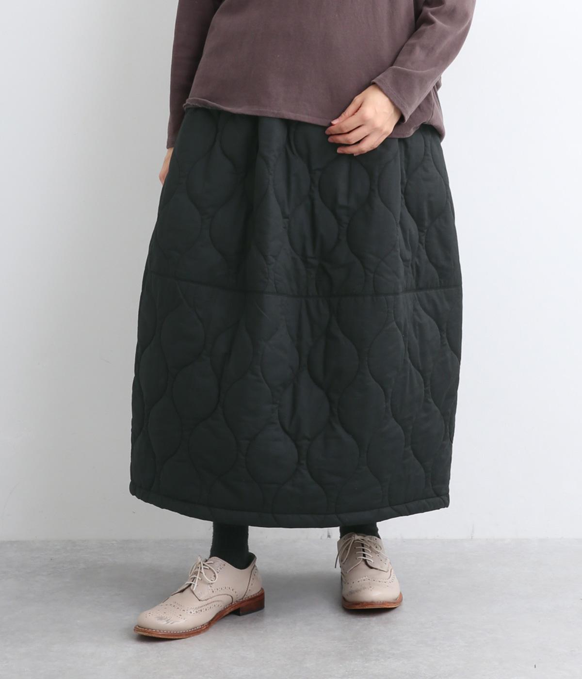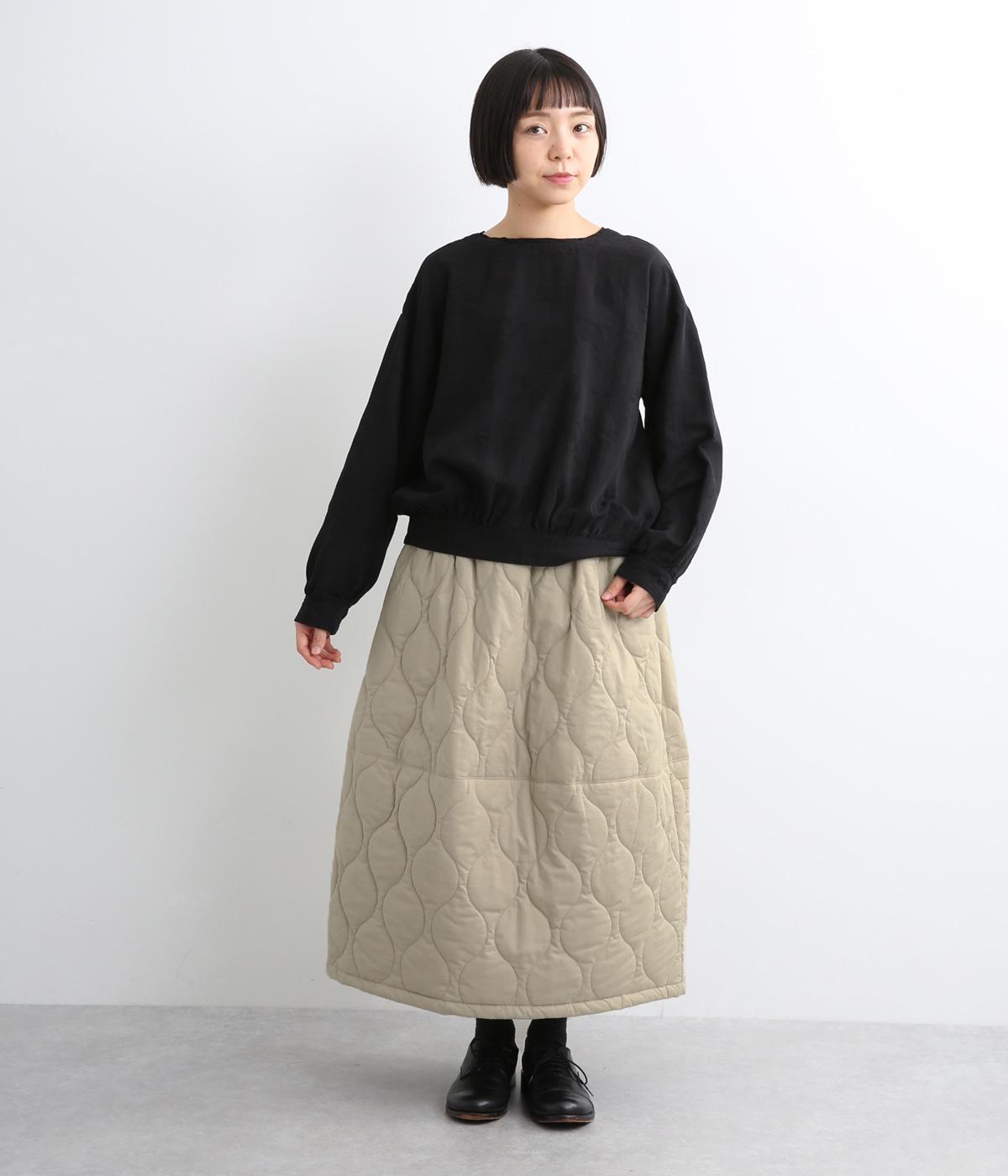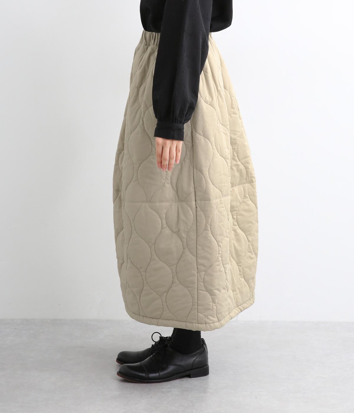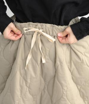 切り替えを入れた立体感のあるボリュームシルエットが特徴的なスカート。足首がすっきり見える丈感で重たすぎず、カジュアルスタイルにはまります。ウエストはゴム仕様の内紐入りでサイズ調整が可能です。