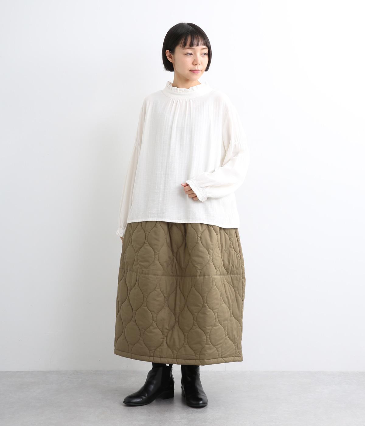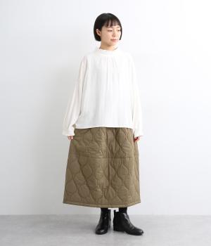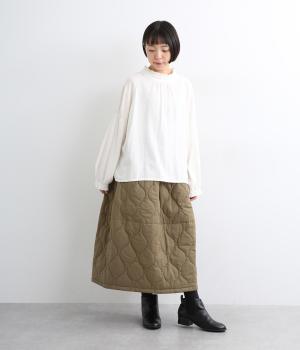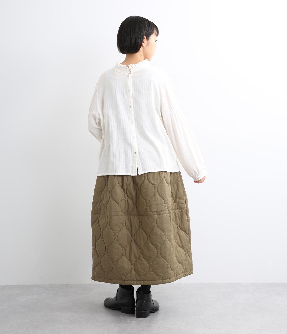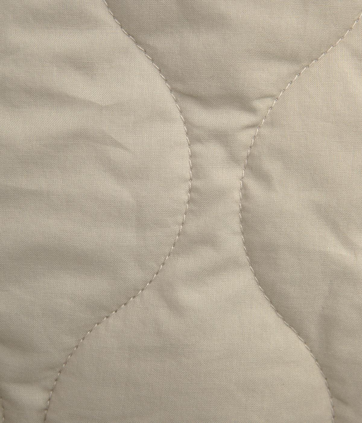 さらっとした肌触りにドライな表面感が特徴的なコットンの中綿入りキルティングを使用。肌に触れる裏面もコットンでナチュラルで着こなしやすい生地感です。
