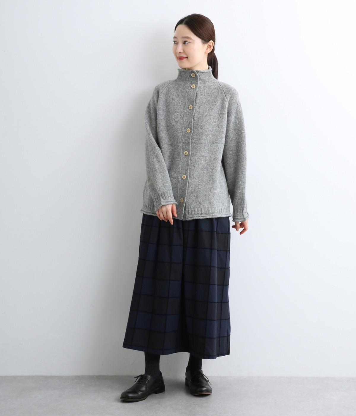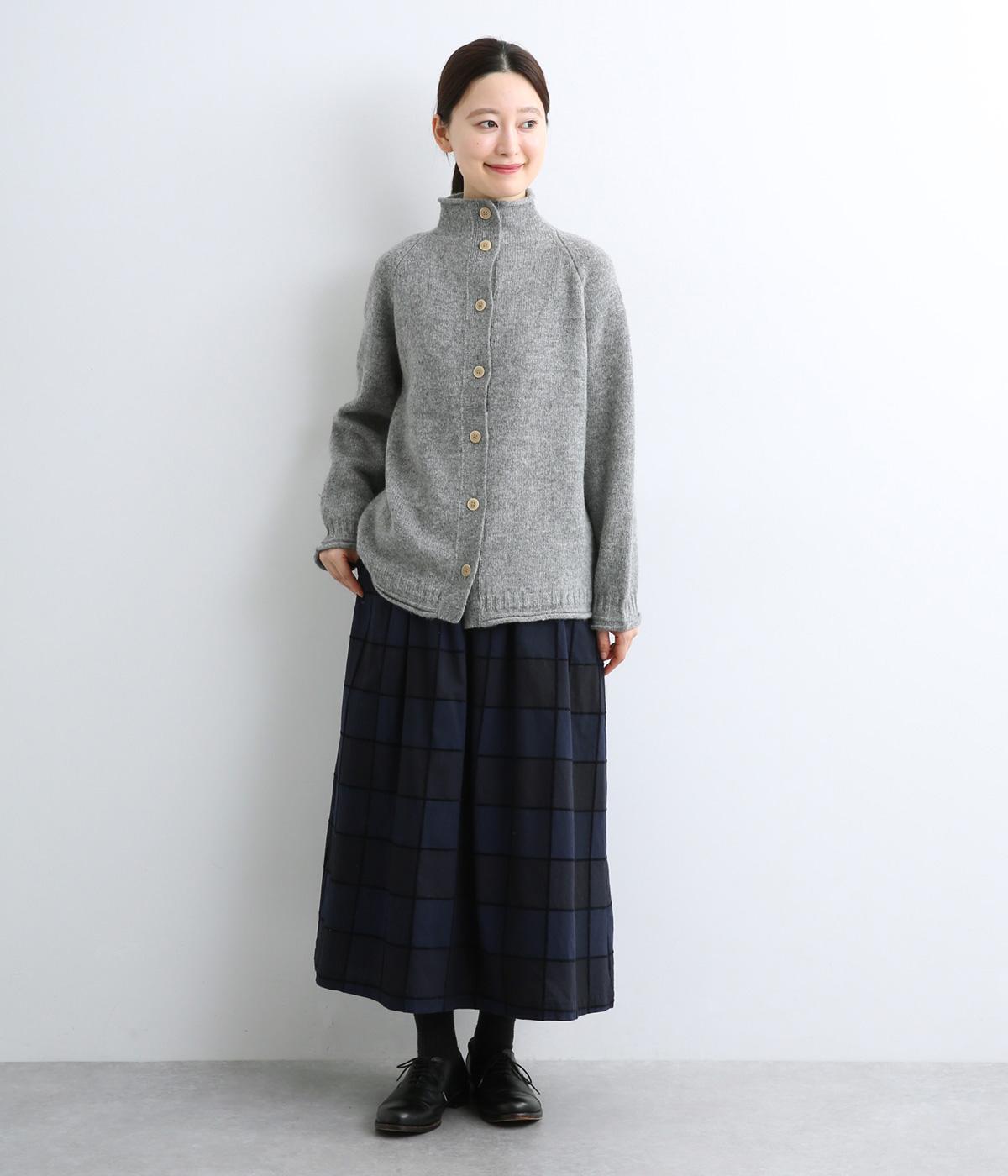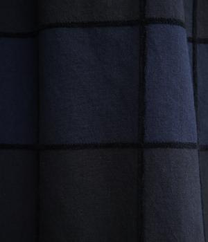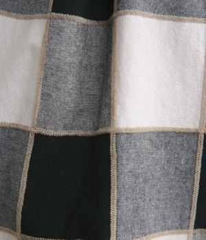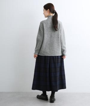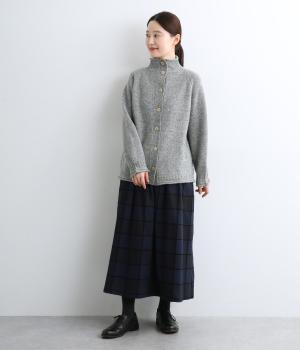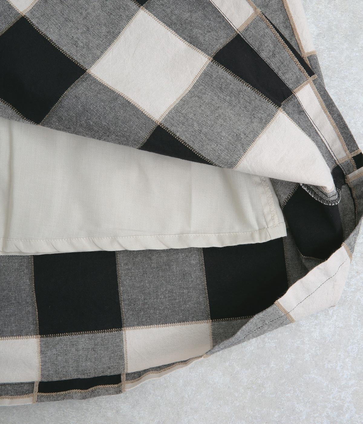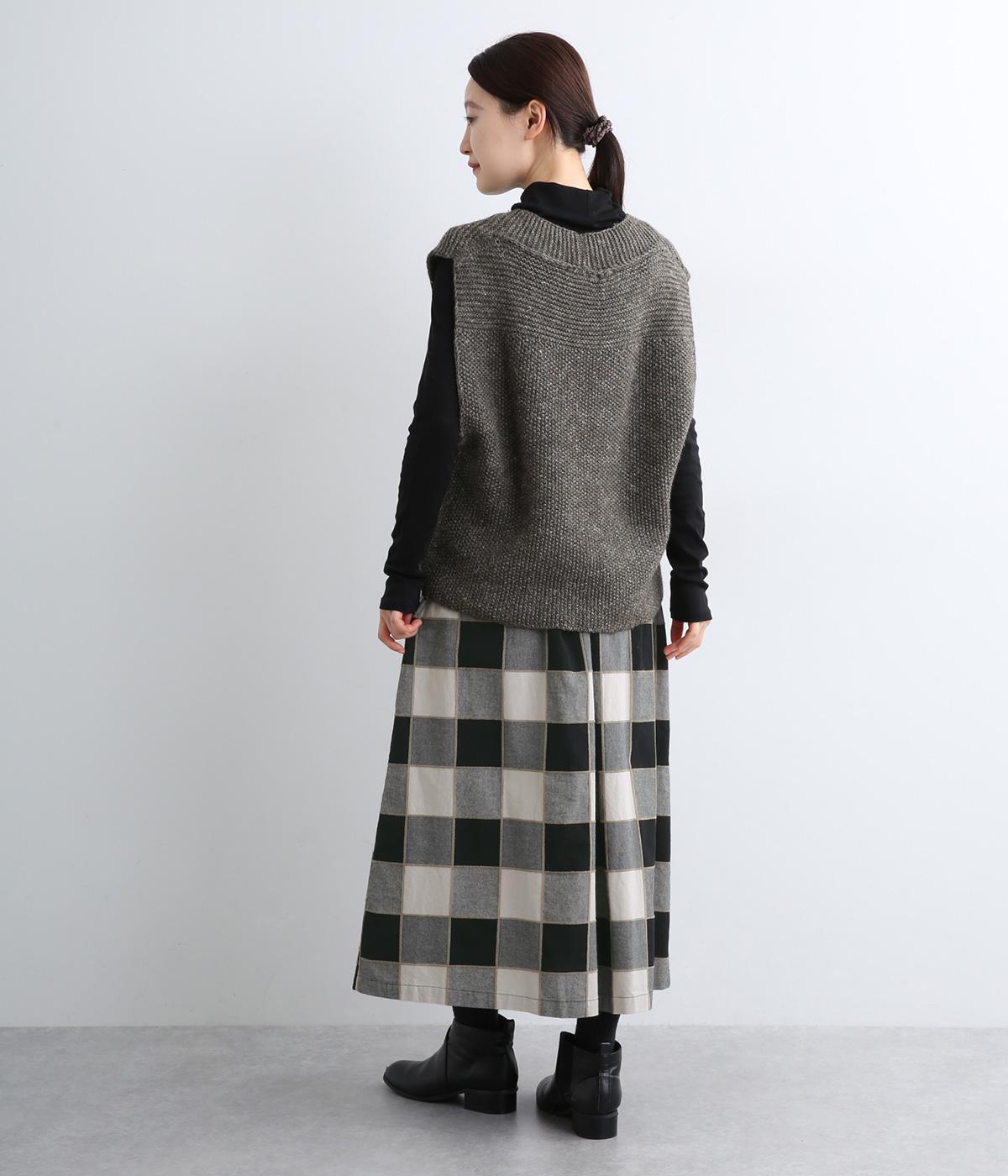 コットンモール糸でブロッキングしたチェック柄が特徴的なギャザースカート。ウエストはゴム+内紐仕様で、ギャザーがたっぷり入っているのでリラックスしたはき心地に。存在感を出しながらもすっきりとした丈感です。