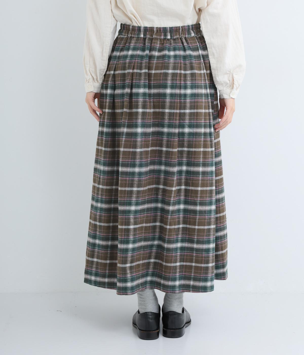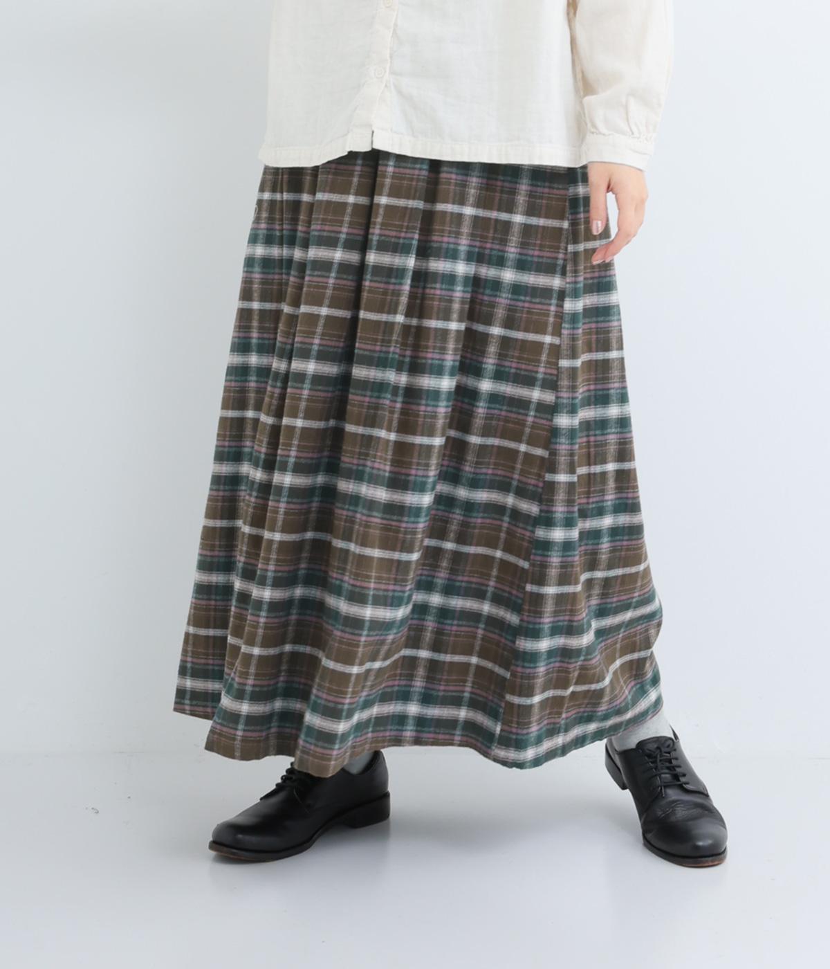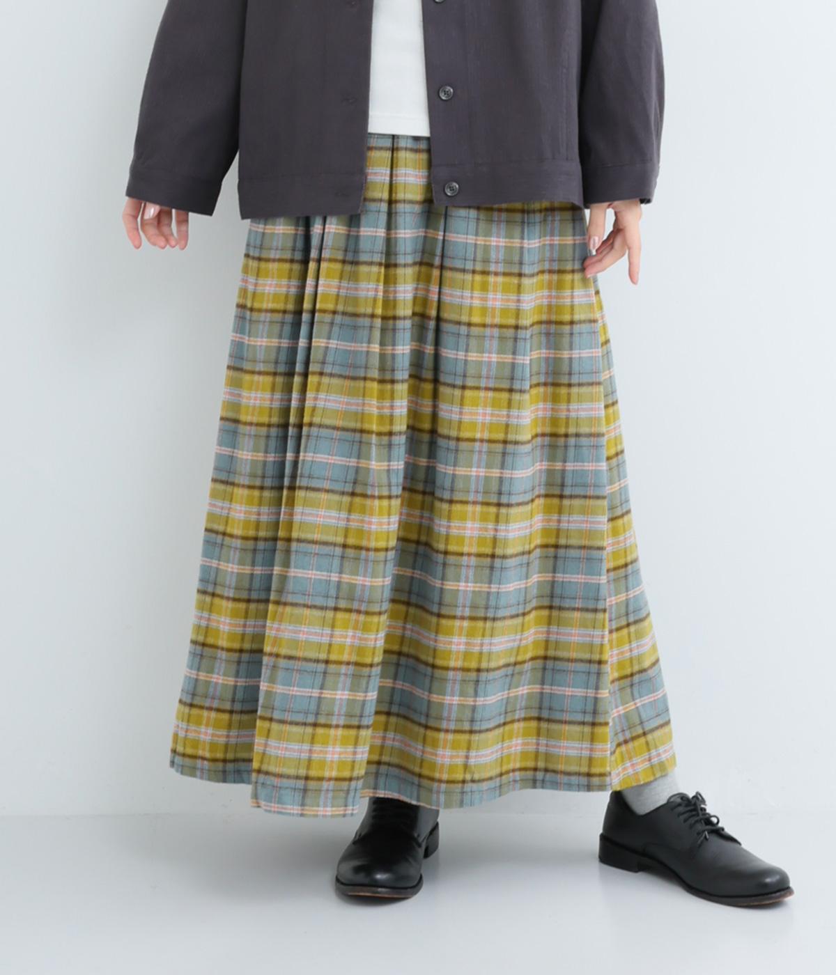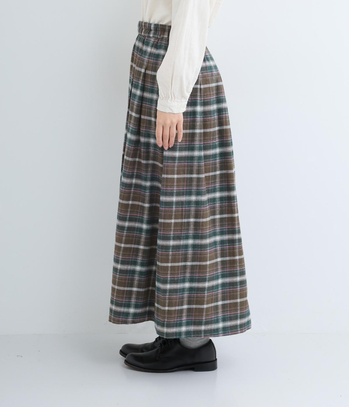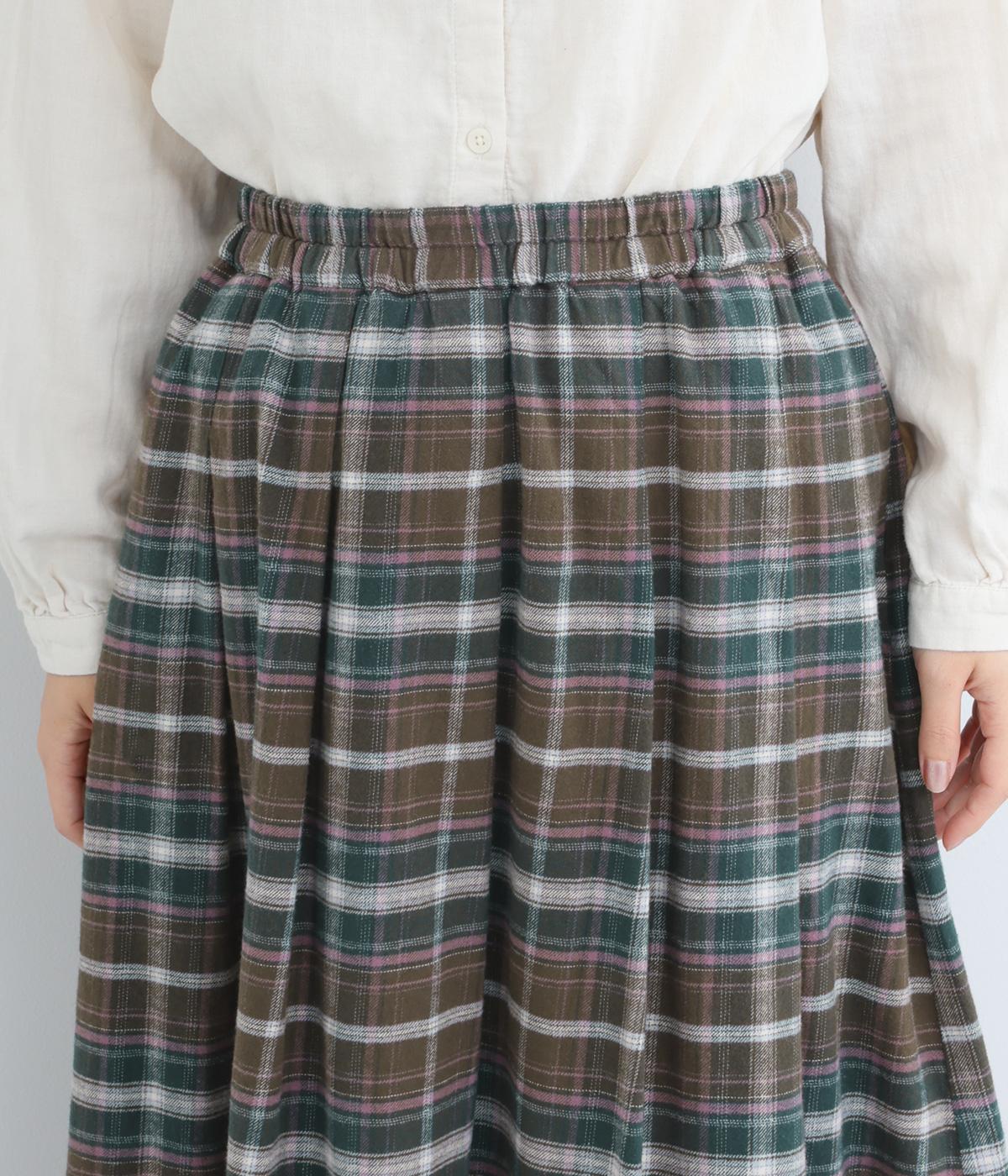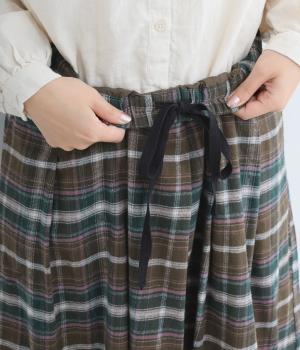 ウエストから裾にかけて、ゆるやかに広がるAラインシルエットのロングスカート。タックを入れてきれいな形状をキープ。気になる体形を上手にカバーしてくれます。両サイドにポケットつき。ウエストは一周ゴム仕様です。