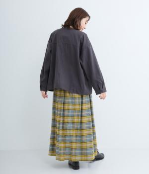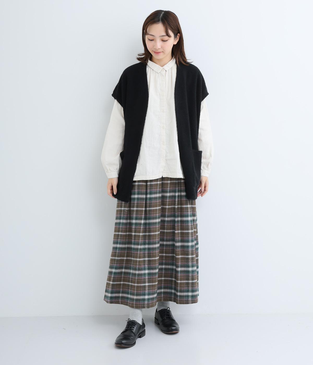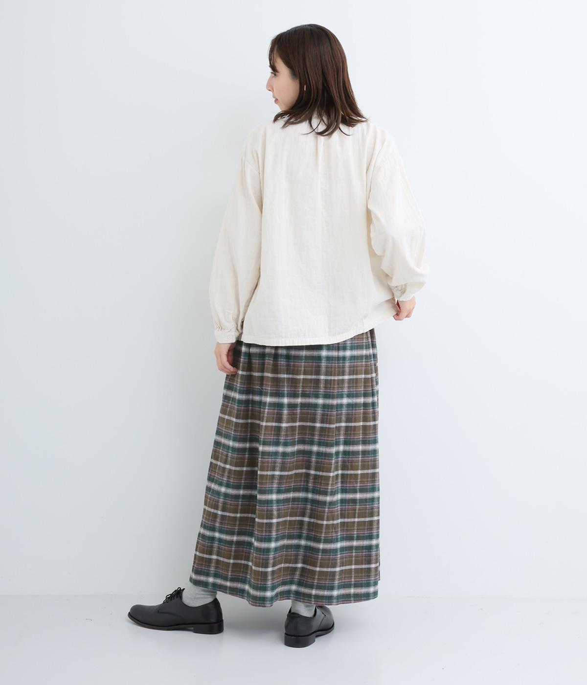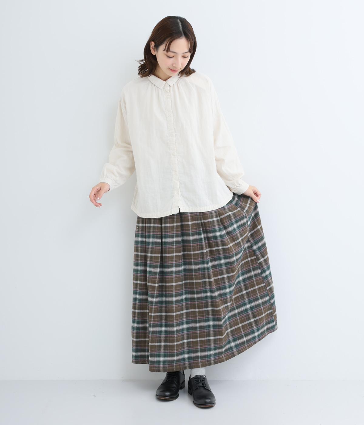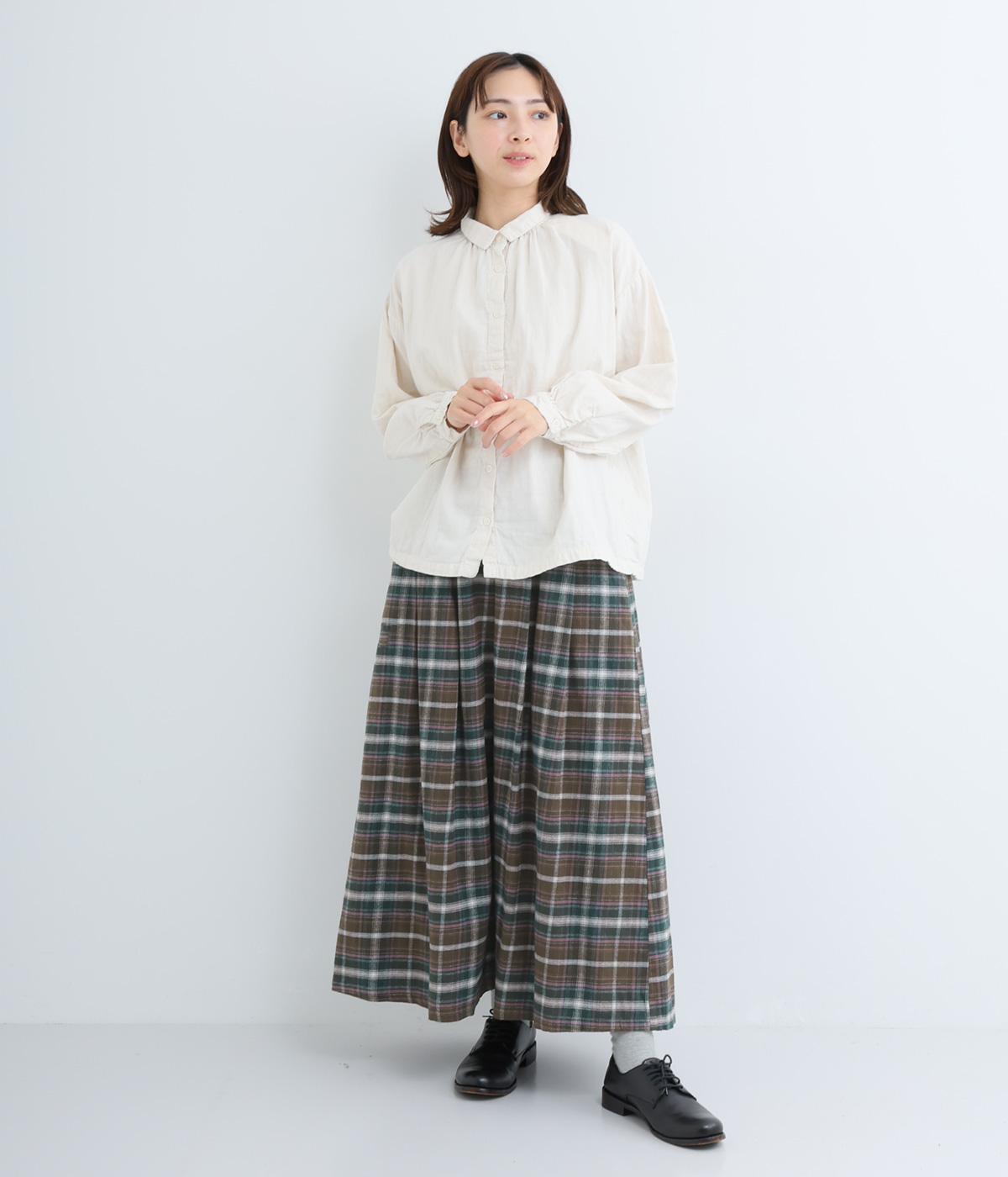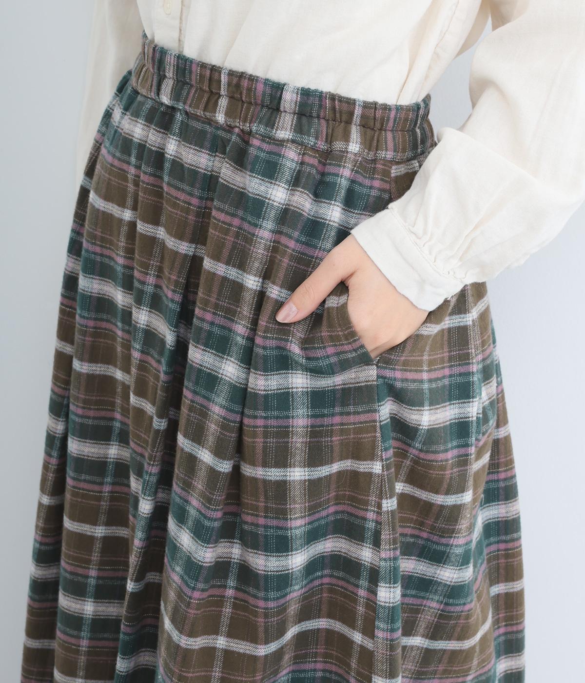 ウエストから裾にかけて、ゆるやかに広がるAラインシルエットのロングスカート。タックを入れてきれいな形状をキープ。気になる体形を上手にカバーしてくれます。両サイドにポケットつき。ウエストは一周ゴム仕様です。