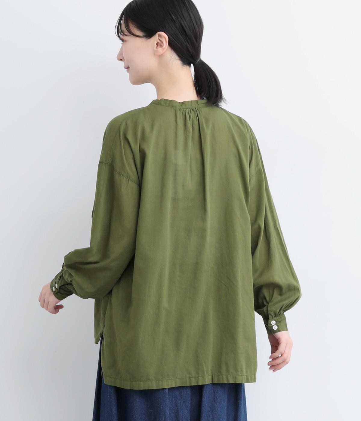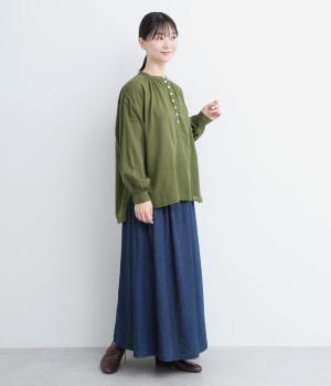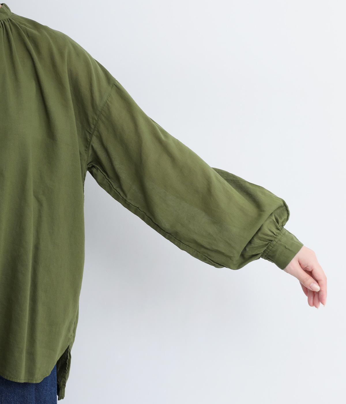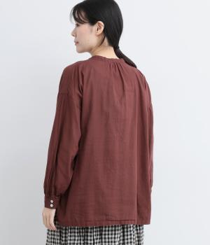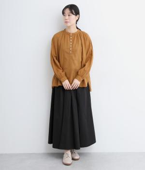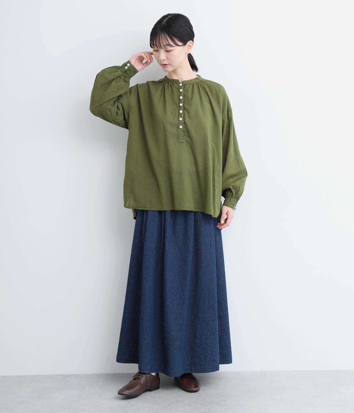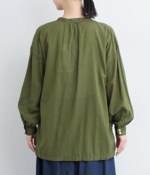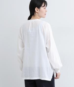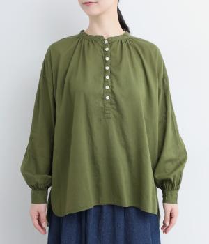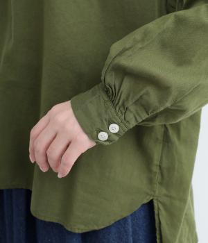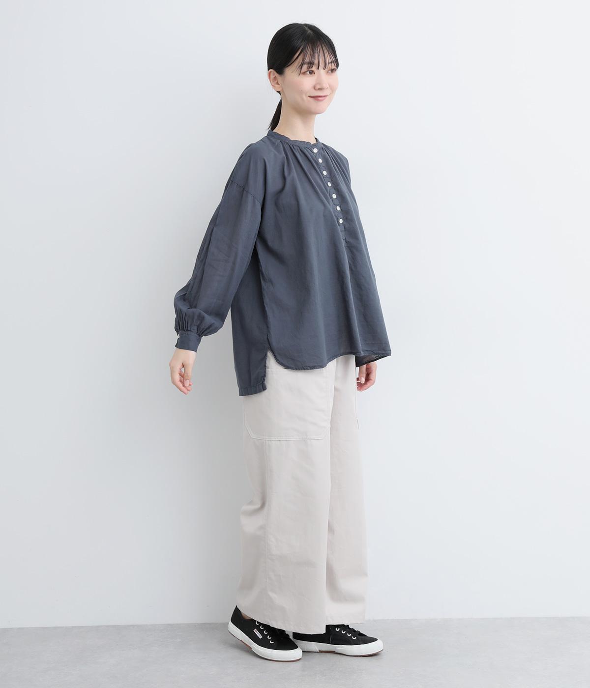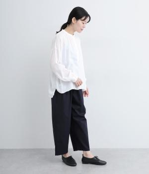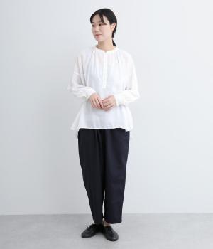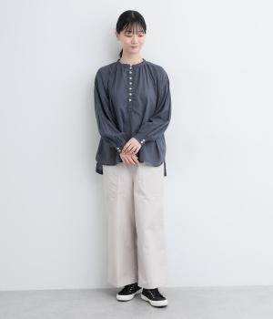 ひかえめなスタンドカラーとフロントに並んだボタンがアクセント。首元をさりげなくカバーしつつ、すっきりと見せられる絶妙なバランスに仕上げています。ほのかにボリュームをもたせた袖ラインも魅力。