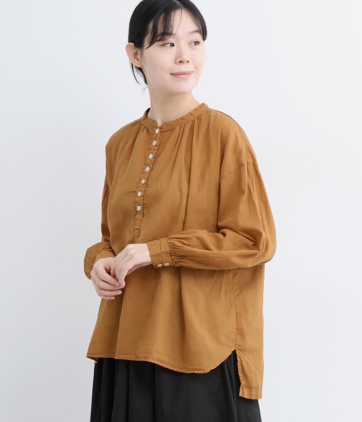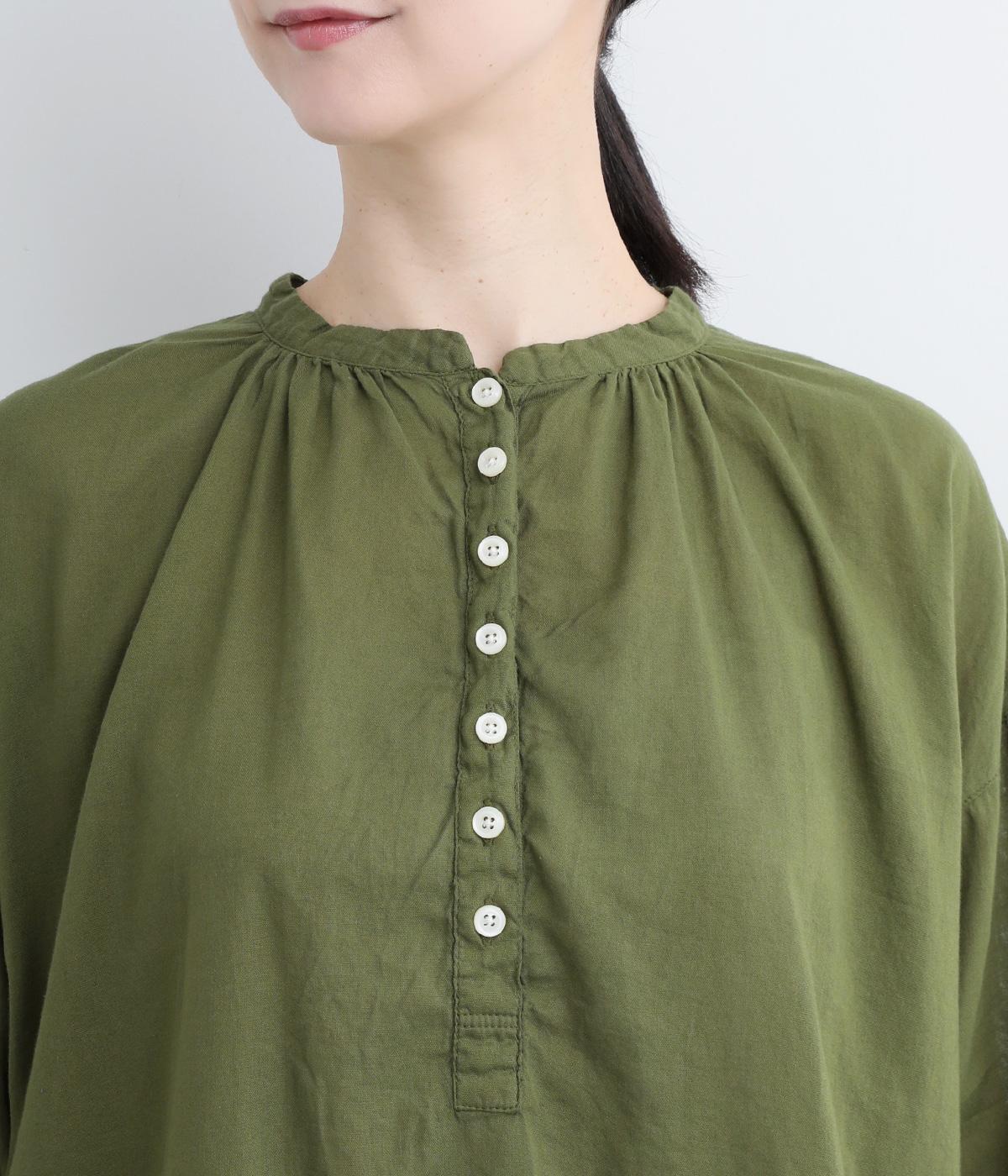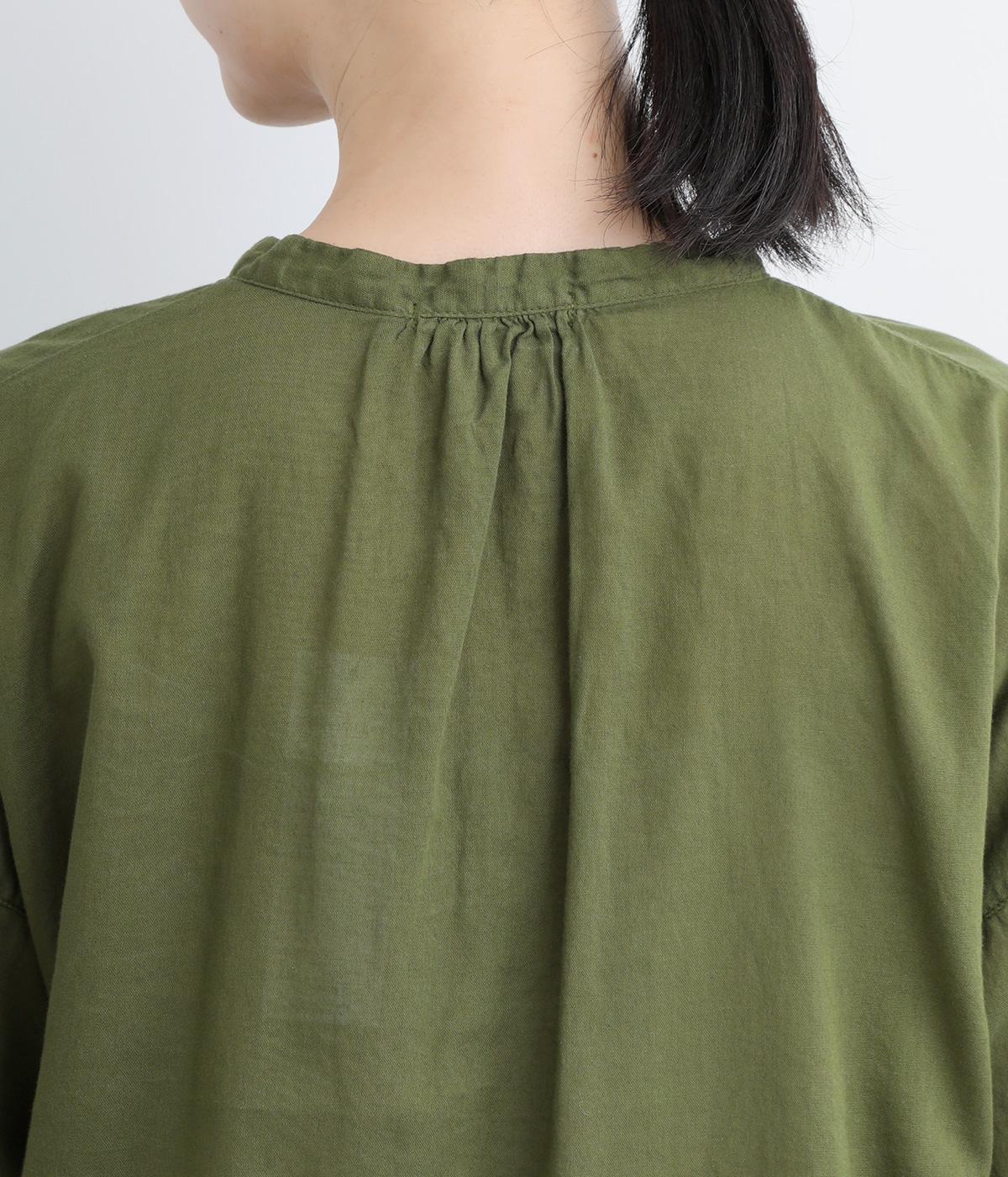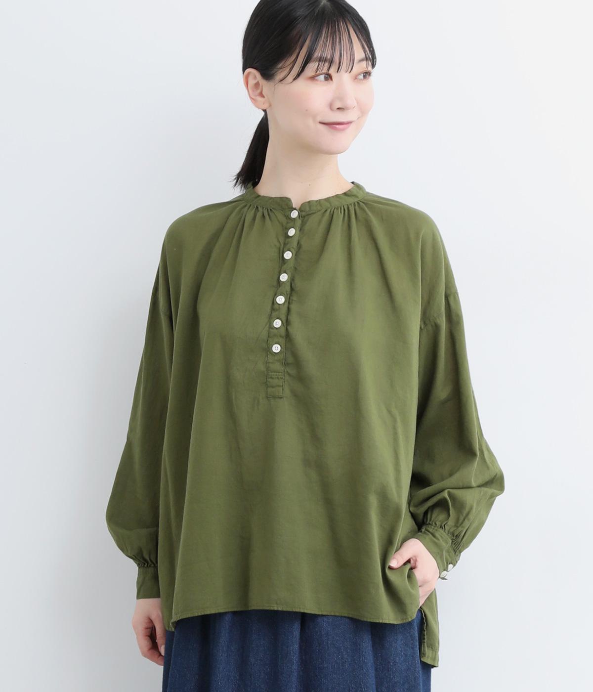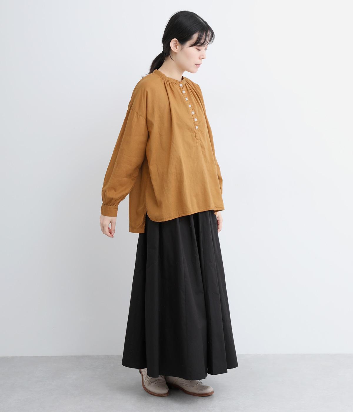 ひかえめなスタンドカラーとフロントに並んだボタンがアクセント。首元をさりげなくカバーしつつ、すっきりと見せられる絶妙なバランスに仕上げています。ほのかにボリュームをもたせた袖ラインも魅力。