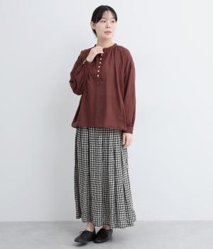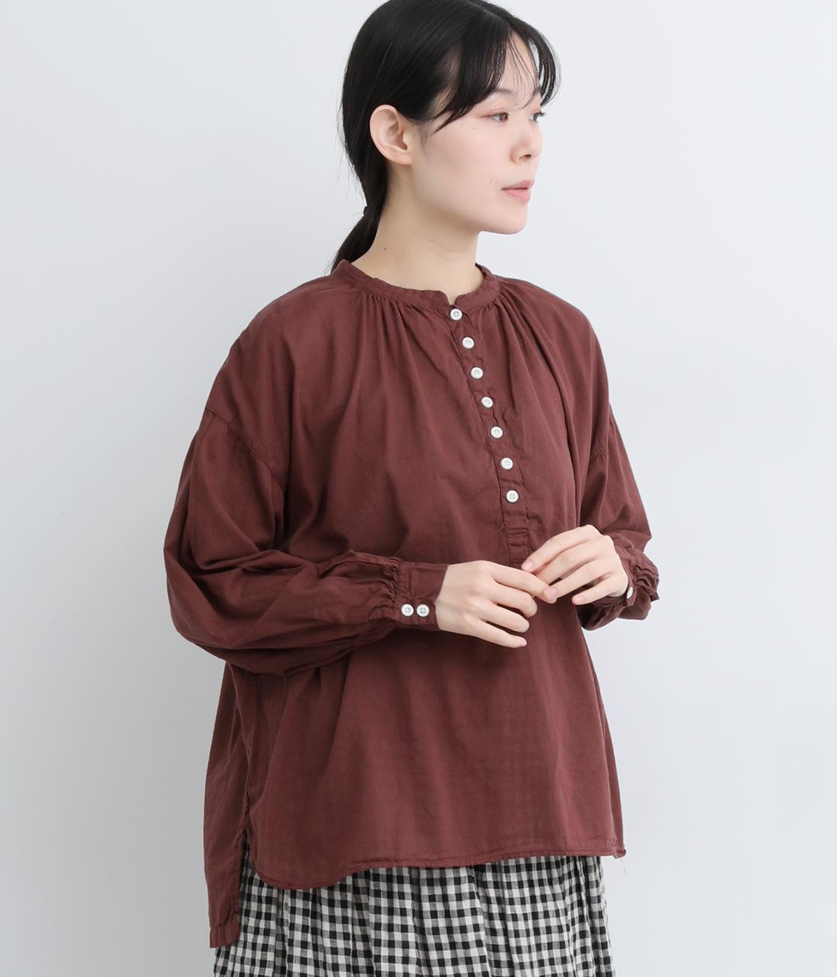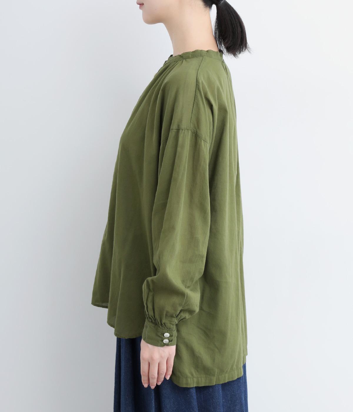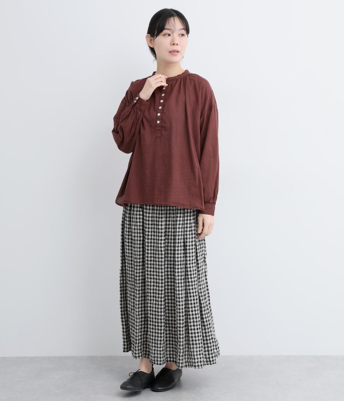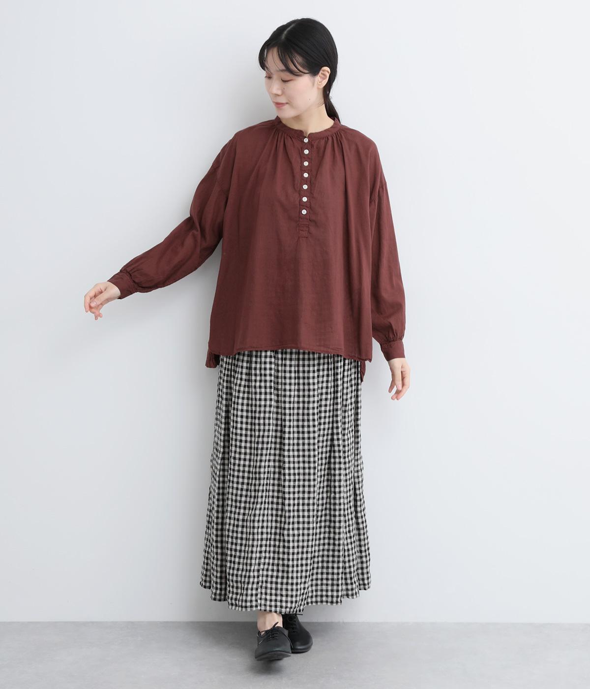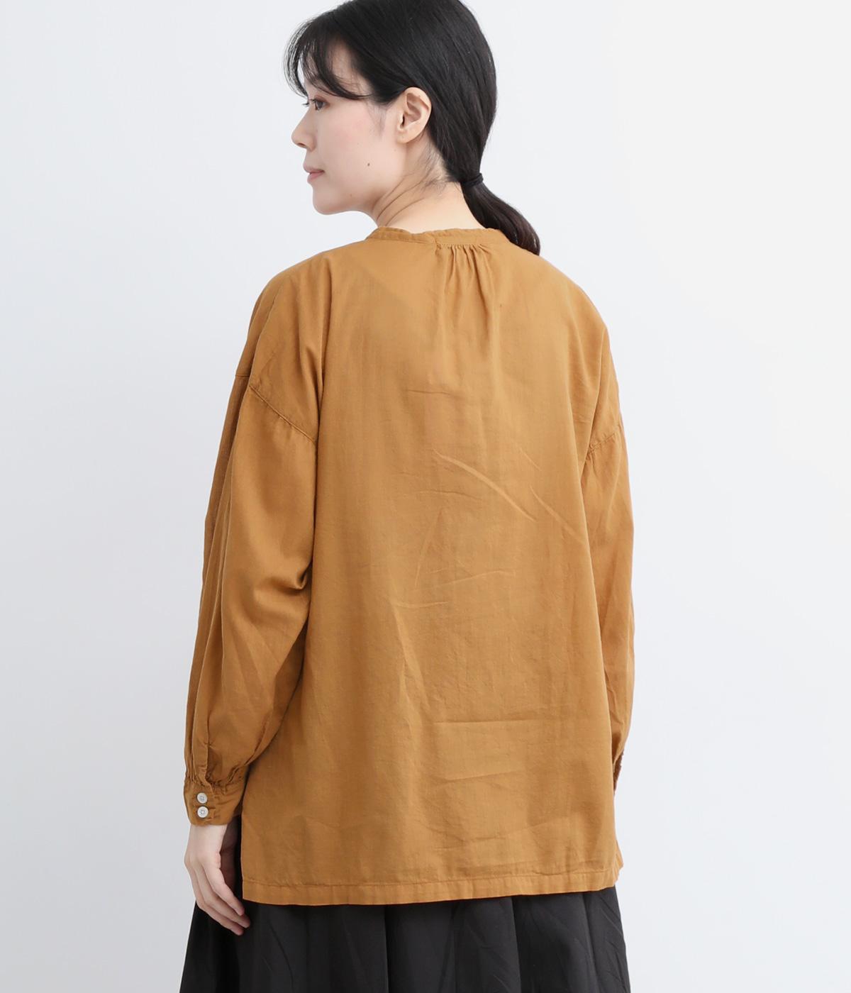 ひかえめなスタンドカラーとフロントに並んだボタンがアクセント。首元をさりげなくカバーしつつ、すっきりと見せられる絶妙なバランスに仕上げています。ほのかにボリュームをもたせた袖ラインも魅力。