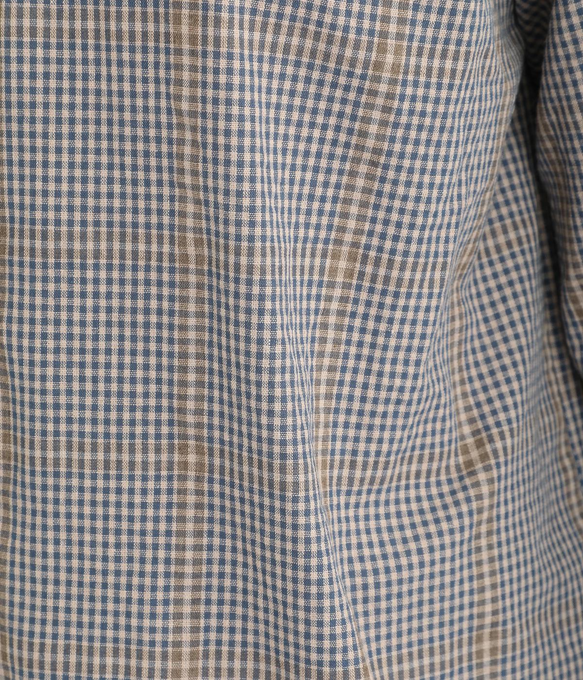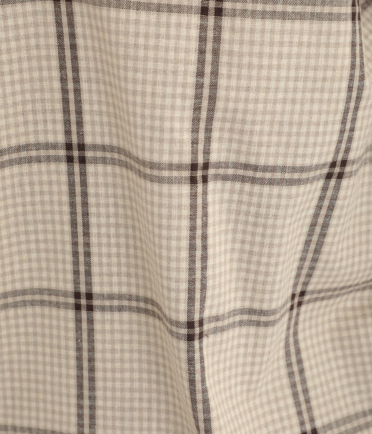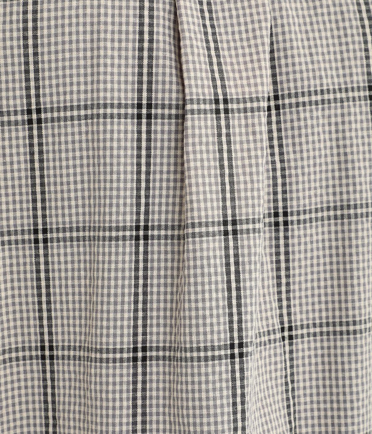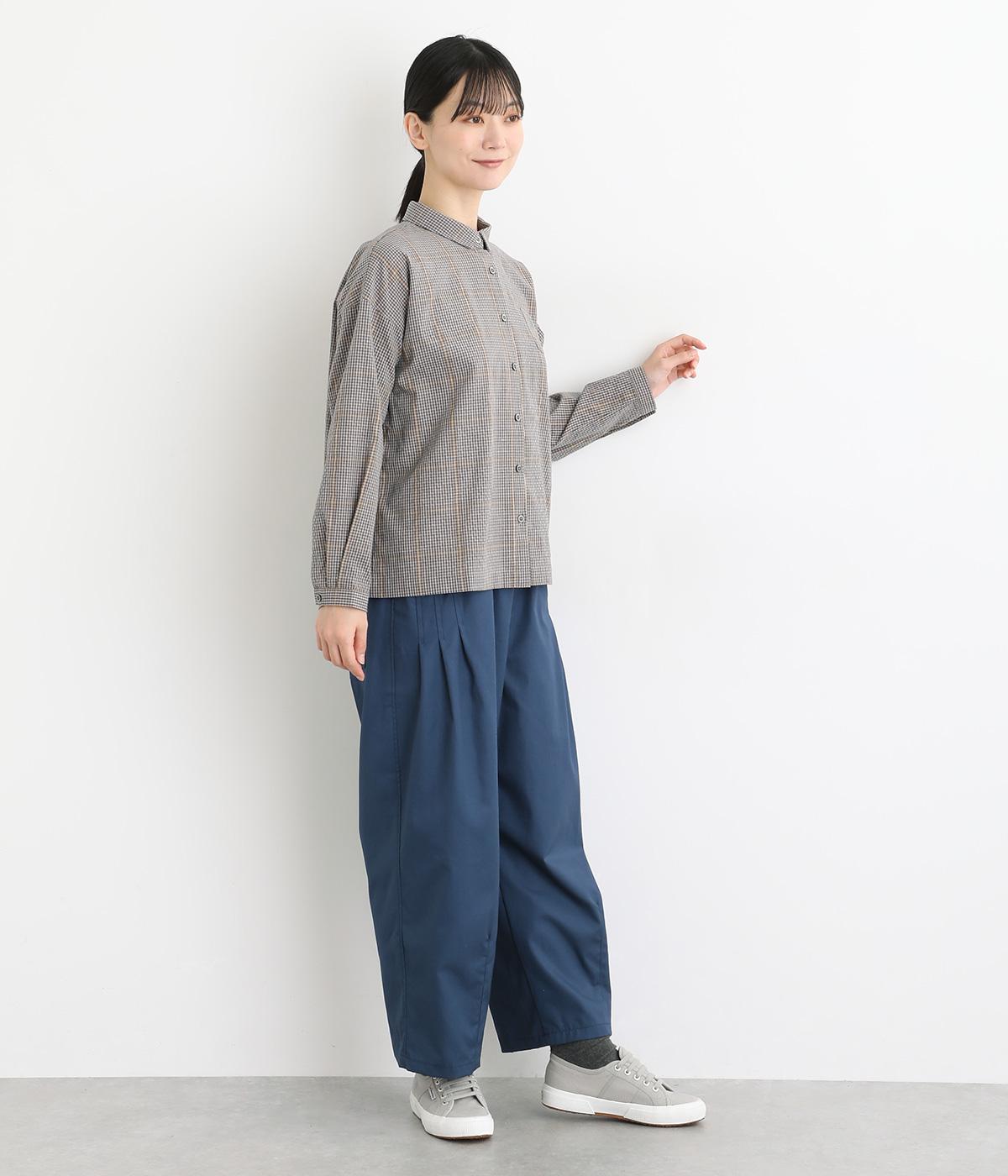 胸元にあるちびポケットがデザインポイントになったチェック柄シャツです。ベーシックなボックス型でパンツにもスカートにも合わせやすく、スタイリングしやすいのも魅力。襟つきできちんと感も出しました。