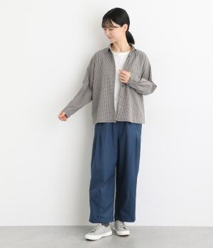 わずかに凹凸があり、肌へのまとわりが少なく通気性に優れたコットン混紡のサッカー生地を使用しています。薄手で涼しく着用でき、シワも気になりにくいのでデイリー使いに最適。