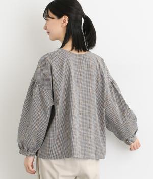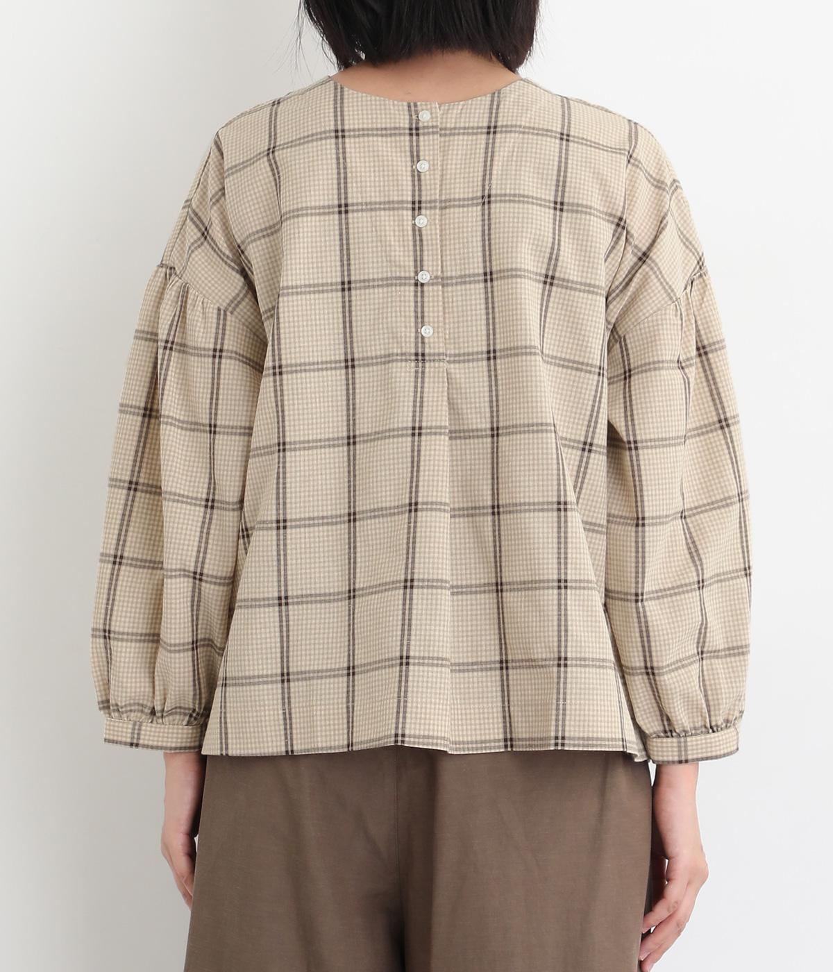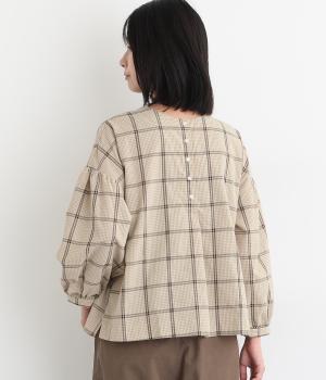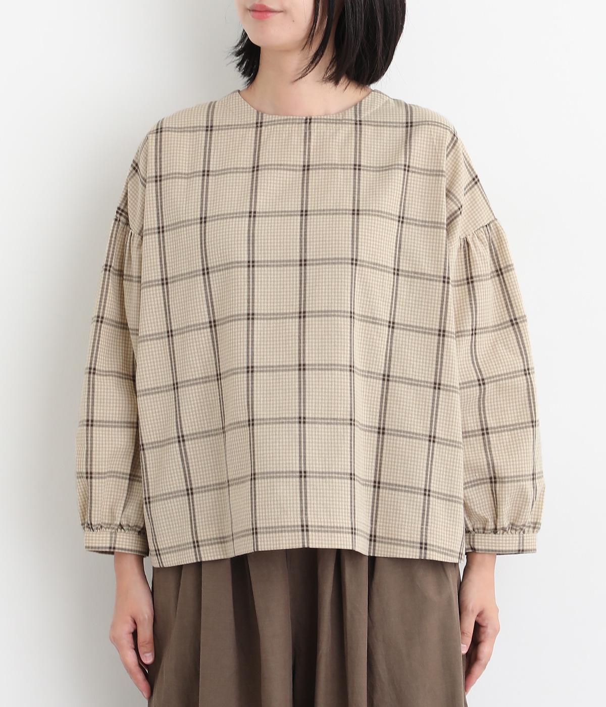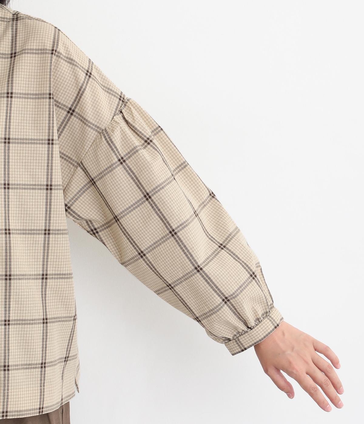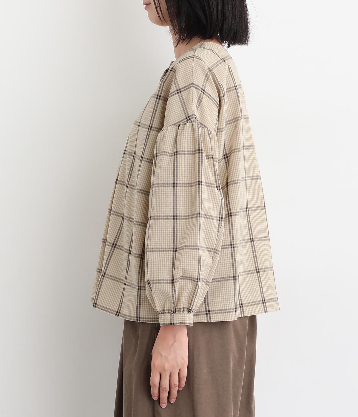 ラウンドネックのプルオーバーとヘンリーネック、印象の異なる前後着用可能な2wayブラウスです。着こなしのポイントになるチェック柄生地で、シンプルなボトム合わせもおしゃれ見えを叶えます。ギャザーを寄せてふわりとした袖も◎。