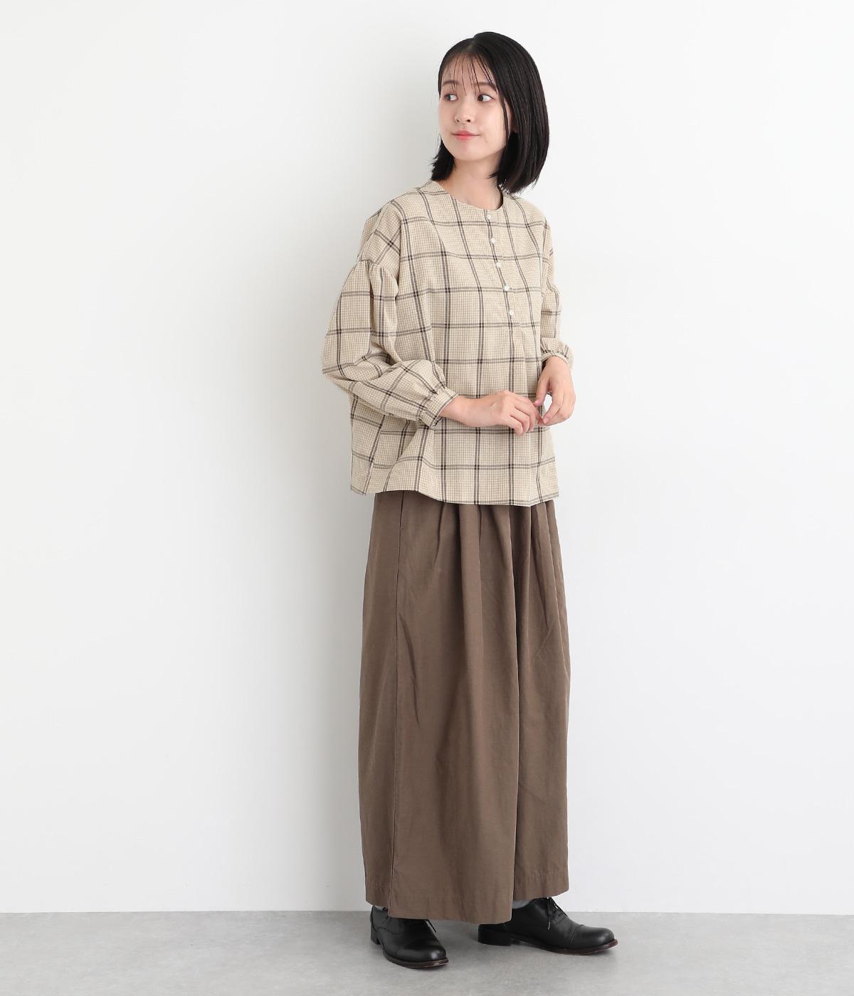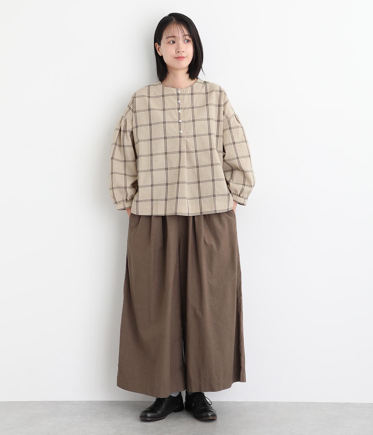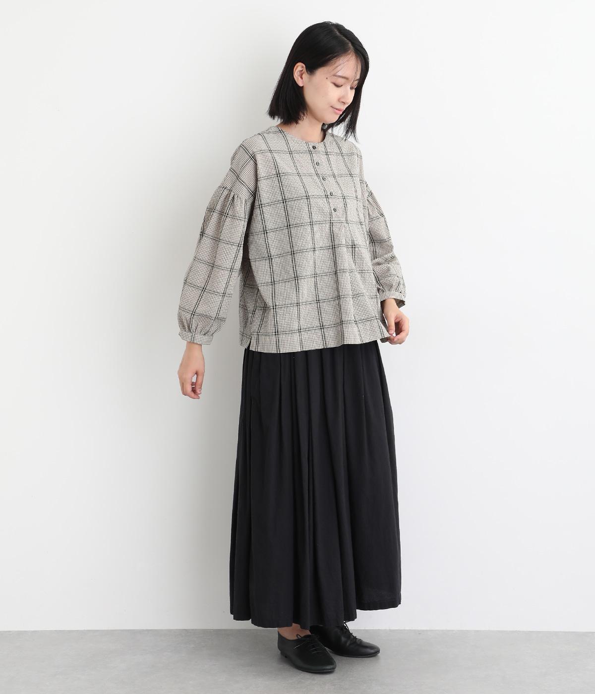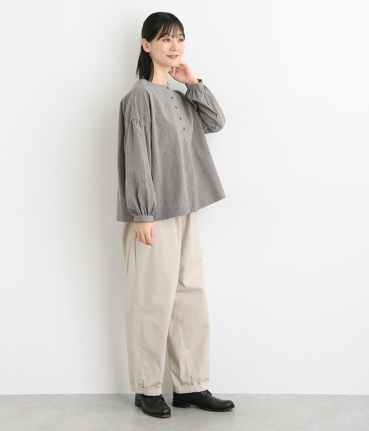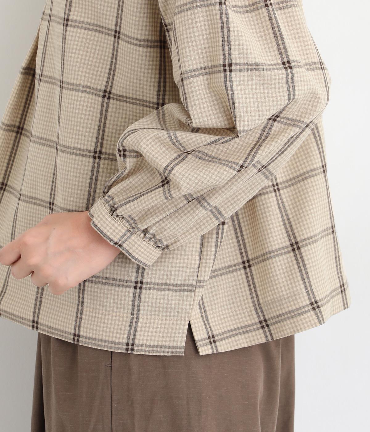 ラウンドネックのプルオーバーとヘンリーネック、印象の異なる前後着用可能な2wayブラウスです。着こなしのポイントになるチェック柄生地で、シンプルなボトム合わせもおしゃれ見えを叶えます。ギャザーを寄せてふわりとした袖も◎。