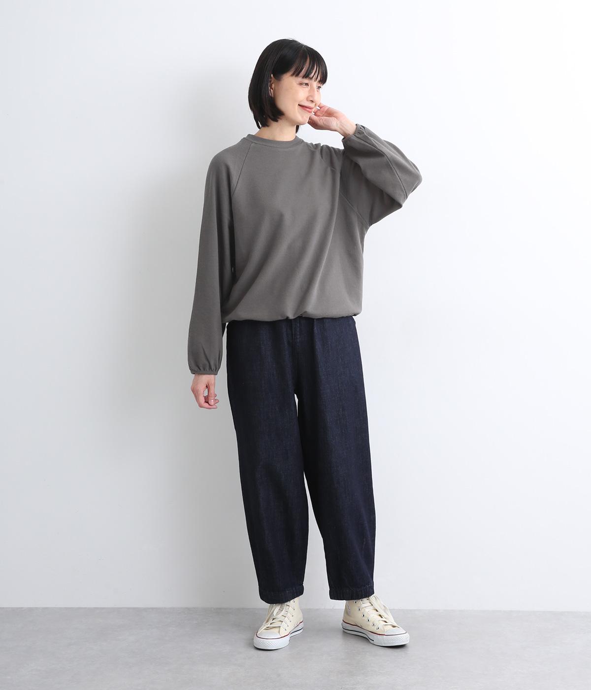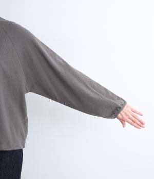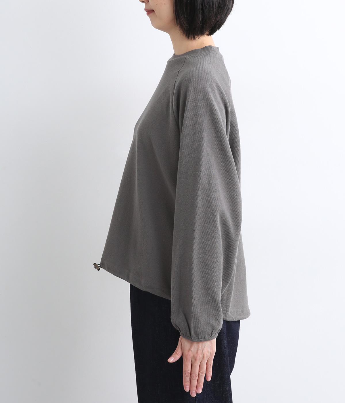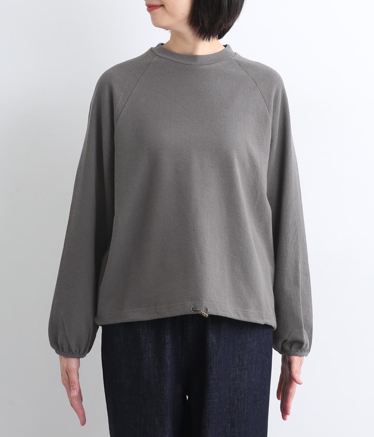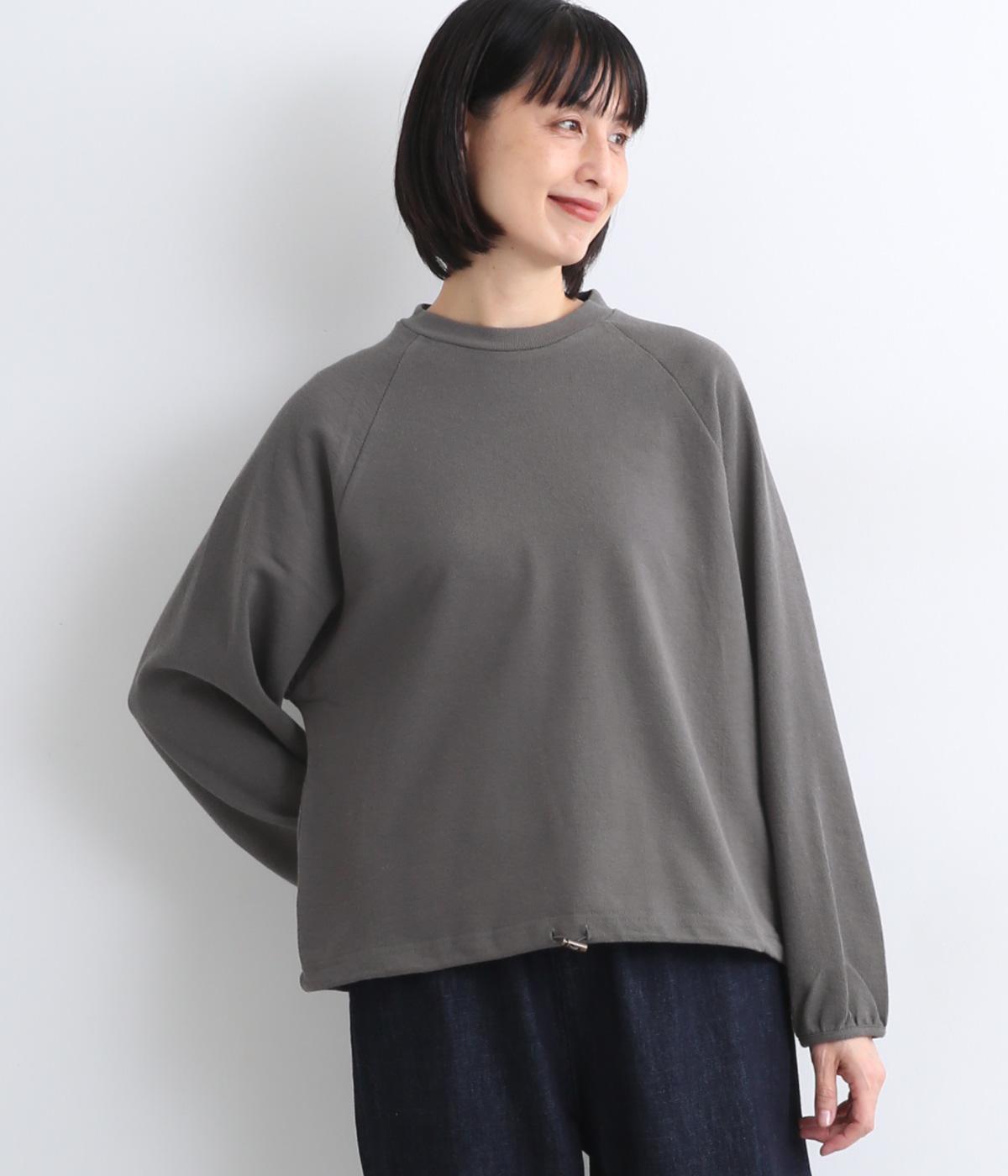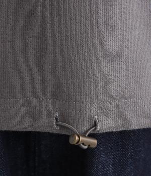 肩まわりが動かしやすいラグランスリーブにゆったりとしたシルエットでリラックスムードに仕上げました。裾にはドローコードがついているので、しぼって丸みを持たせたりとアレンジがたのしめて着こなしの幅も広がります。