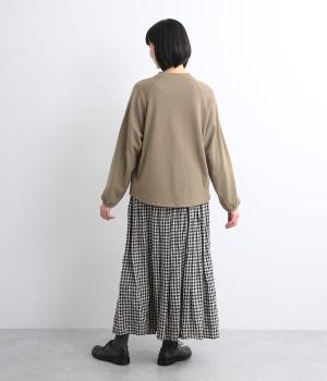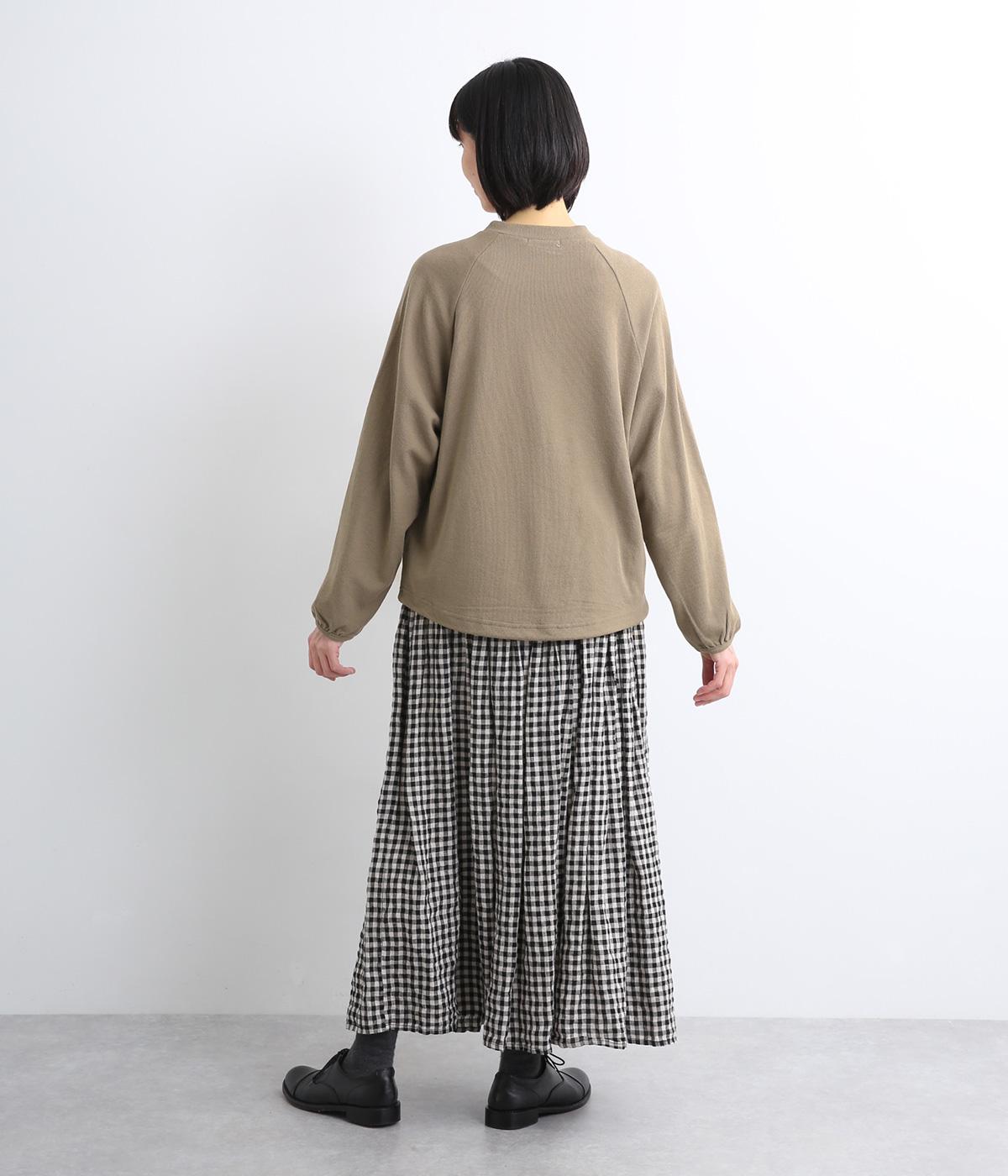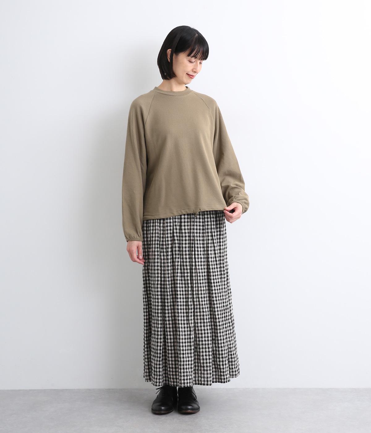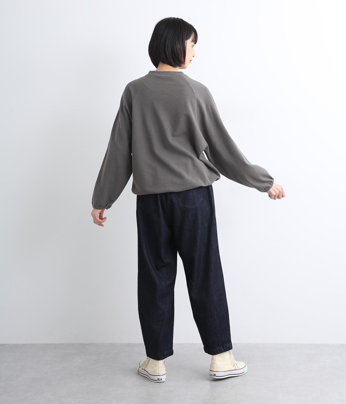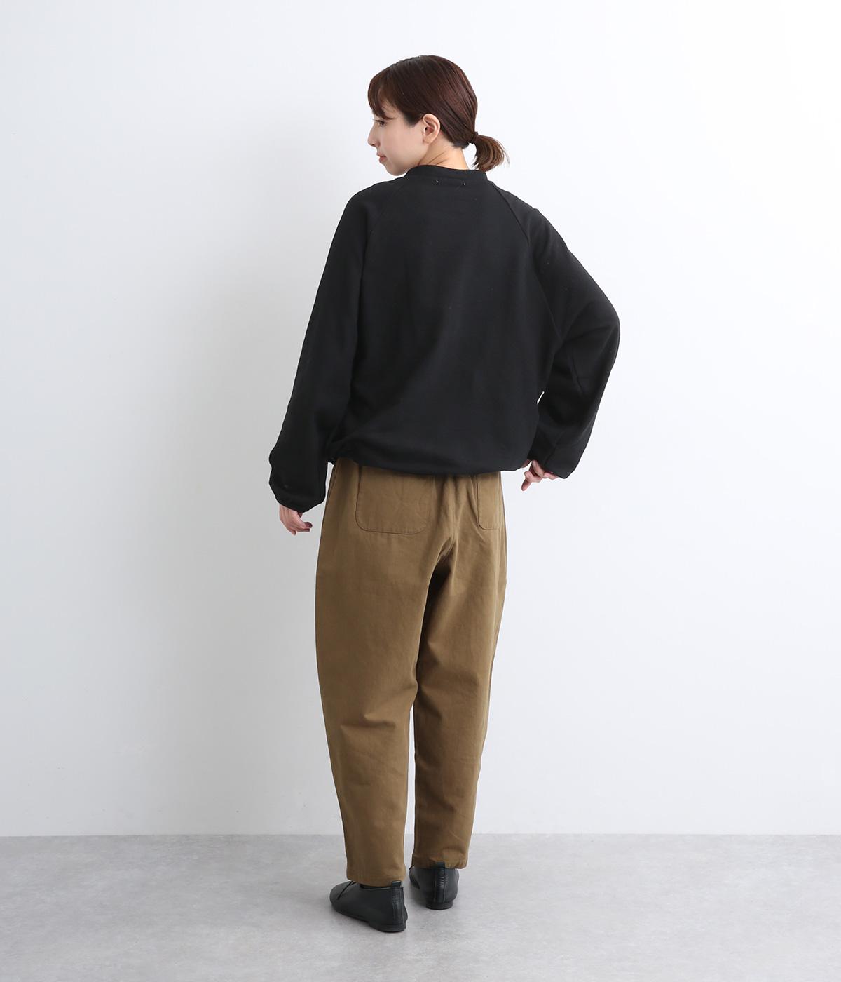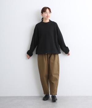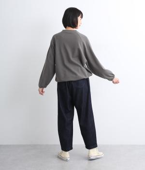 肩まわりが動かしやすいラグランスリーブにゆったりとしたシルエットでリラックスムードに仕上げました。裾にはドローコードがついているので、しぼって丸みを持たせたりとアレンジがたのしめて着こなしの幅も広がります。