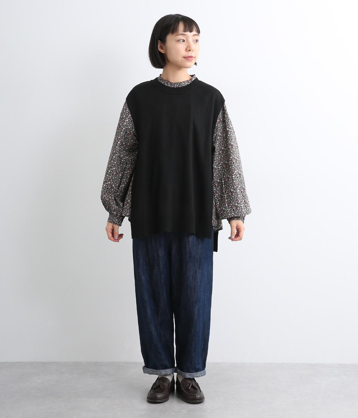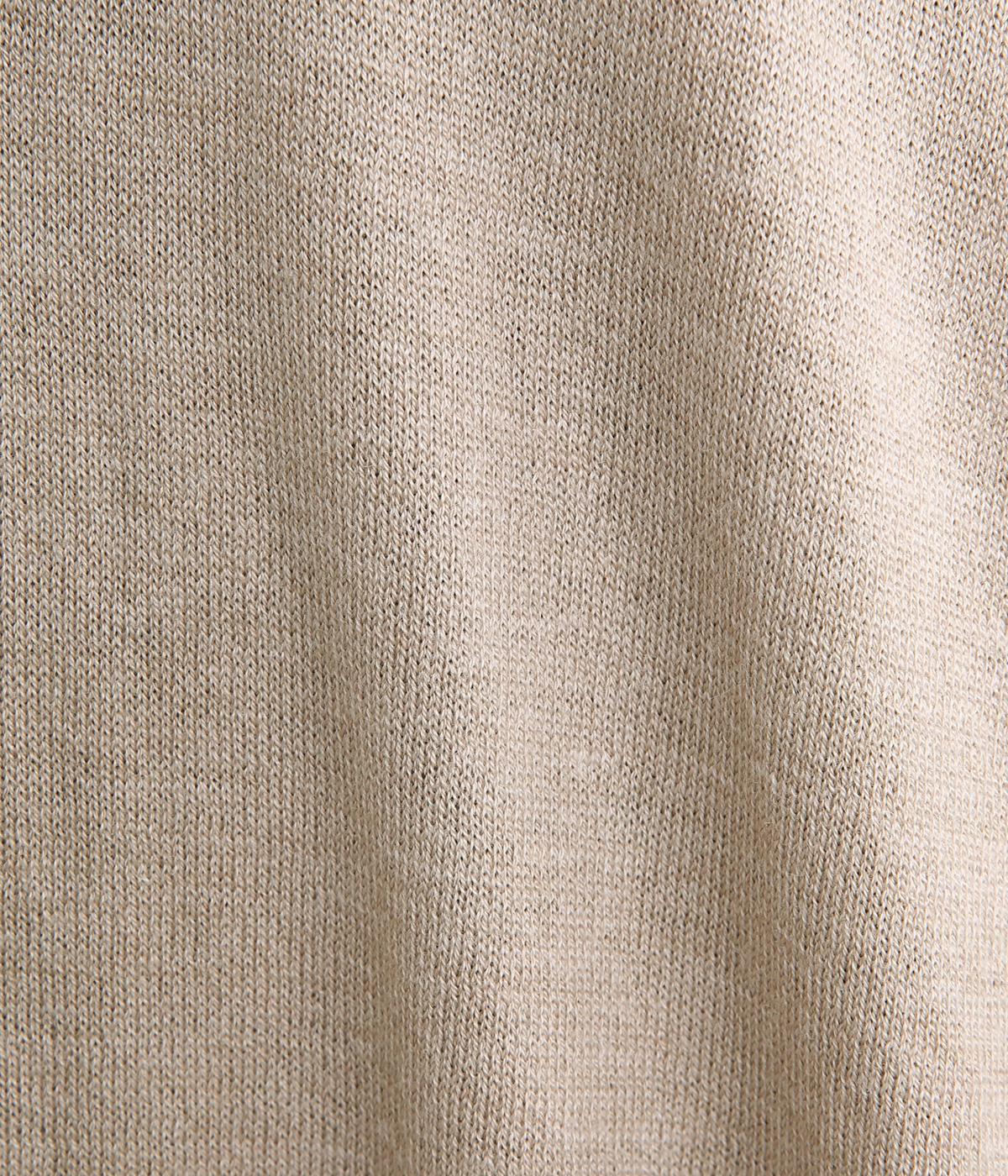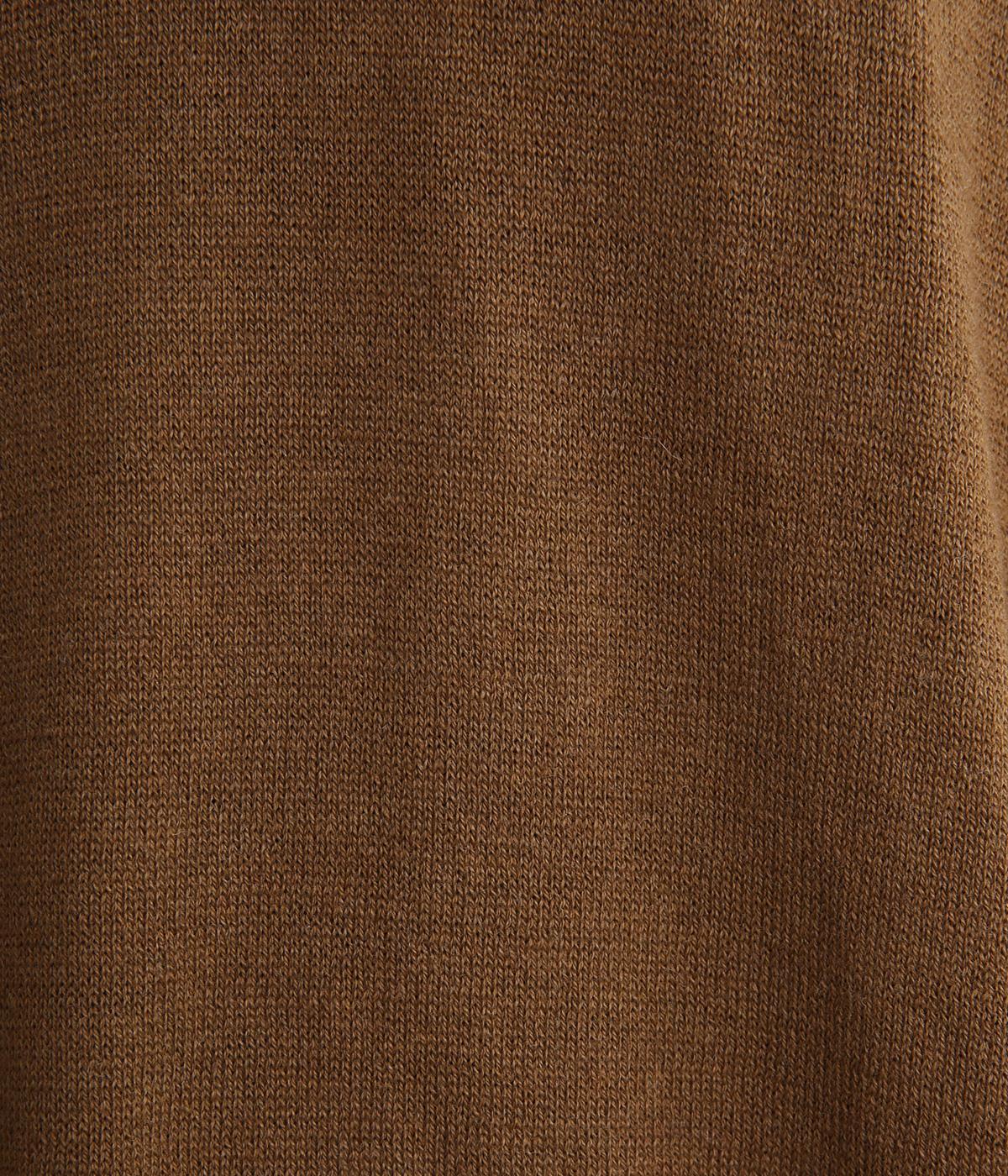 ポリエステル、ナイロン、アクリル、毛の四者混生地です。軽やかでやさしい手ざわりと伸縮性で、やさしく体に沿います。快適でストレスのない着心地が魅力です。
