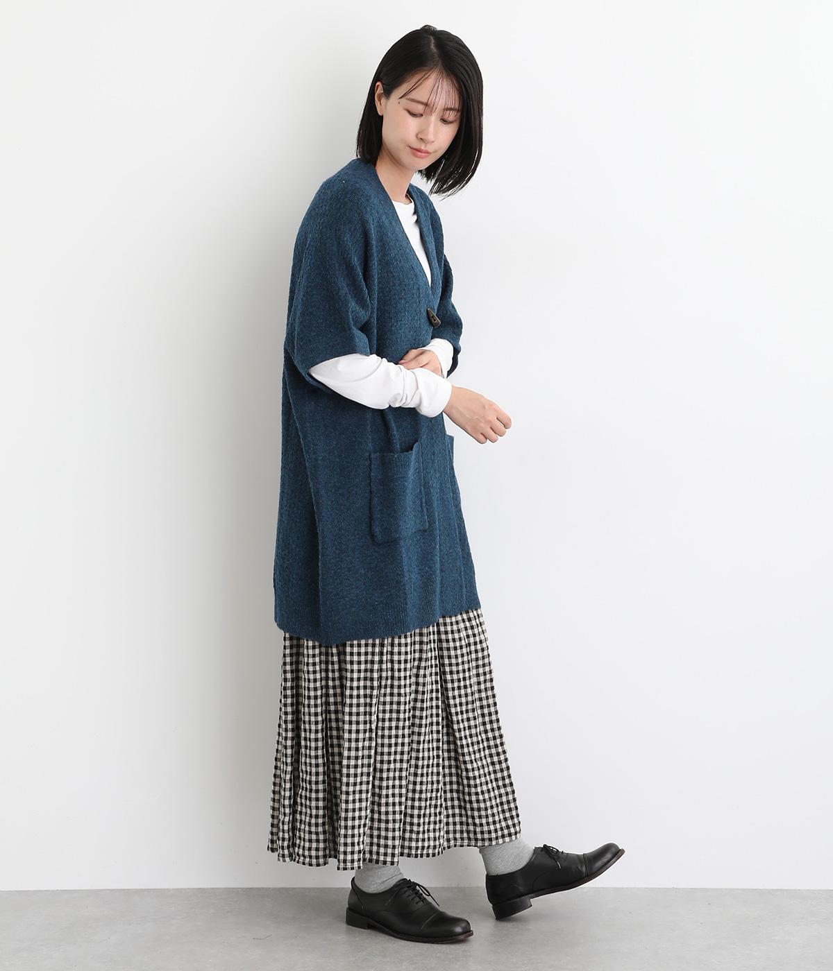 ウール混であたたかみのあるミドルゲージニットで仕立てました。もっちりとしていて伸びが良く、やわらかな肌触りがやみつきになります。